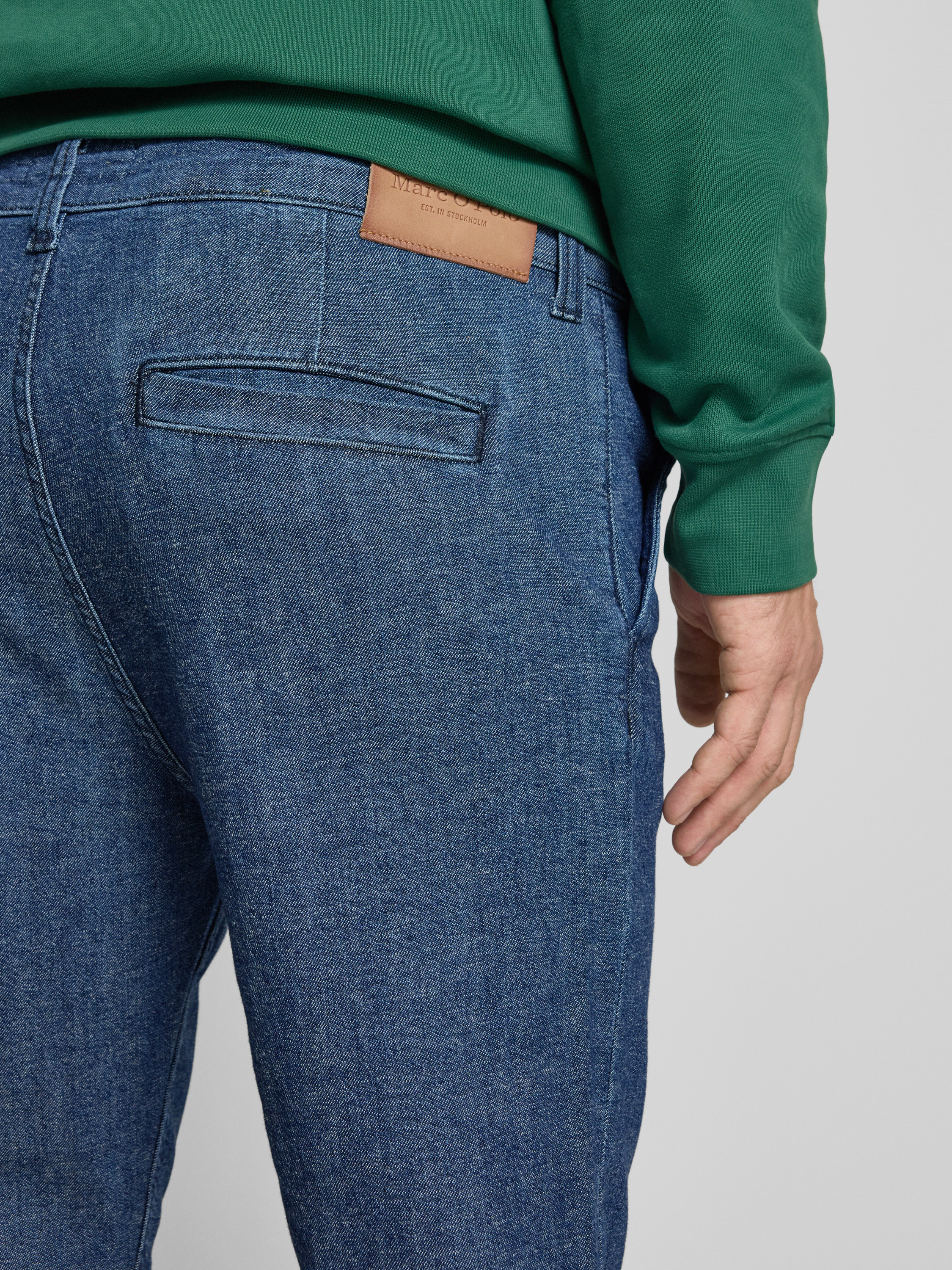 Die Straight Leg Chino aus Baumwoll-Mix von Marc O'Polo, Modell 'Kalmo', vereint komfortable Passform mit zeitlosem Design. Der Baumwoll-Mix bietet ein angenehmes Tragegefühl und die Melange-Optik sorgt für einen stilvollen Auftritt. Seitliche Eingrifftaschen ergänzen die praktische Alltagstauglichkeit.