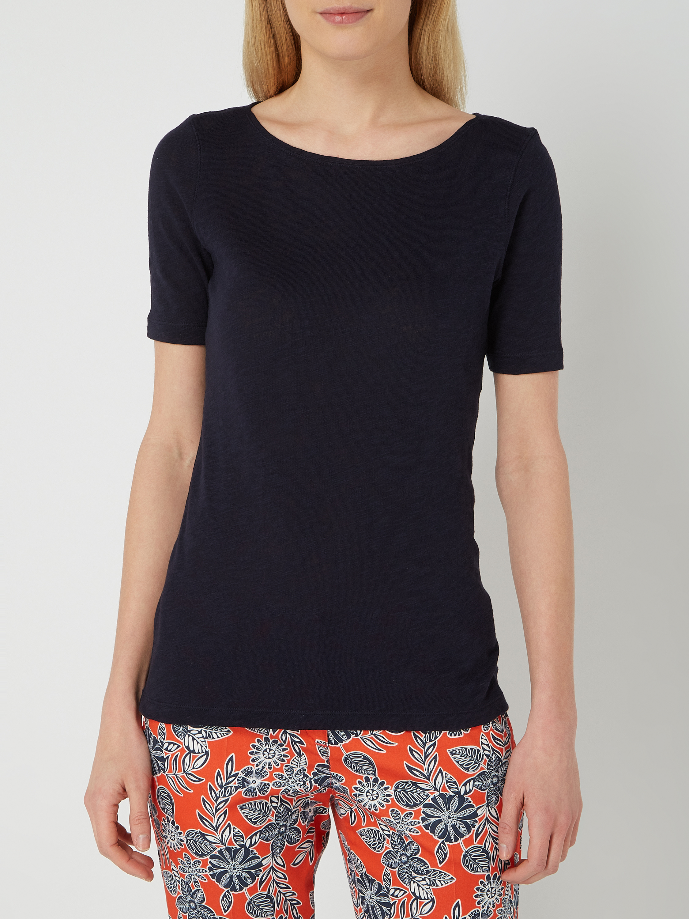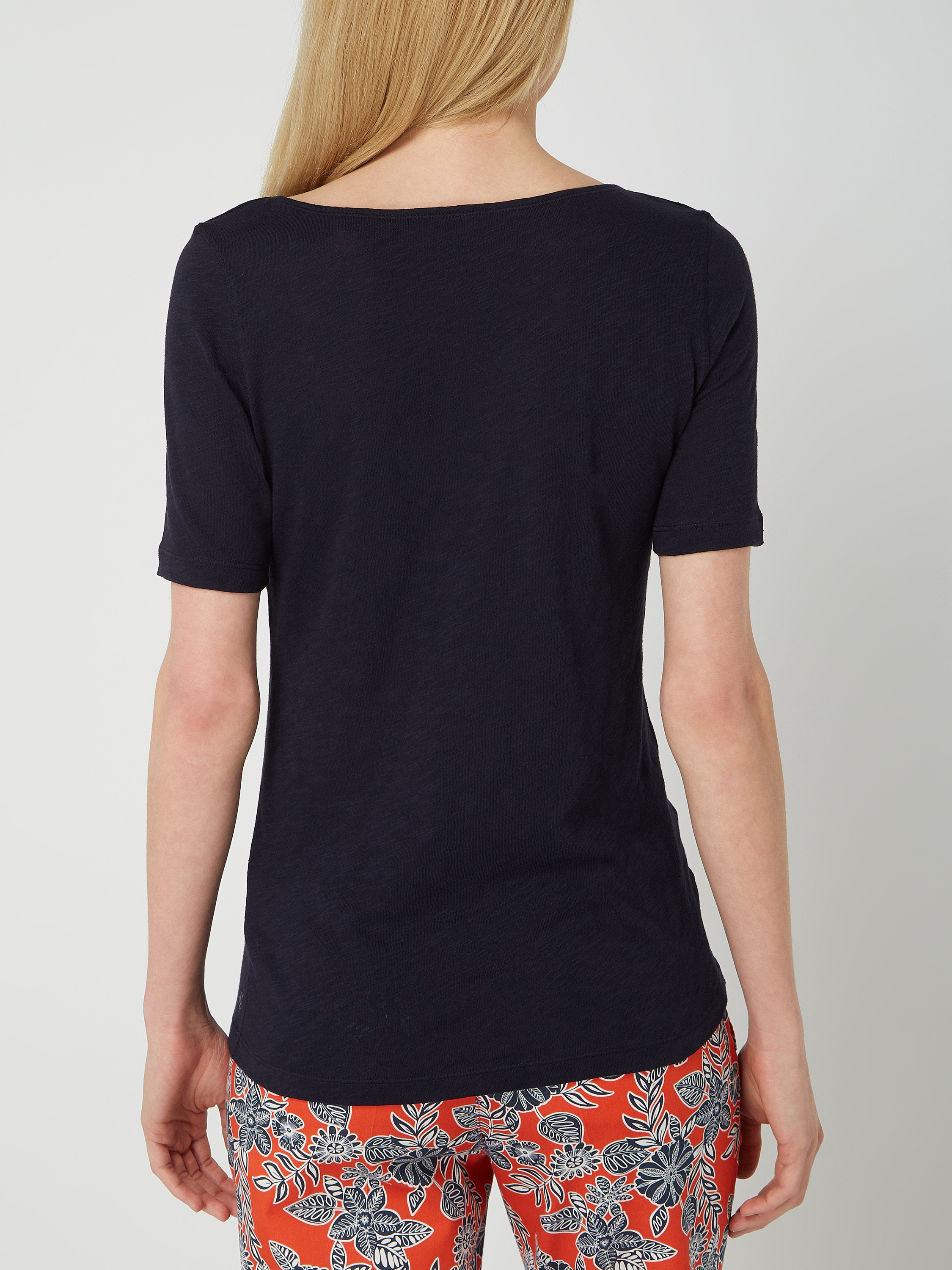 Das Damen T-Shirt von MARC O'POLO besteht aus reiner Baumwolle und zeichnet sich durch einen schmalen Schnitt aus, der für eine angenehme Passform sorgt. Der Slub Jersey verleiht dem Material eine leicht strukturierte Oberfläche. Ein dezenter Logo-Print am Saum rundet das Design ab.