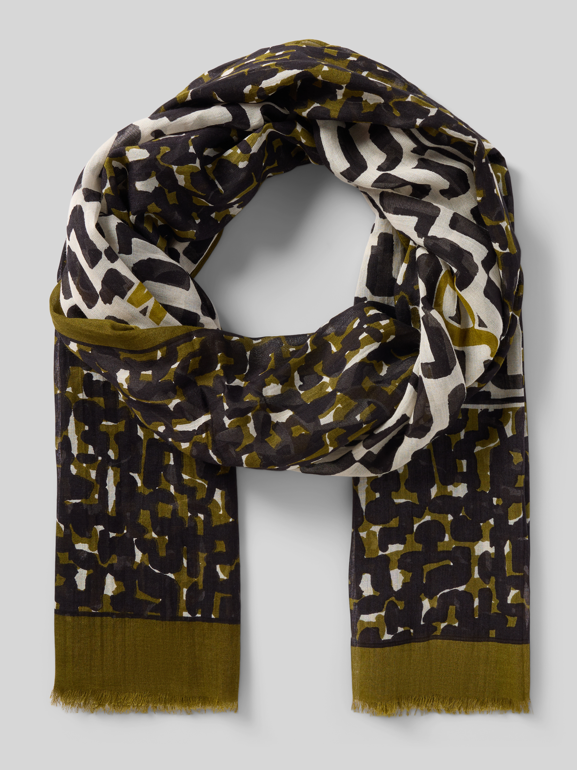 Das Damen Tuch von Marc O'Polo zeigt sich in einer leichten Webware mit Modal-Baumwoll-Mix, wodurch es angenehm auf der Haut liegt. Durch das Allover-Muster erhält das Accessoire einen lebendigen Charakter, während der Label-Schriftzug einen dezenten Akzent setzt. So ergänzt man mühelos unterschiedliche Outfits um einen vielseitigen Farbtupfer.