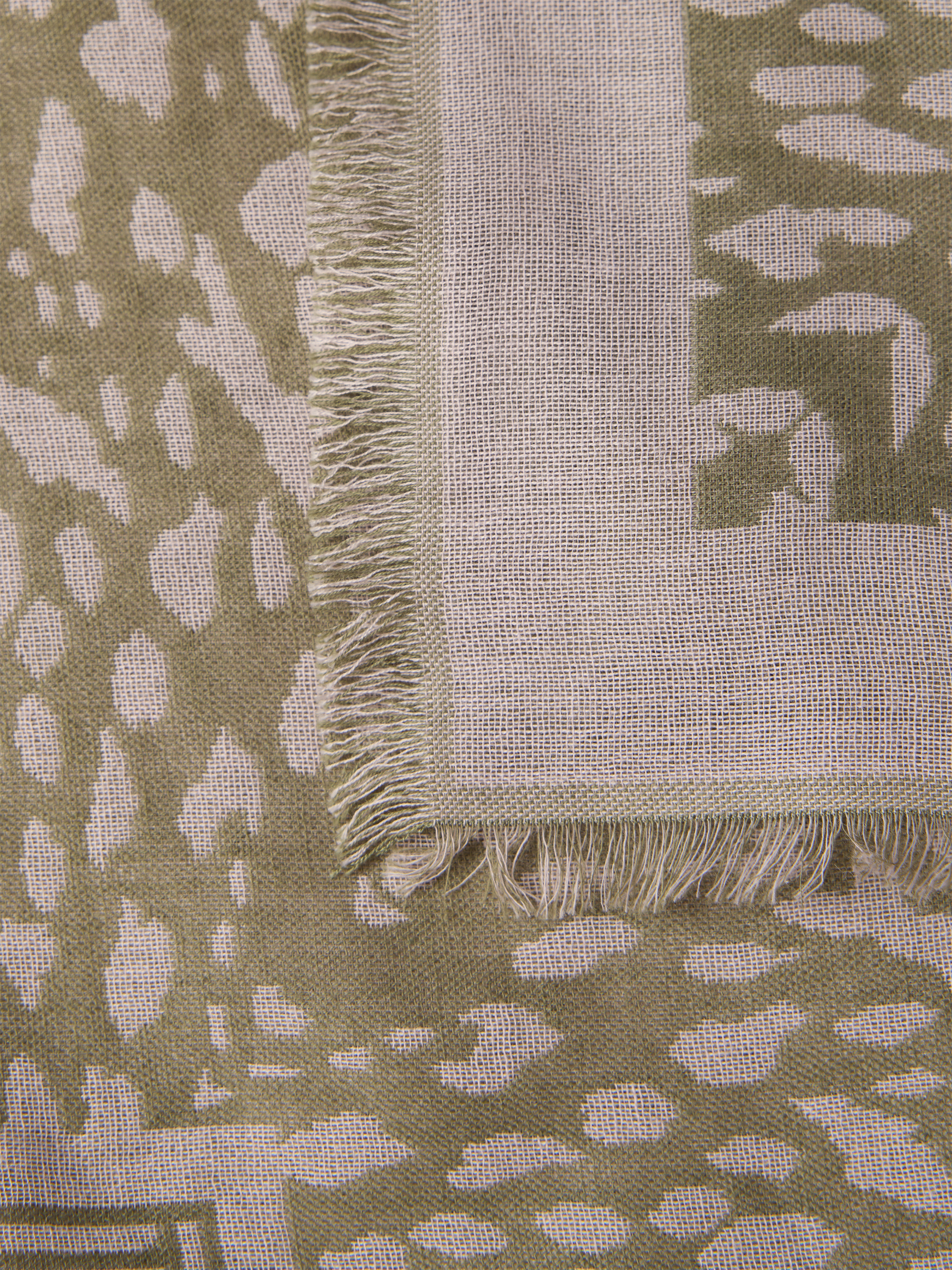 Das Tuch von Marc O'Polo aus reiner Baumwolle zeichnet sich durch ein ansprechendes Allover-Muster in abstrakter Optik aus. Die kurzen Fransen am Rand verleihen dem Accessoire einen besonderen Akzent. Es eignet sich hervorragend als vielseitiges und stilvolles Detail für jedes Outfit.