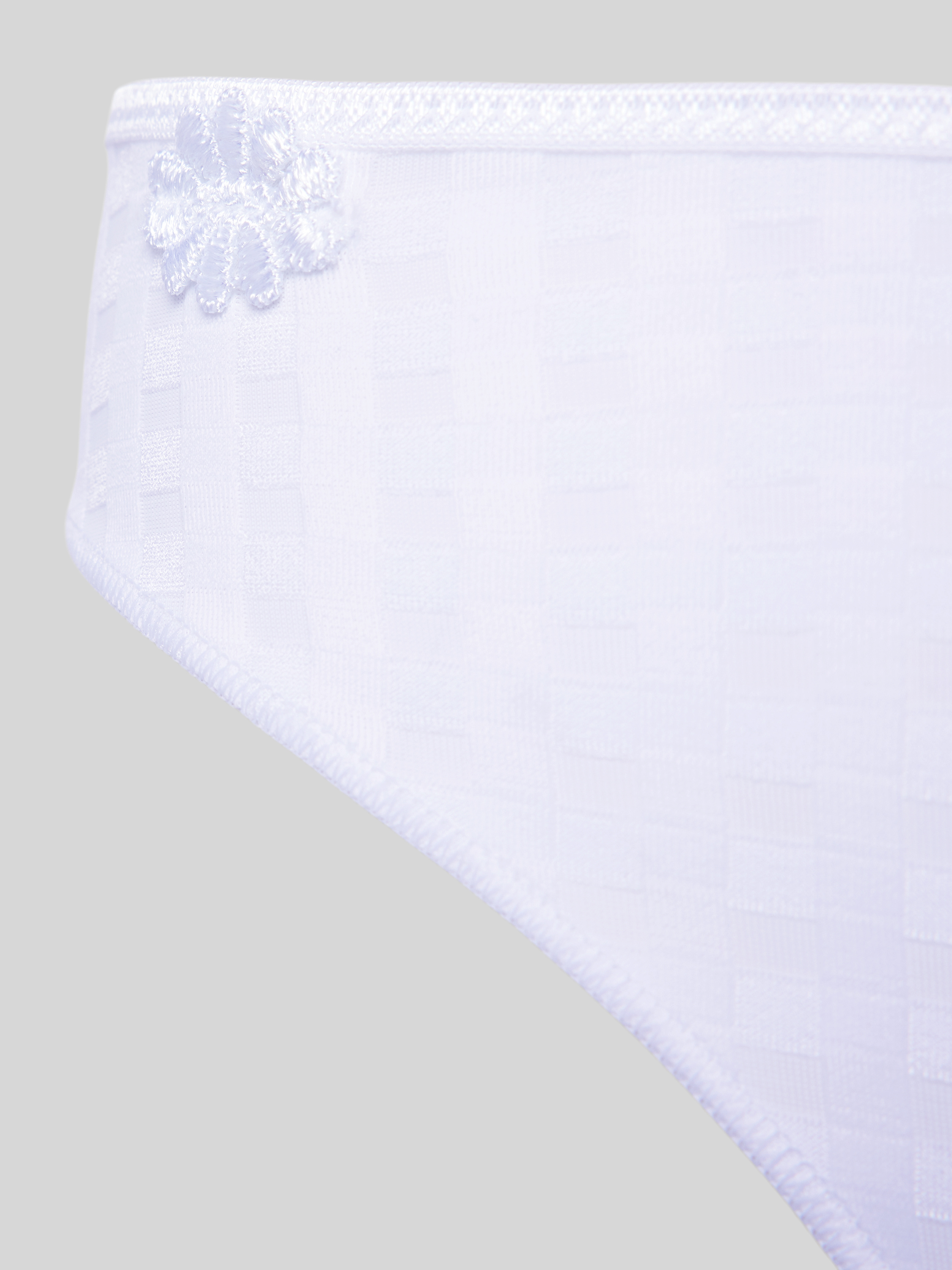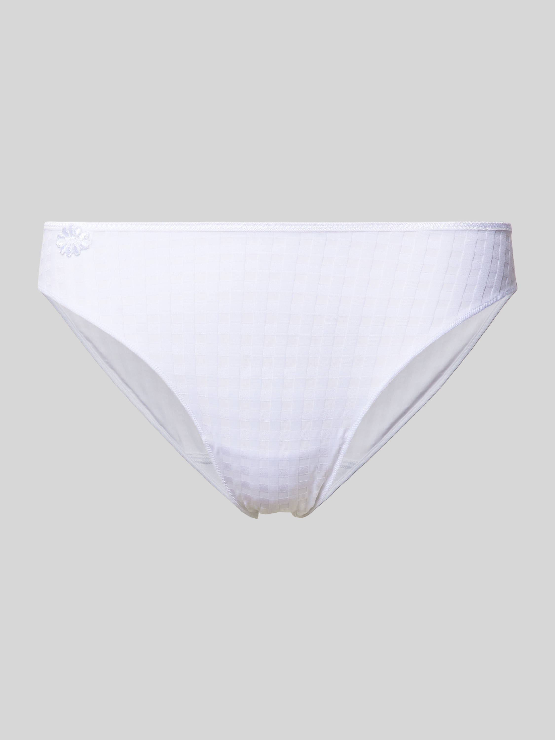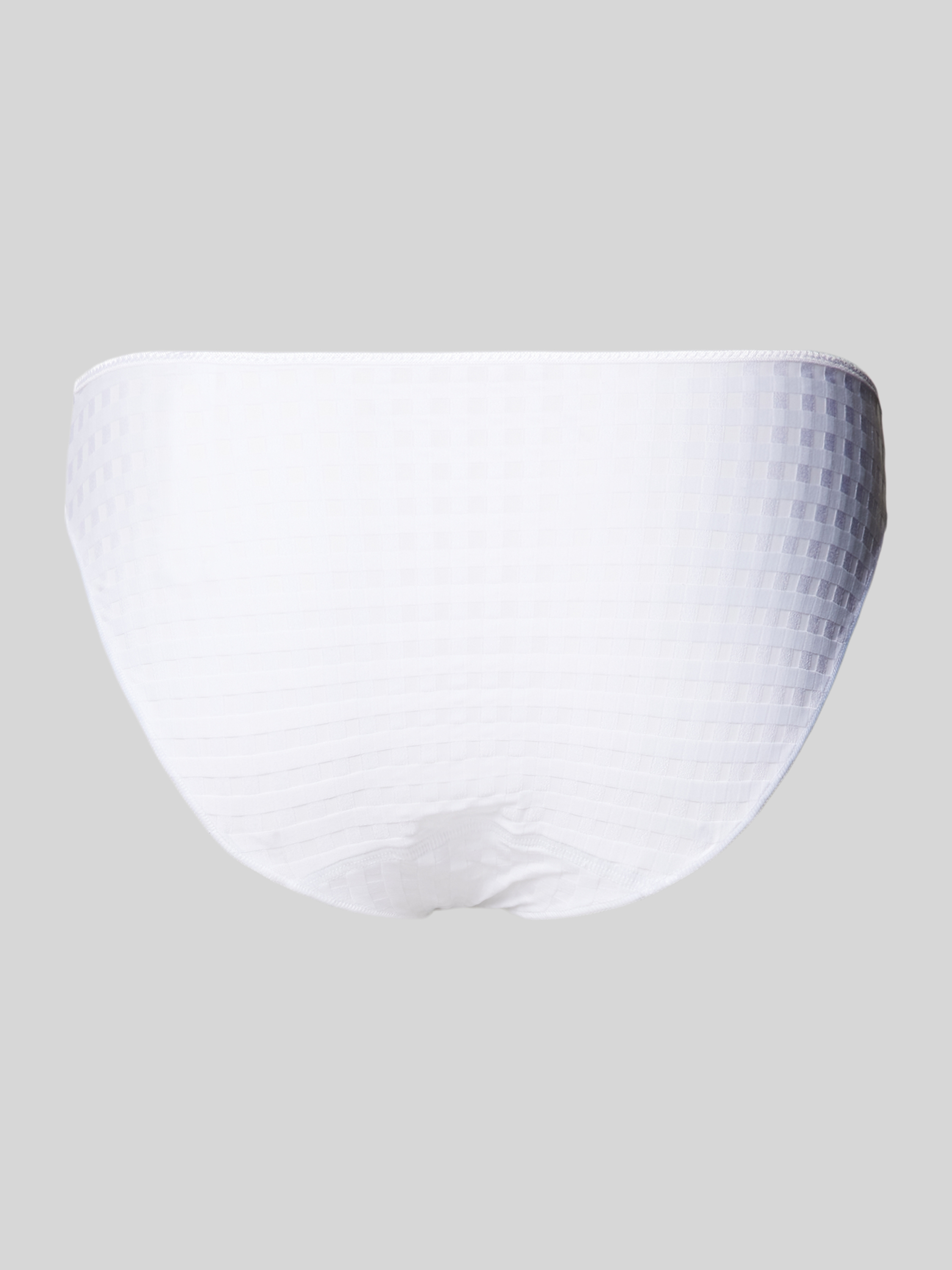 Der Damen Slip von Marie Jo, Modell 'Avero', überzeugt durch seinen bequemen Material-Mix mit Baumwoll-Anteil und eine körpernahe Passform, die sich sanft an die Konturen anschmiegt. Das unifarbene Design mit Strukturmuster verleiht dem Slip eine zeitlose Eleganz. Ein elastischer Bund sorgt für zusätzlichen Tragekomfort.
