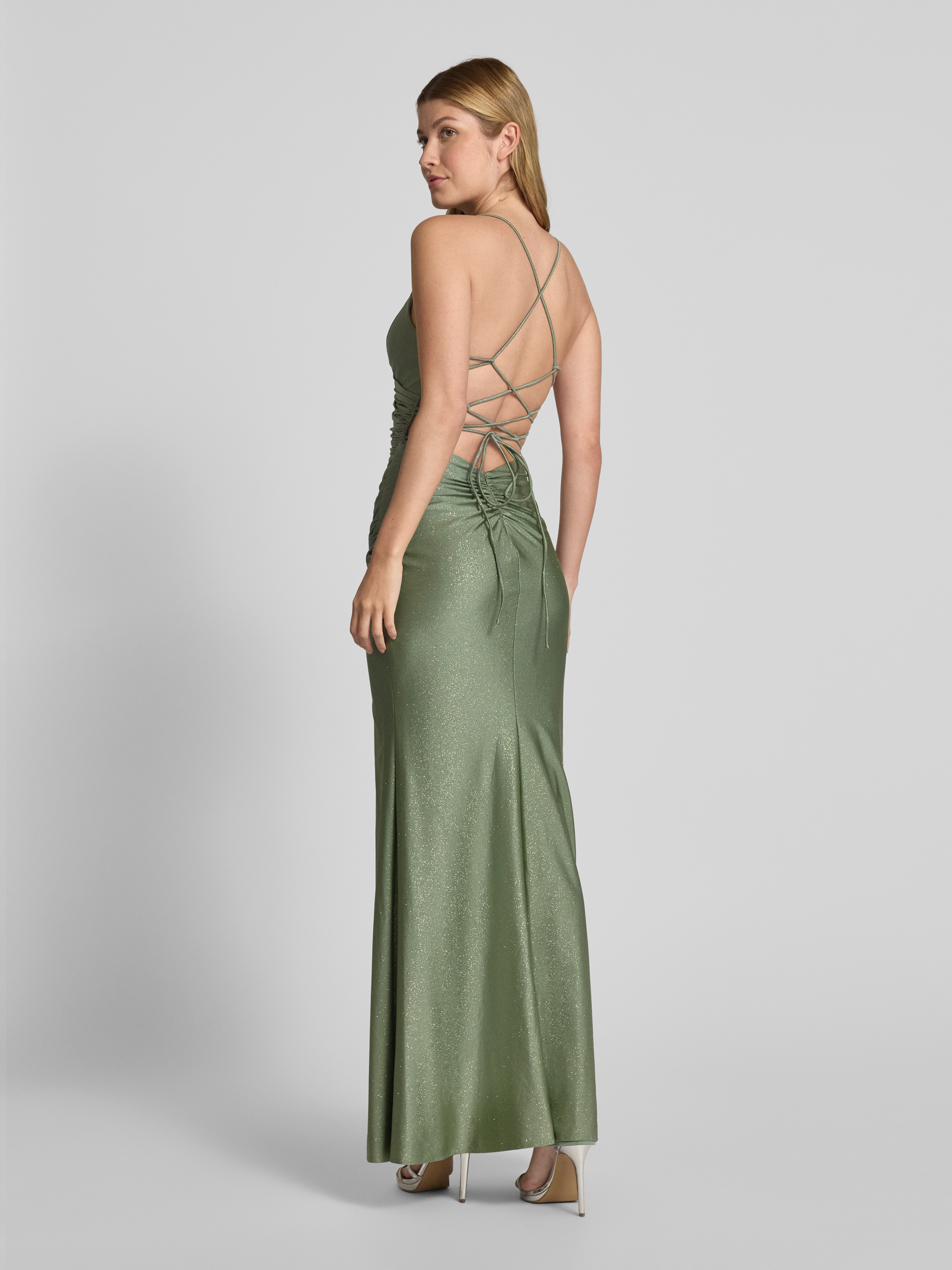 Das Abendkleid von Mascara beeindruckt durch seine elegante Glitzermesh-Optik und die körpernahe Passform, die die Silhouette vorteilhaft betont. Der Herz-Ausschnitt mit Raffungen verleiht dem Maxikleid eine feminine Note, ideal für besondere Anlässe. Ein Kleid für unvergessliche Momente.