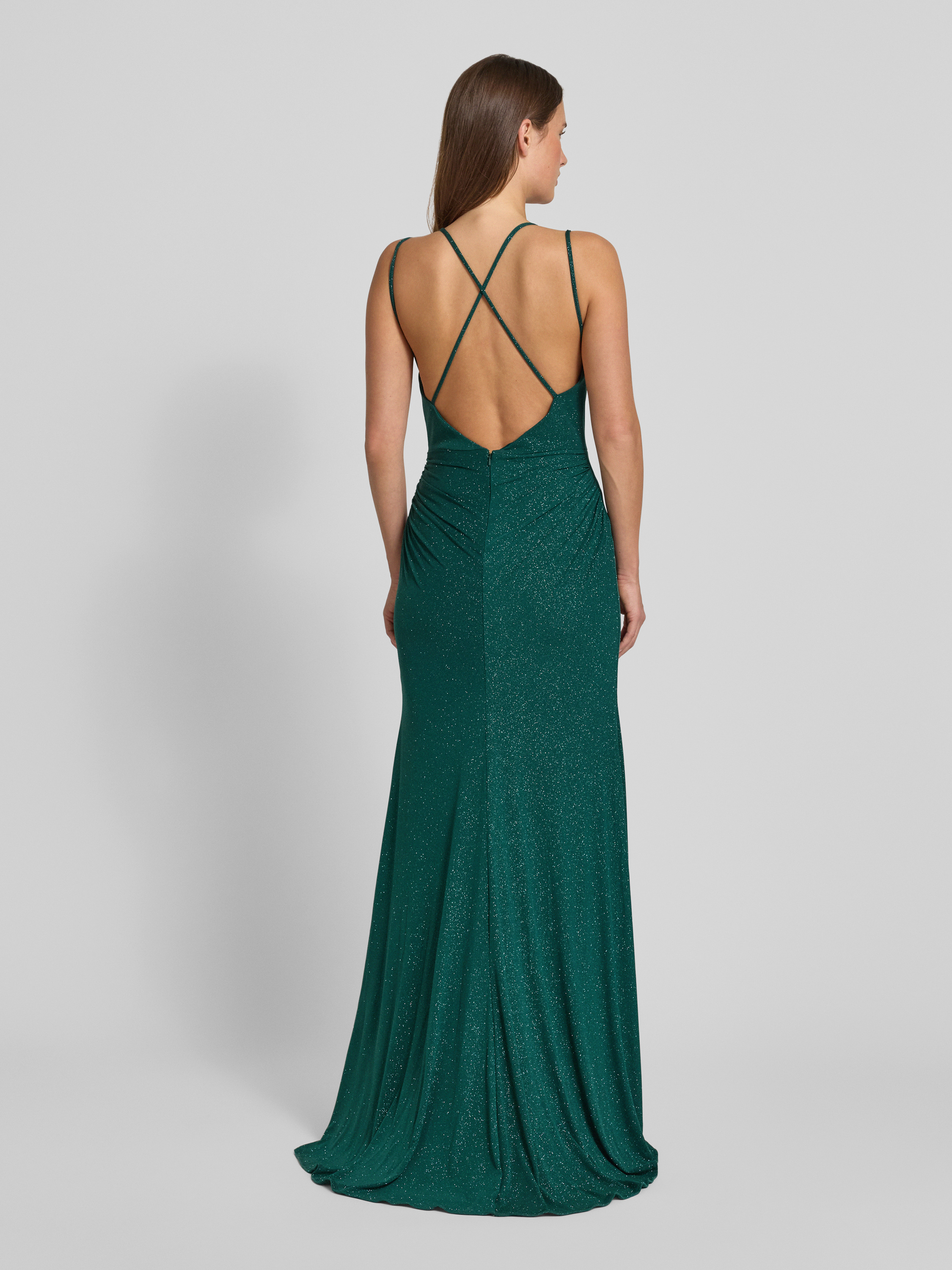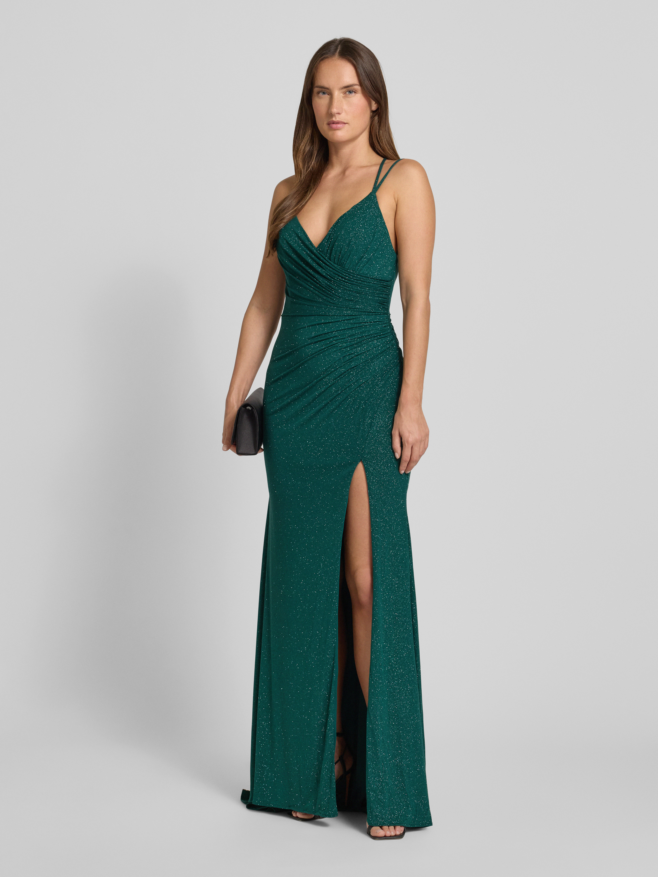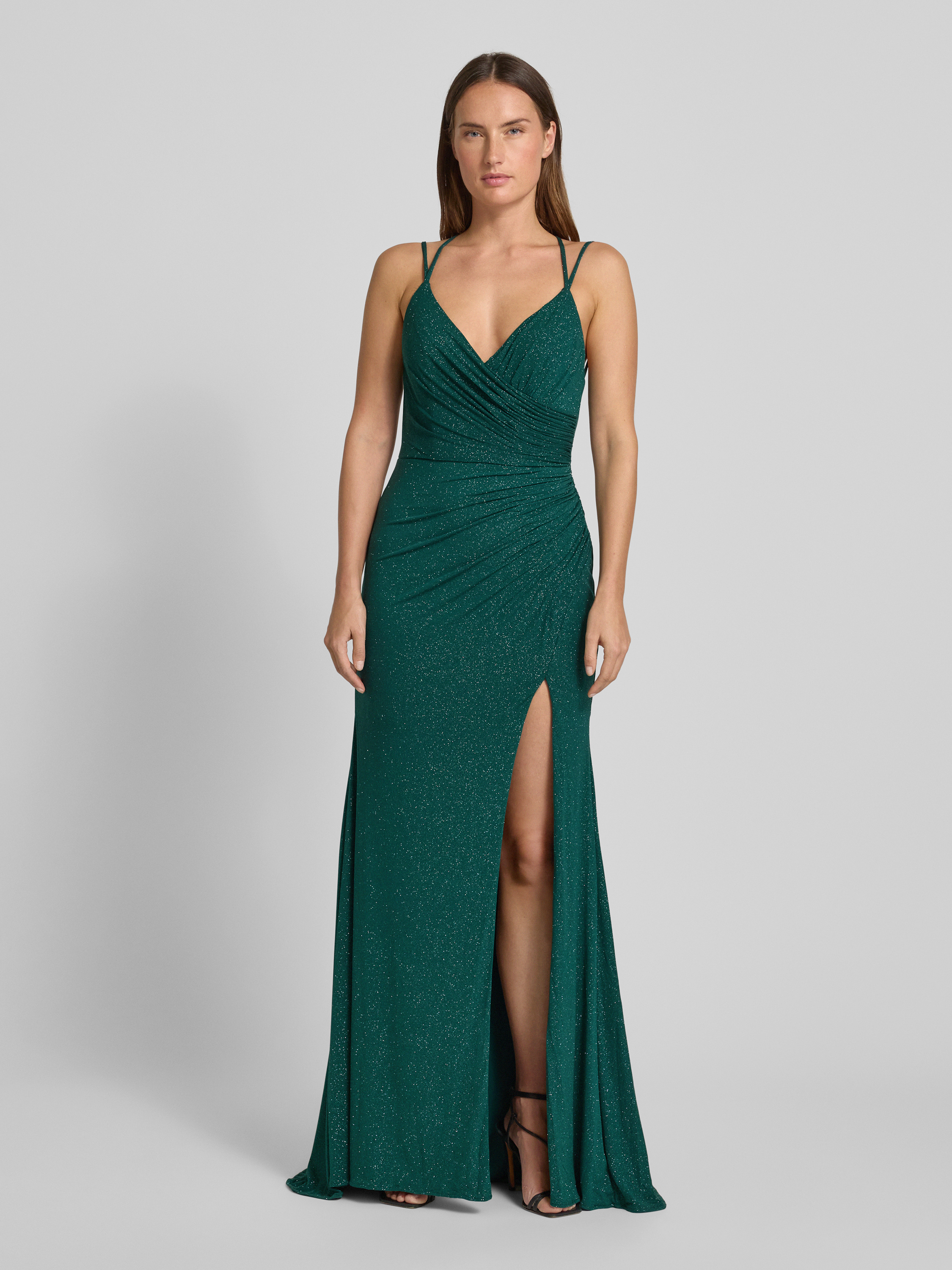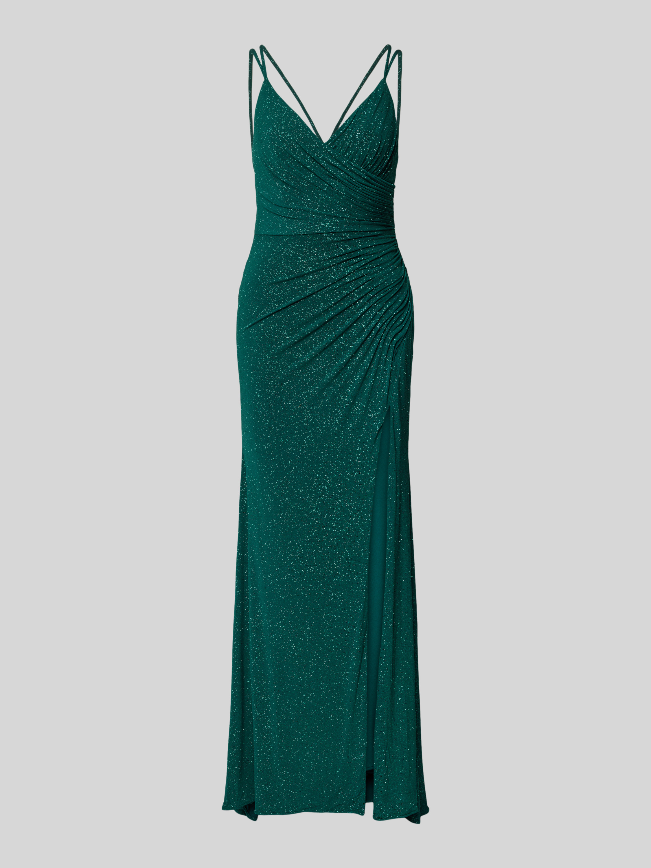 MascaraAbendkleid mit V-Ausschnitt und Raffungen in dunkelgruen