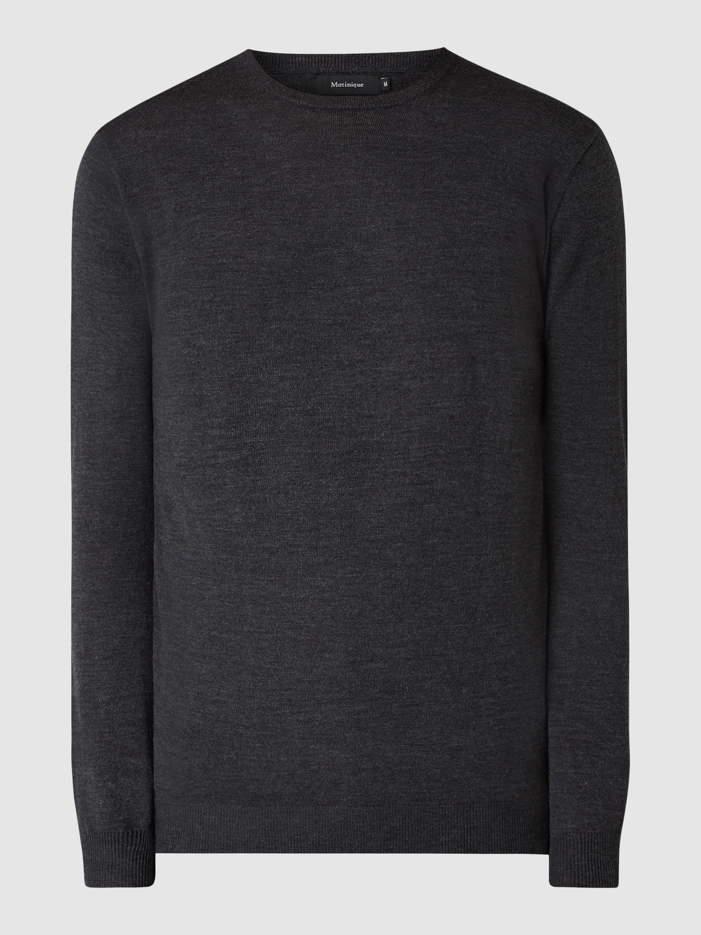 • Matinique Strickpullover aus Merinowolle Modell 'Margrate Merino' Dunkelgrau Melange