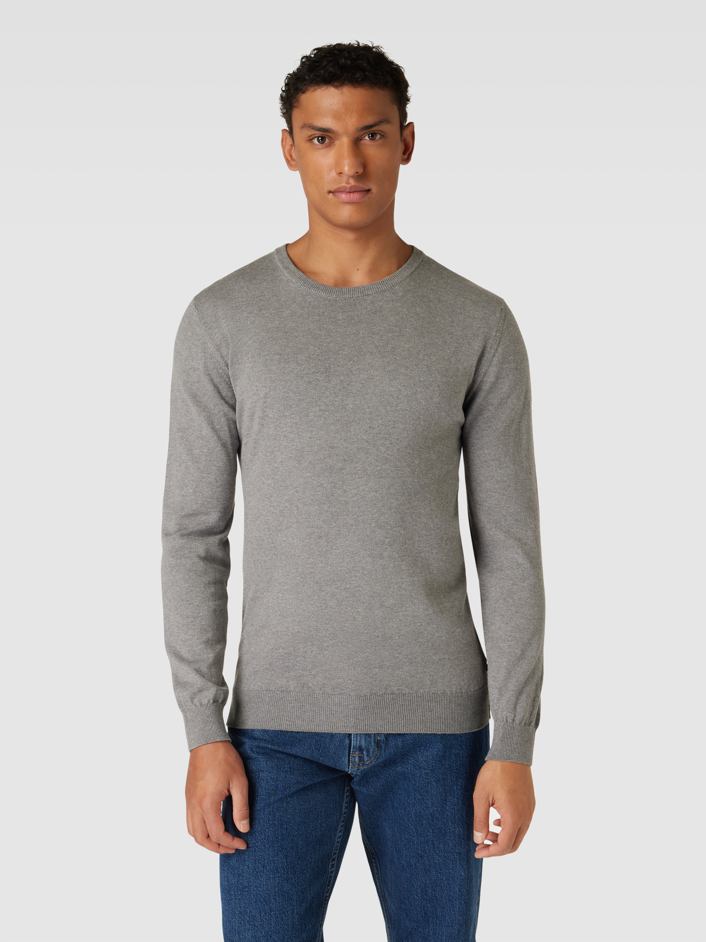 Strickpullover mit Rundhalsausschnitt in hellgrau melange