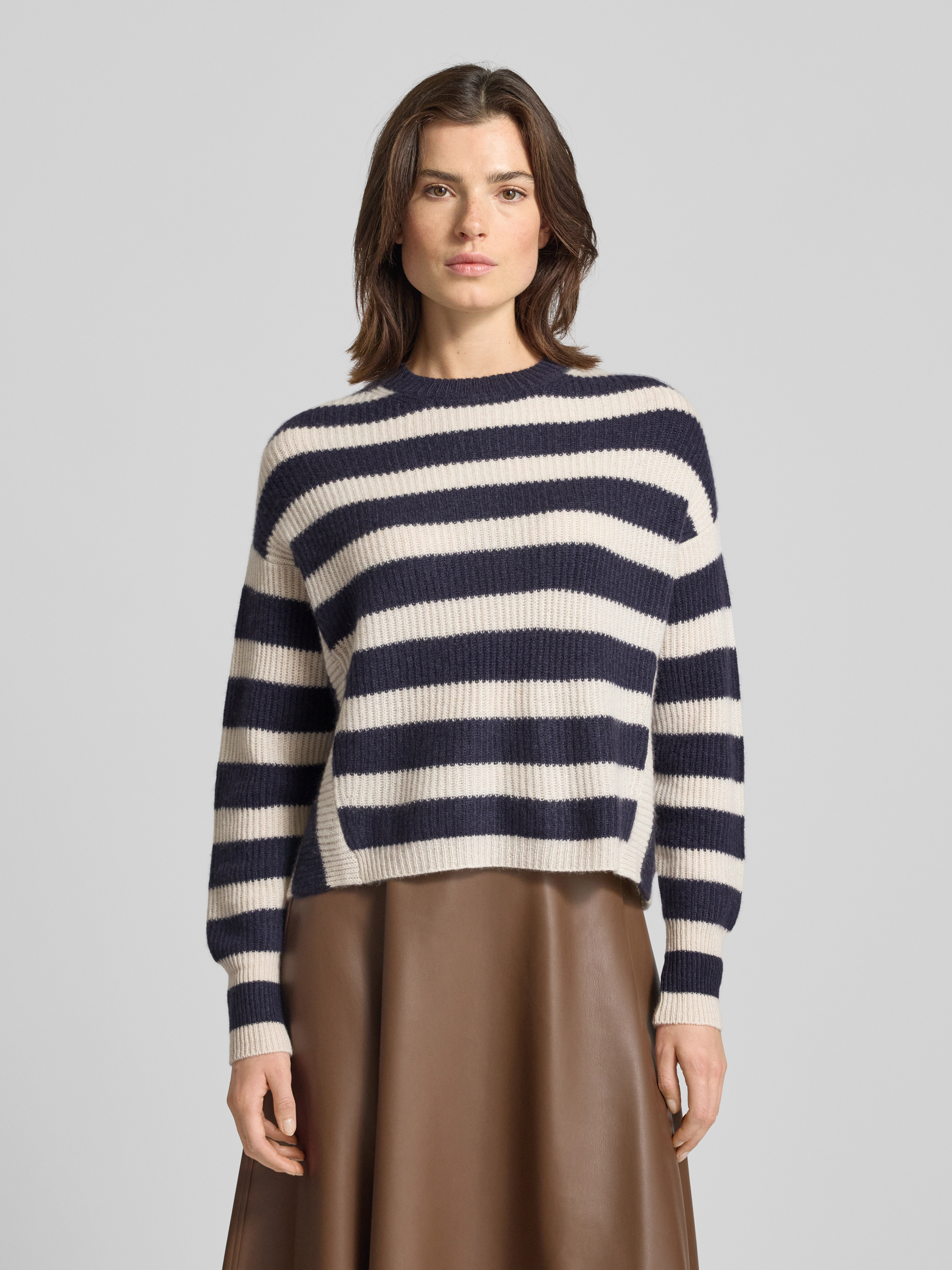 Der Damen Strickpullover Brandy von MAX&Co. zeigt sich im entspannten Boxy-Fit und bringt durch sein gestreiftes Allover-Muster eine lebendige Note in den Alltag. Reiner Kaschmir sorgt dabei für ein angenehmes, weiches Gefühl auf der Haut. Überschnittene Schultern und Rippstrick-Details unterstreichen die legere Ausstrahlung und lassen sich vielseitig kombinieren.