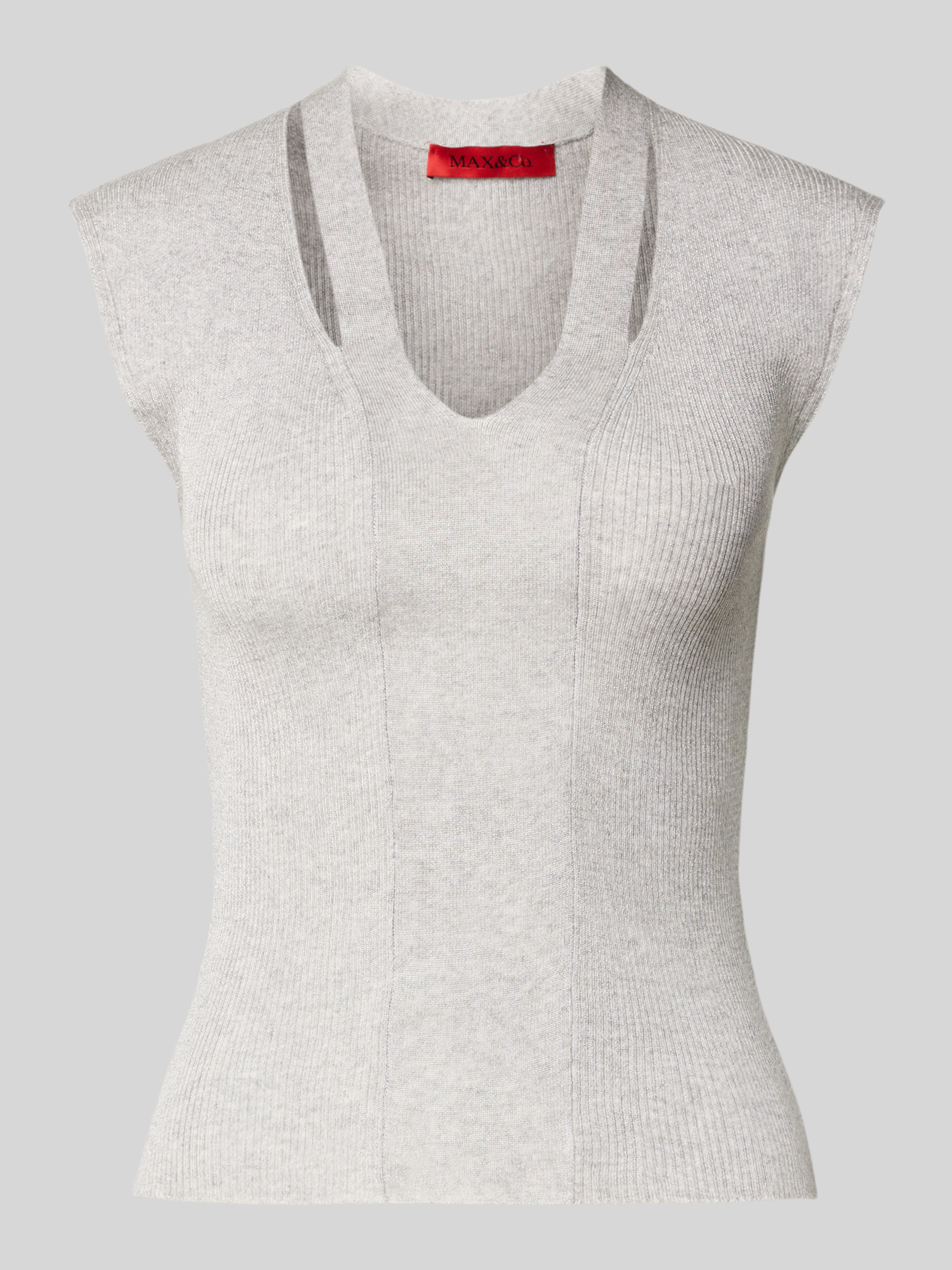 Der Damen Pullunder von MAX&Co., Modell Otello, bringt durch die schimmernde Oberfläche eine dezente Lebendigkeit in jedes Outfit. Der Regular Fit und der V-Ausschnitt sorgen für eine angenehme Passform, während Cut-Outs dem Rippstrick eine interessante Note verleihen. Durch den Viskose-Mix fühlt sich das Material angenehm leicht auf der Haut an.