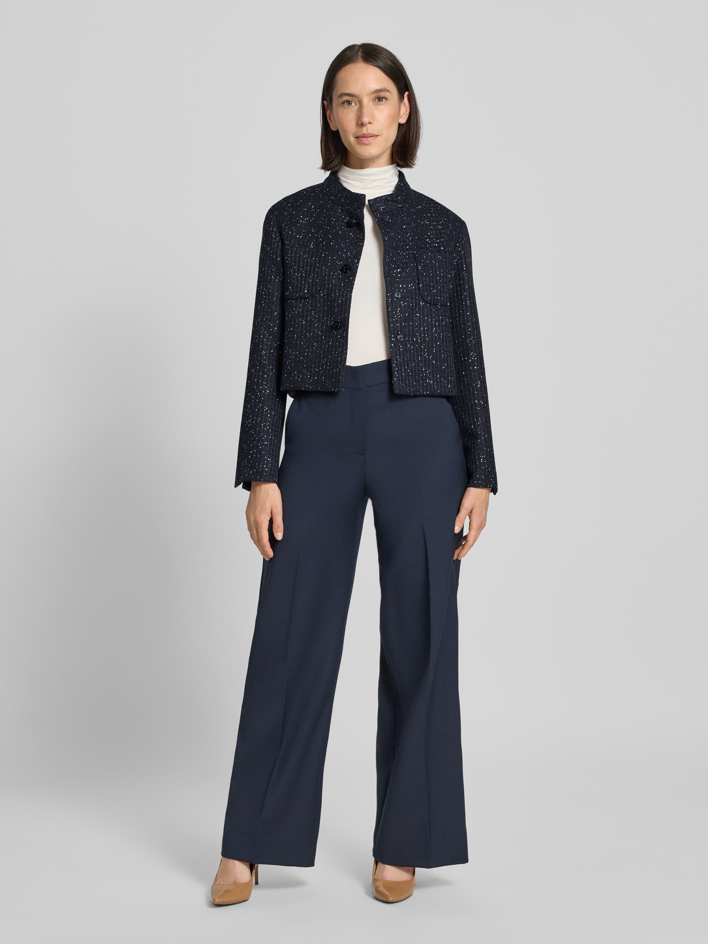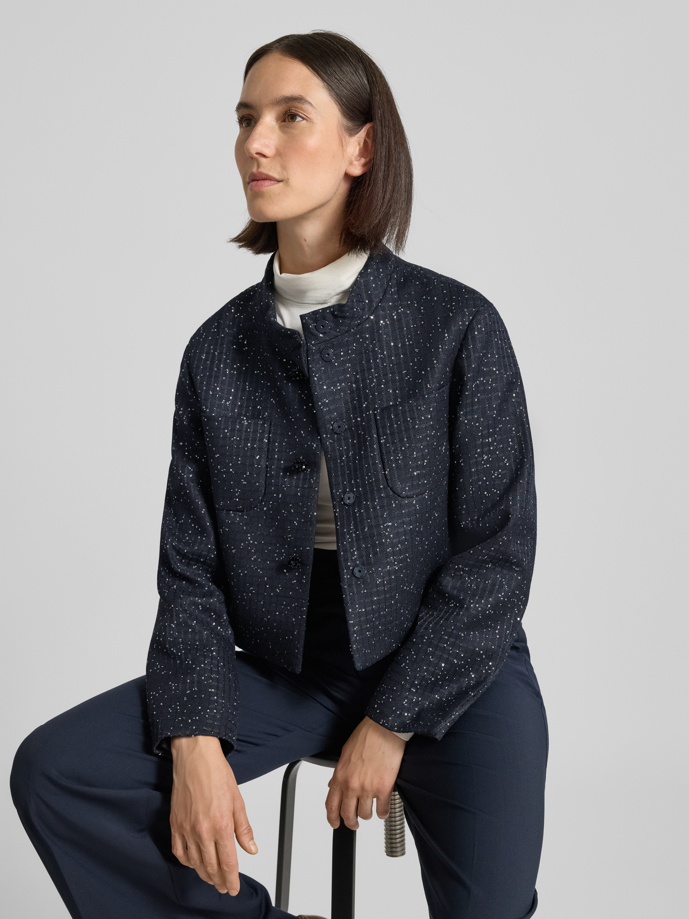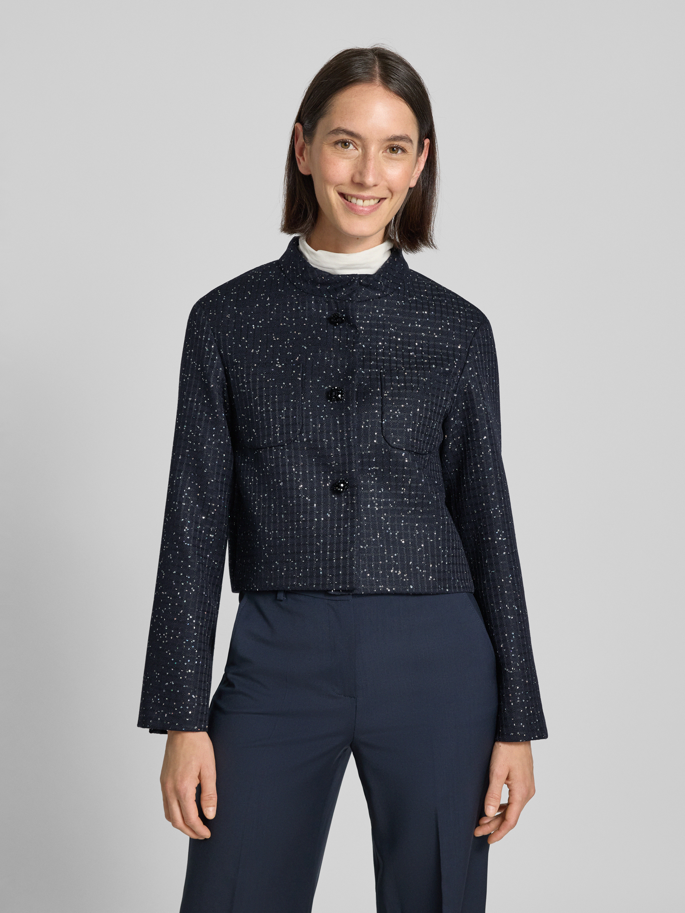 Der Regular Fit Kurzblazer aus Baumwoll-Mix Modell 'Oumo' von Max Mara Studio überzeugt mit einer strukturierten Oberfläche und einem Stehkragen, der dem Look eine moderne Note verleiht. Durch die verkürzte Länge wirkt das Design besonders dynamisch. Die Passform sorgt für angenehmen Tragekomfort im Alltag.