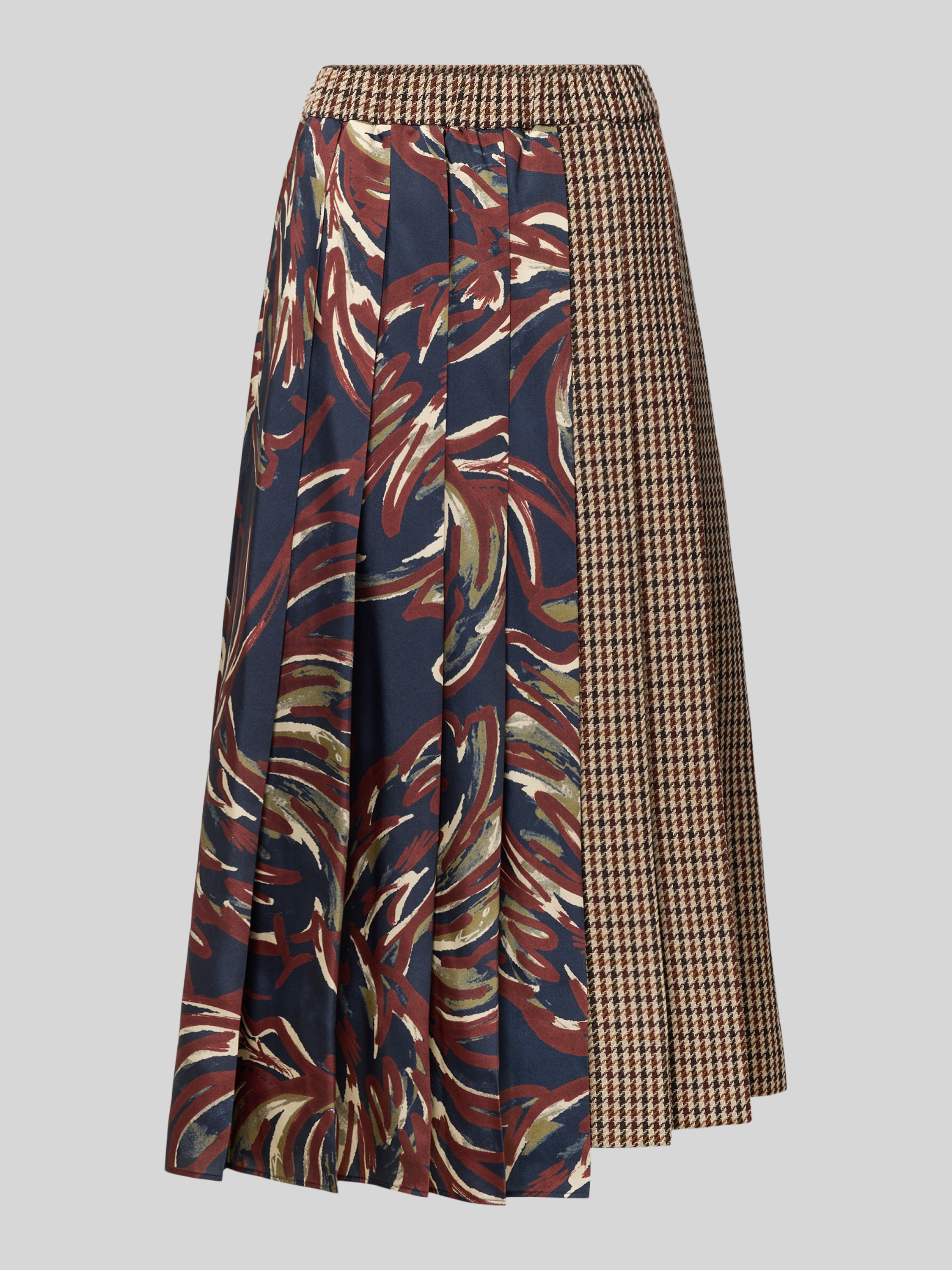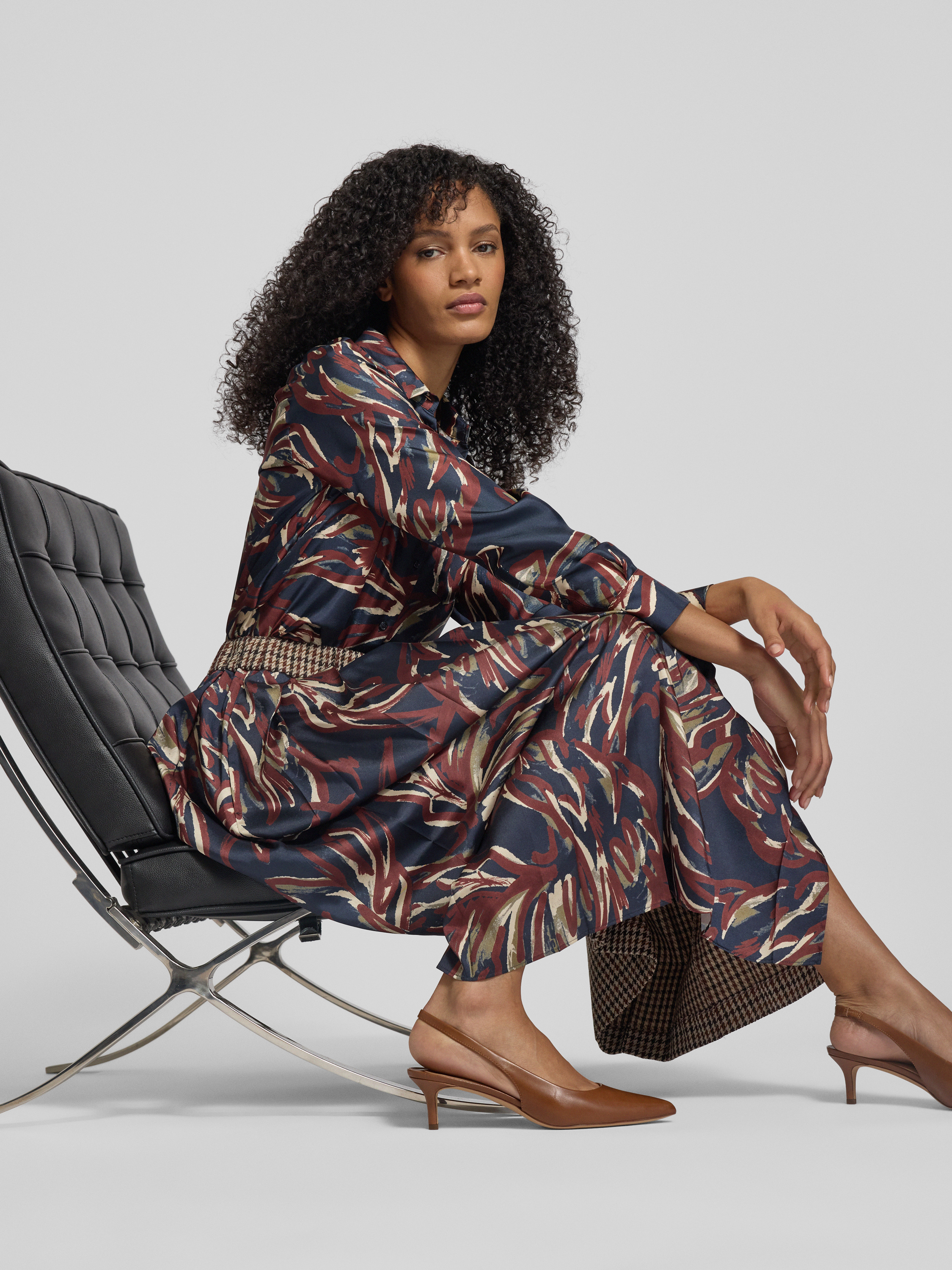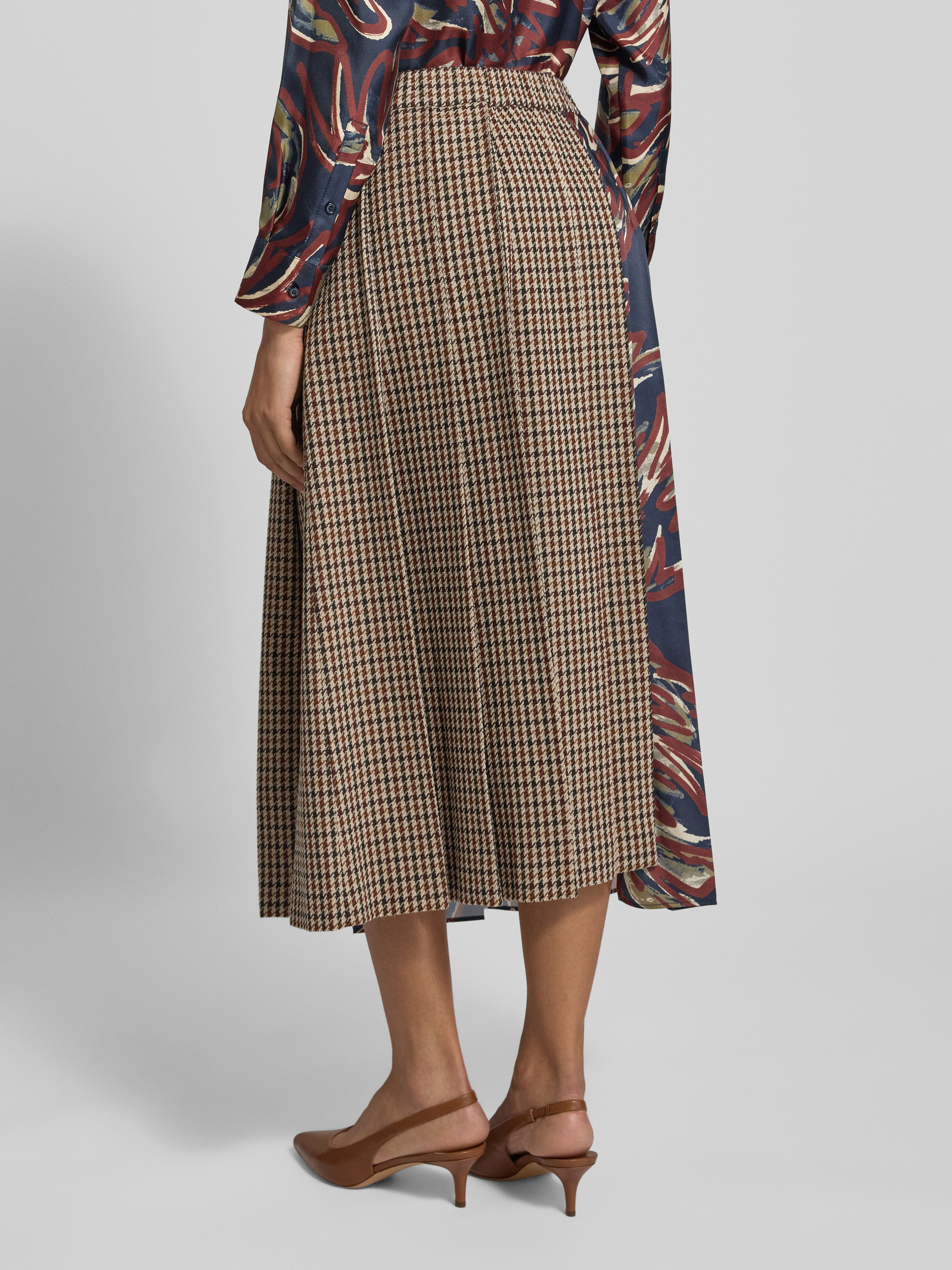 Der Midi-Rock von Weekend Max Mara, Modell Fanale, fällt durch sein Allover-Muster und die ausgestellte Passform angenehm auf. Der Schurwoll-Baumwoll-Mix sorgt für ein komfortables Tragegefühl, während gelegte Falten und seitliche Eingrifftaschen Alltagstauglichkeit mit einer lebendigen Optik verbinden. Durch die durchdachte Materialverarbeitung erhält man ein vielseitiges Kleidungsstück, das sich unkompliziert kombinieren lässt.