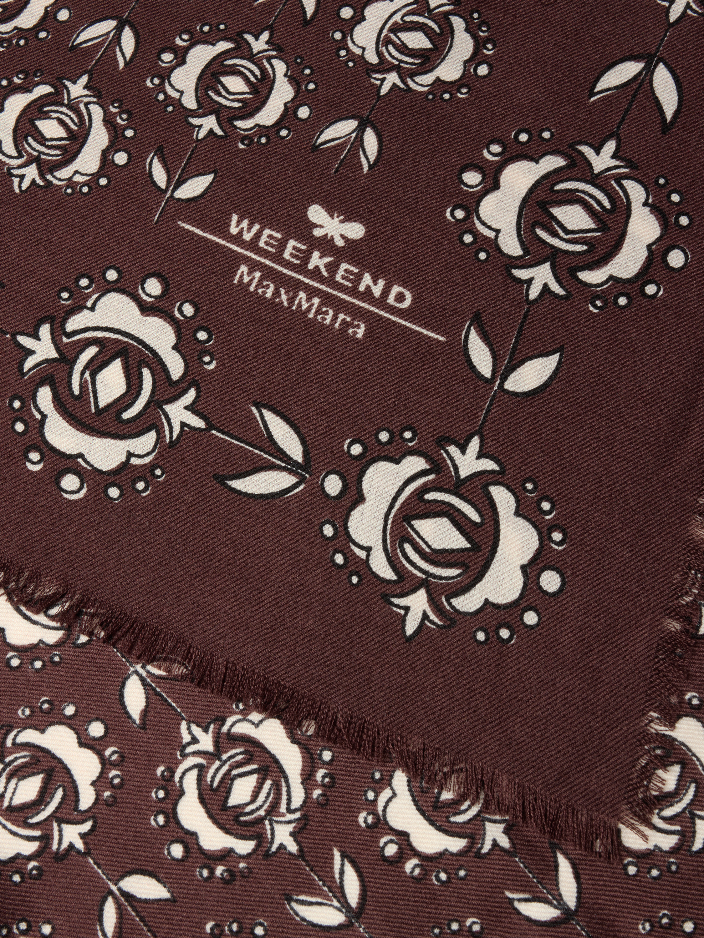 Die Stola von Weekend Max Mara, Modell 'Tambuto', kombiniert einen Woll-Seide-Mix mit einem floralen Allover-Muster, das durch feine Webstruktur hervorsticht. Die Fransen verleihen dem Accessoire eine leichte Bewegung, während der Materialmix sanften Tragekomfort bietet. Ideal für stilvolle Akzente.