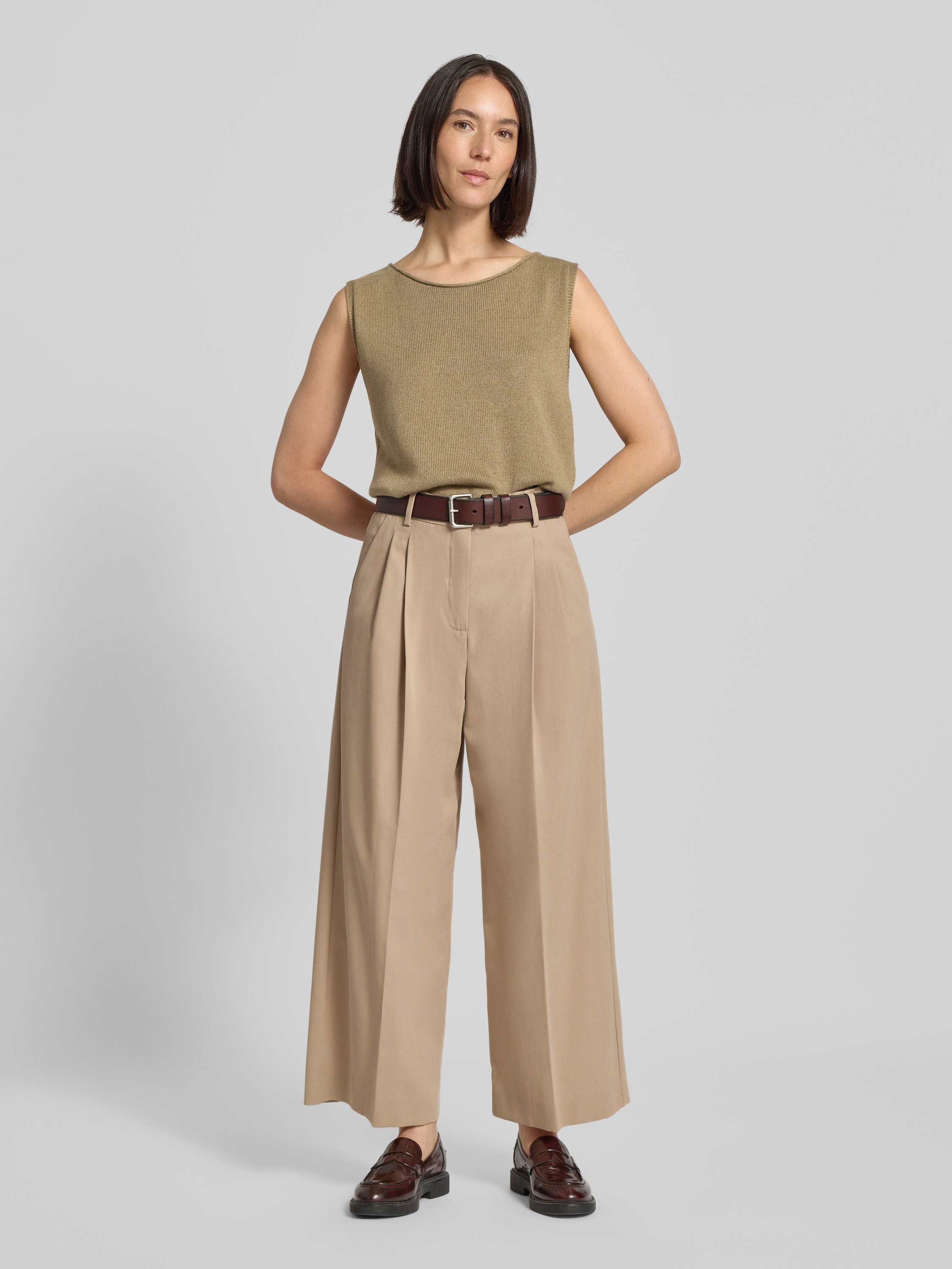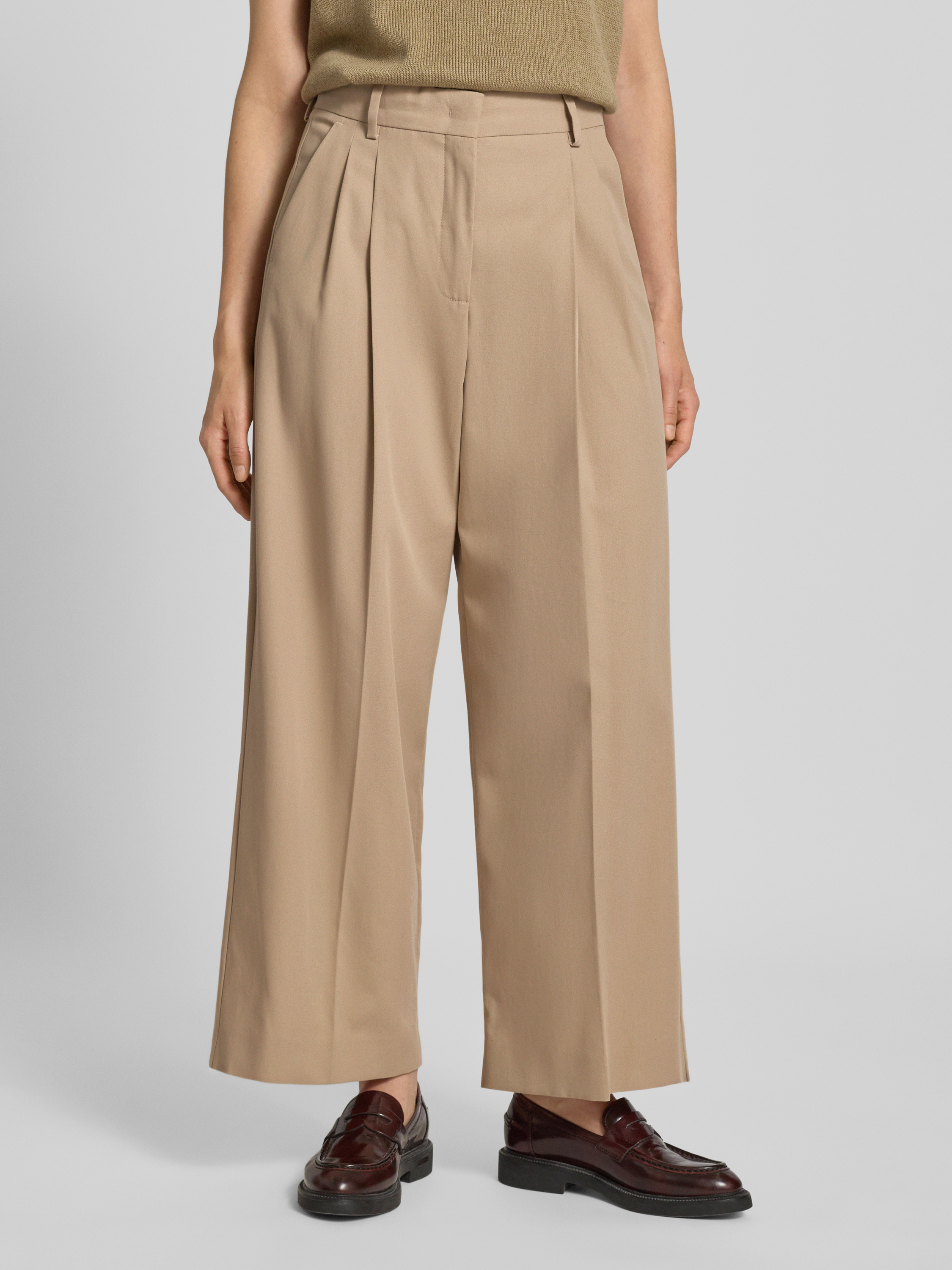 Weekend Max MaraWide Leg Bundfaltenhose aus reiner Baumwolle Modell 'VETTURA' in beige