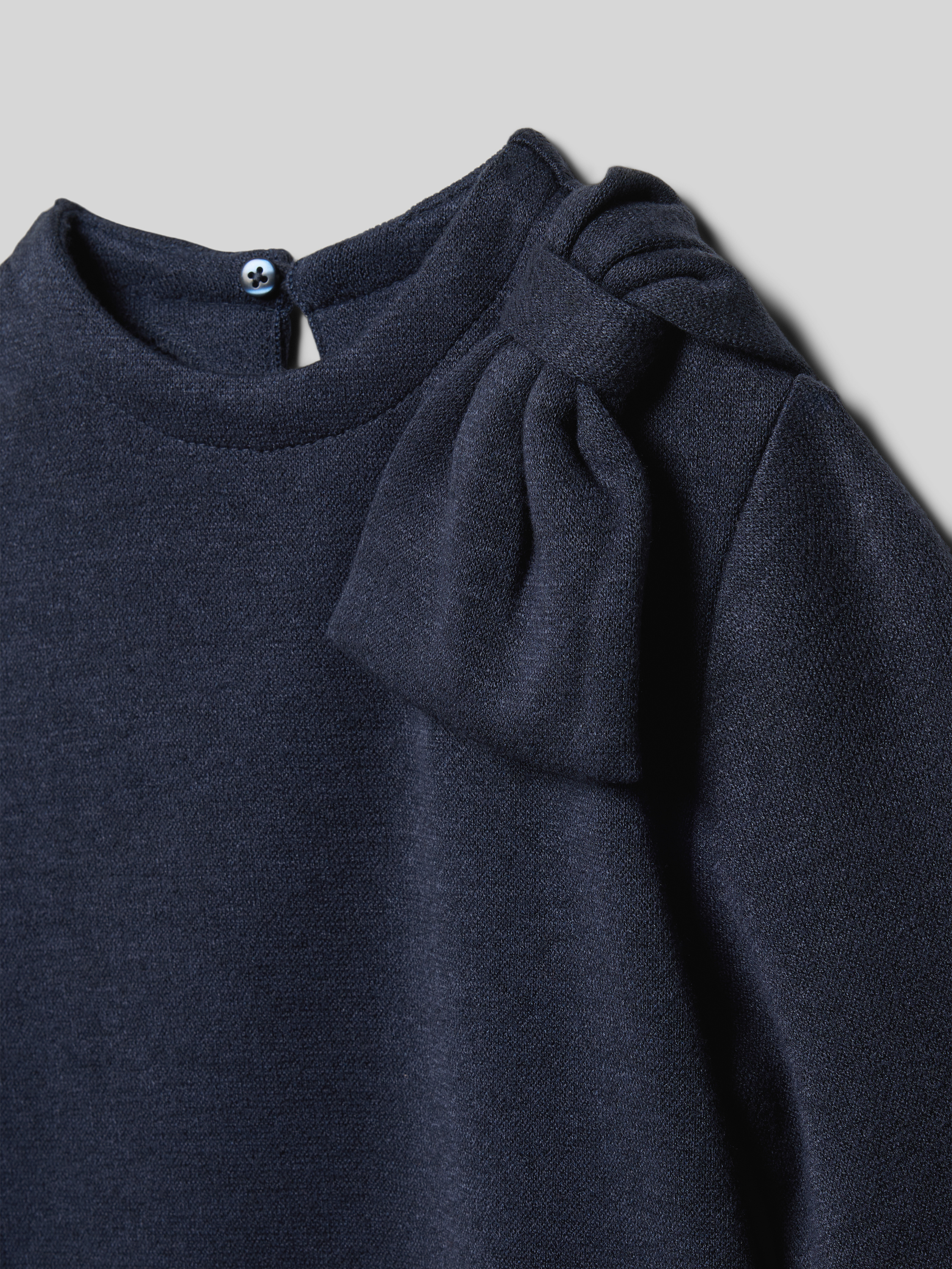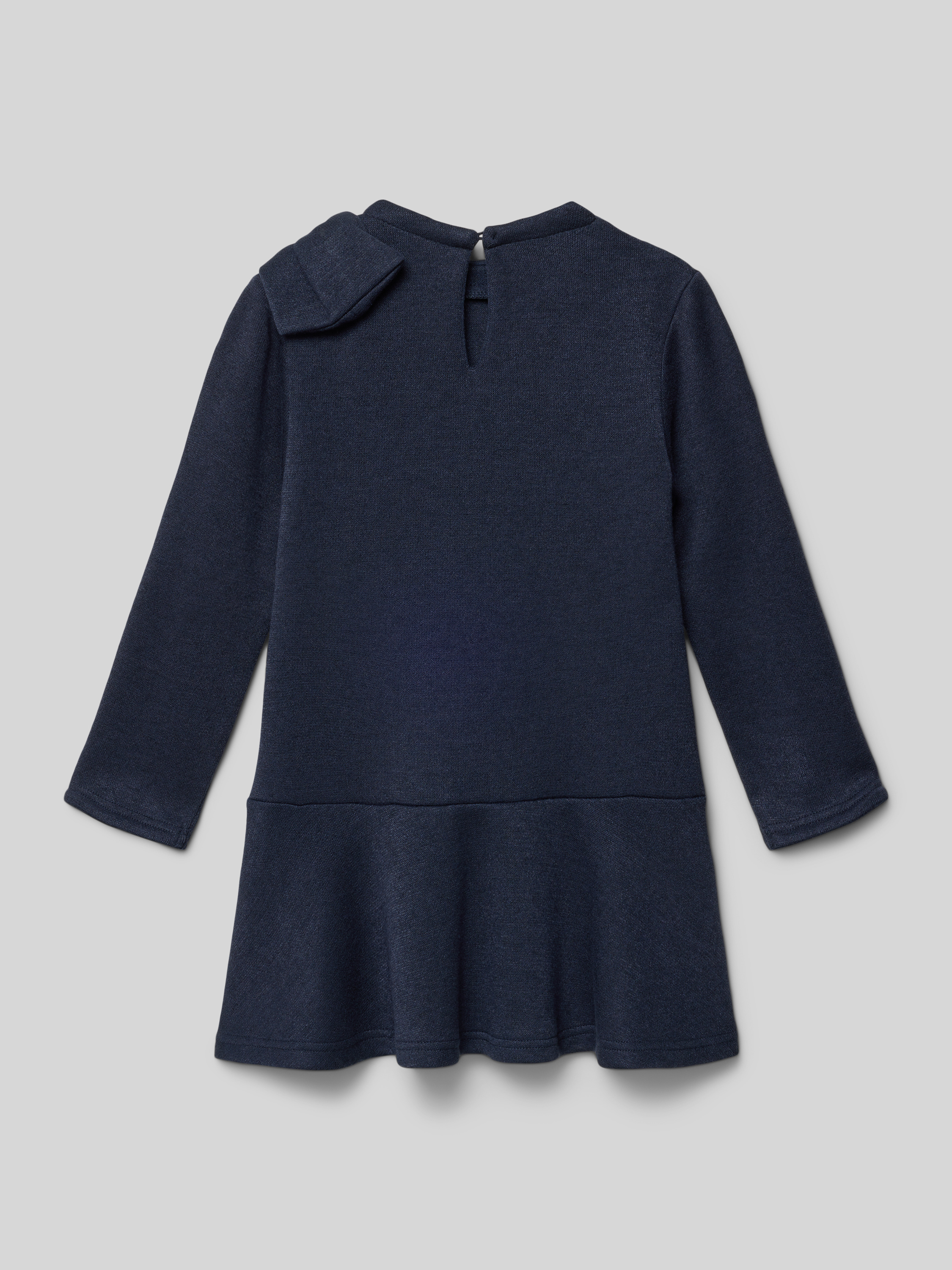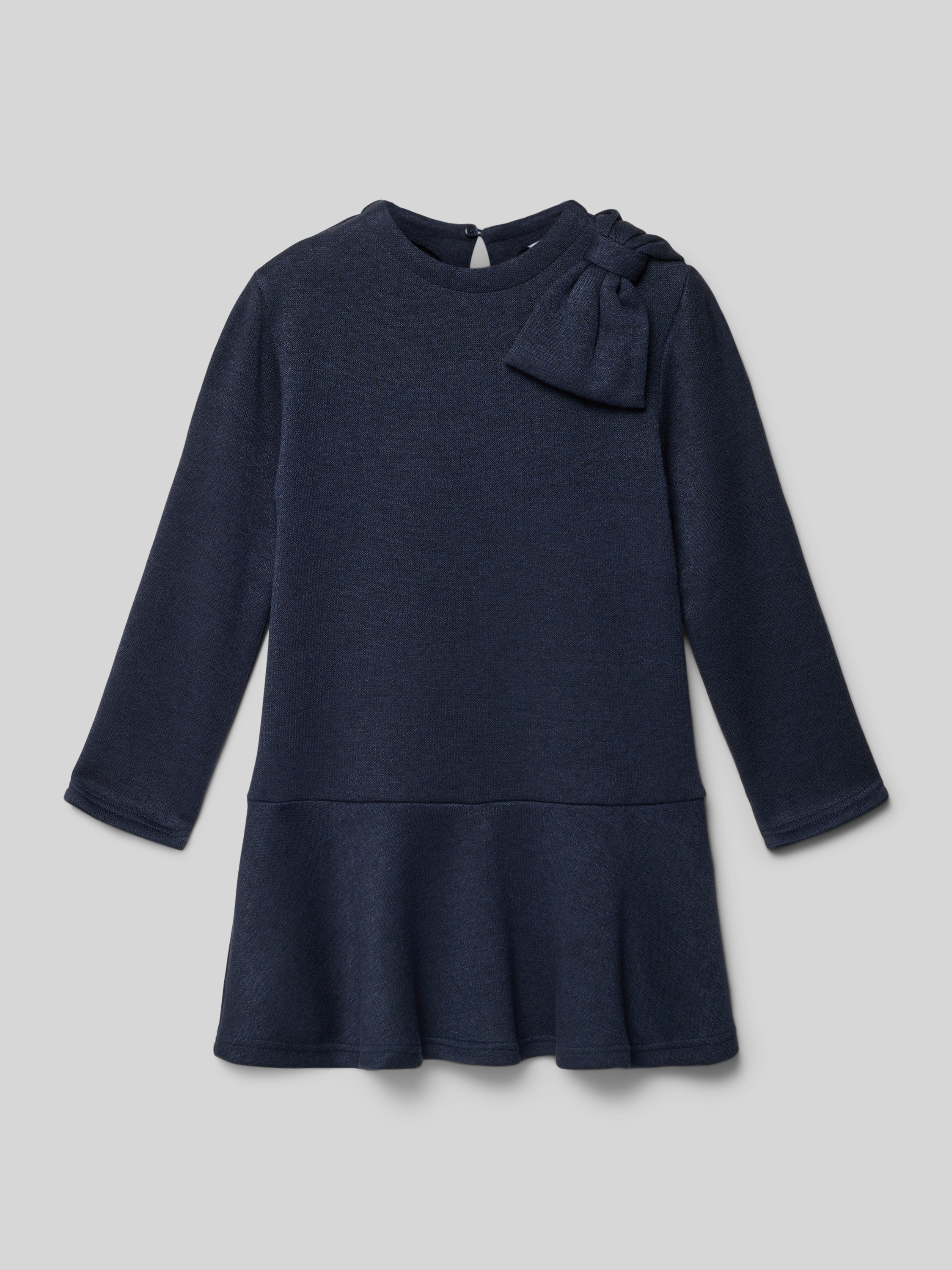 Das Mayoral Minikleid schmiegt sich durch den taillierten Schnitt angenehm an und sorgt mit einer ausgestellten Rockpartie für viel Bewegungsfreiheit beim Spielen. Der Viskose-Mix fühlt sich weich auf der Haut an, während ein feines Schleifen-Detail den Look abrundet. Ein gerippter Rundhalsausschnitt ergänzt das Design.
