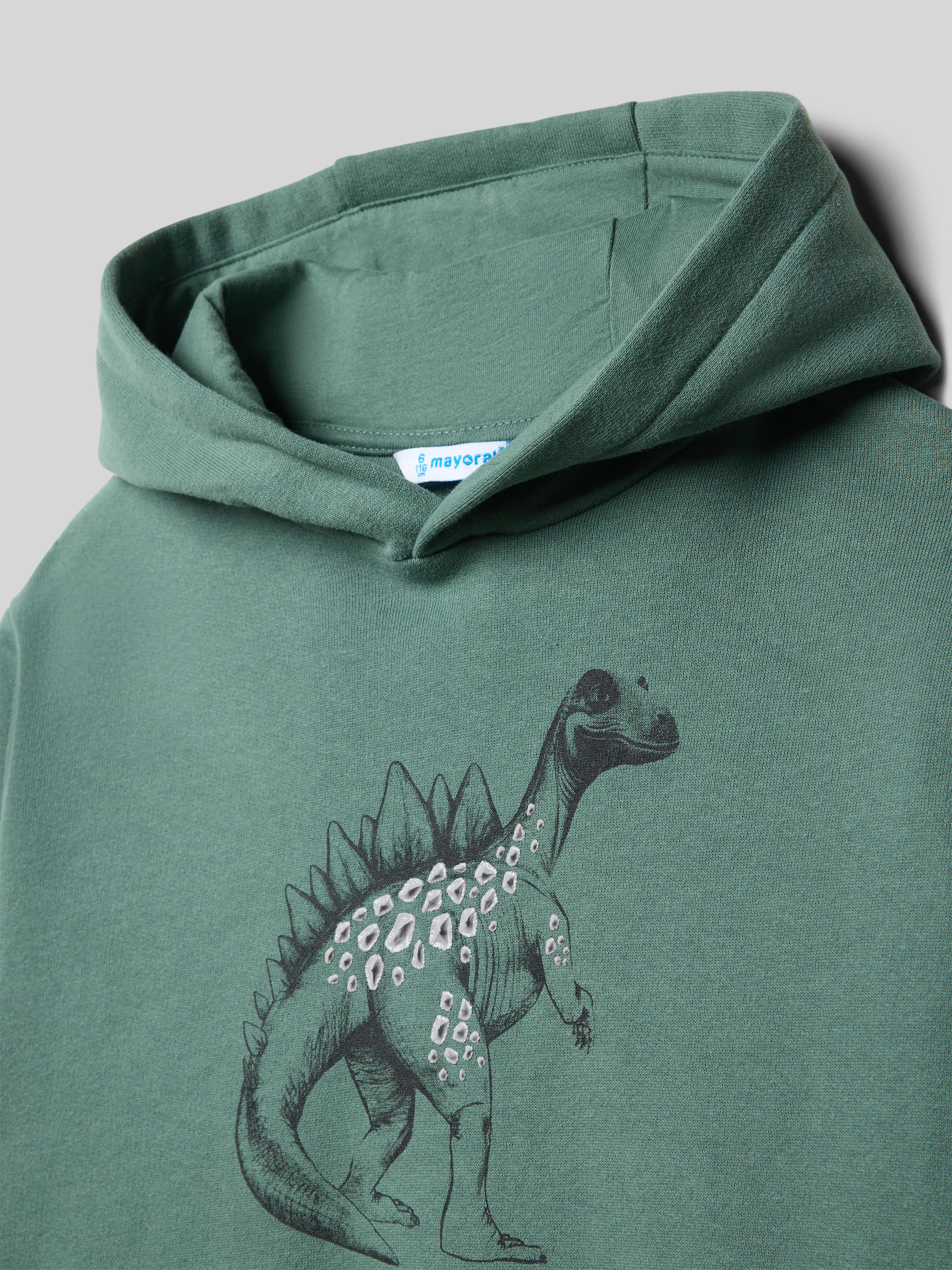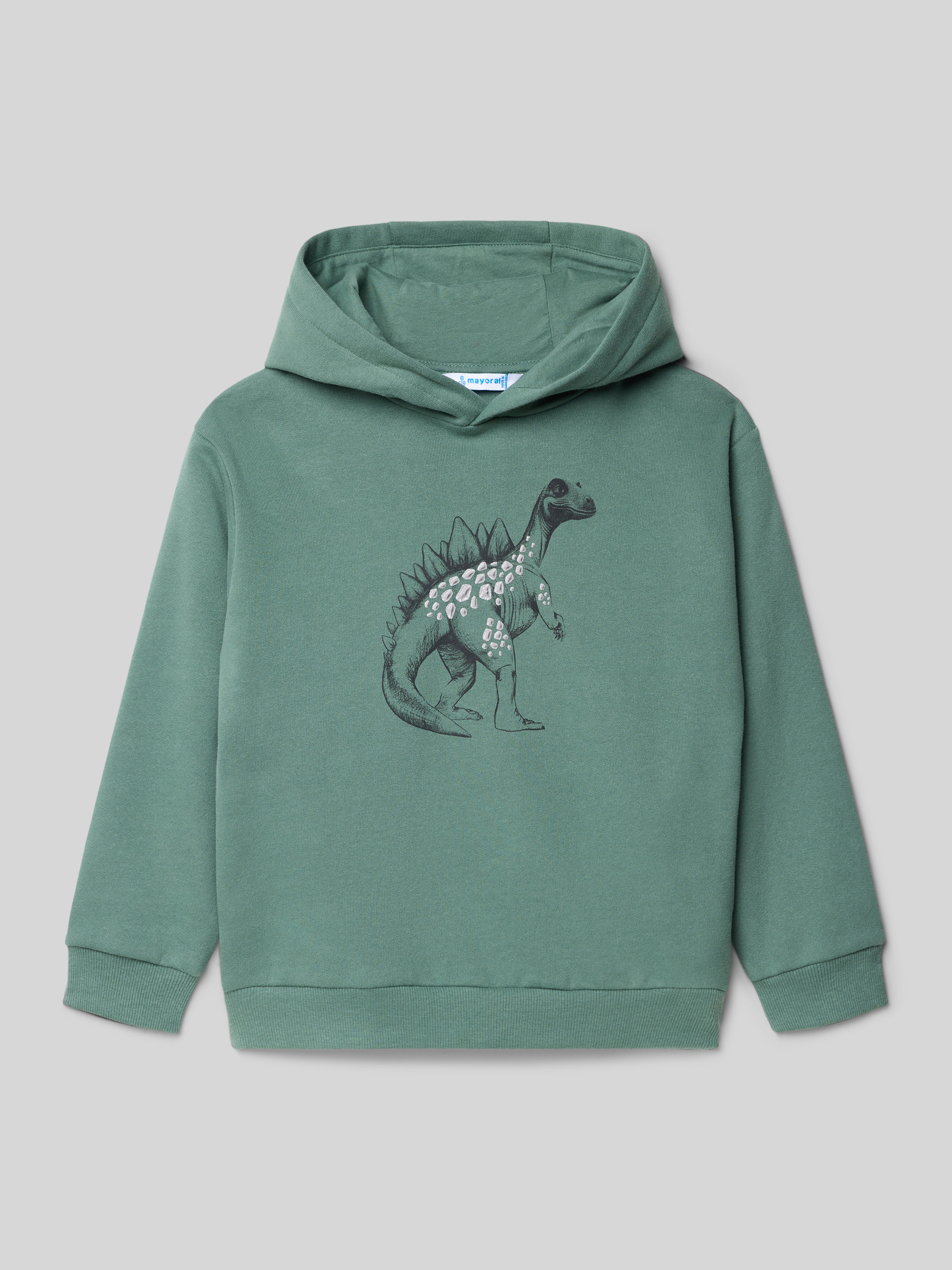 Der Regular Fit Hoodie von Mayoral vereint Komfort und Stil in einem elastischen Baumwolle-Elasthan-Mix, der sich angenehm anfühlt und flexibel ist. Mit seinem Motiv-Print zieht er die Blicke auf sich, während die elastischen Abschlüsse für zusätzlichen Tragekomfort sorgen. Ideal für aktive Kinder, die Bewegungsfreiheit schätzen.