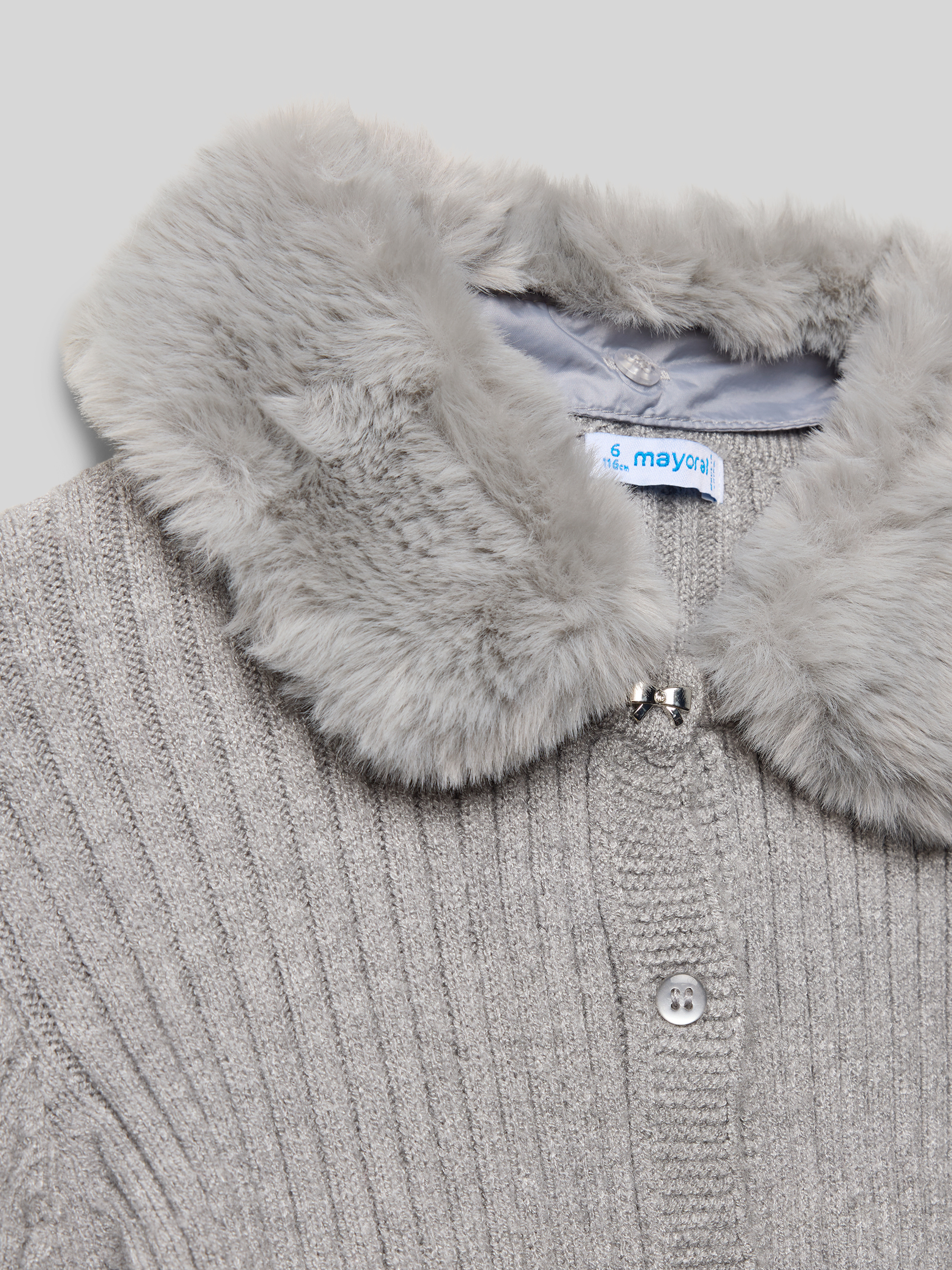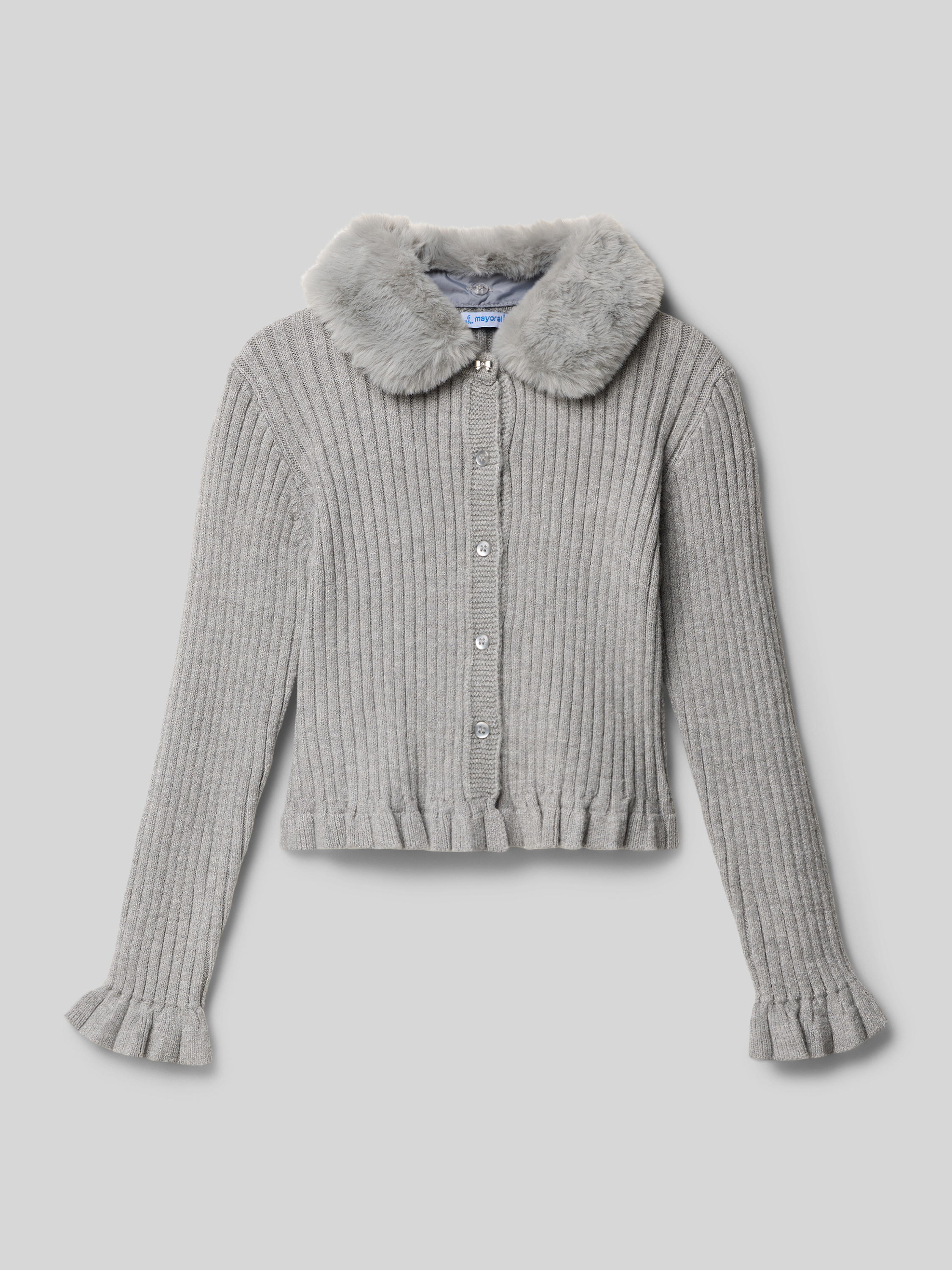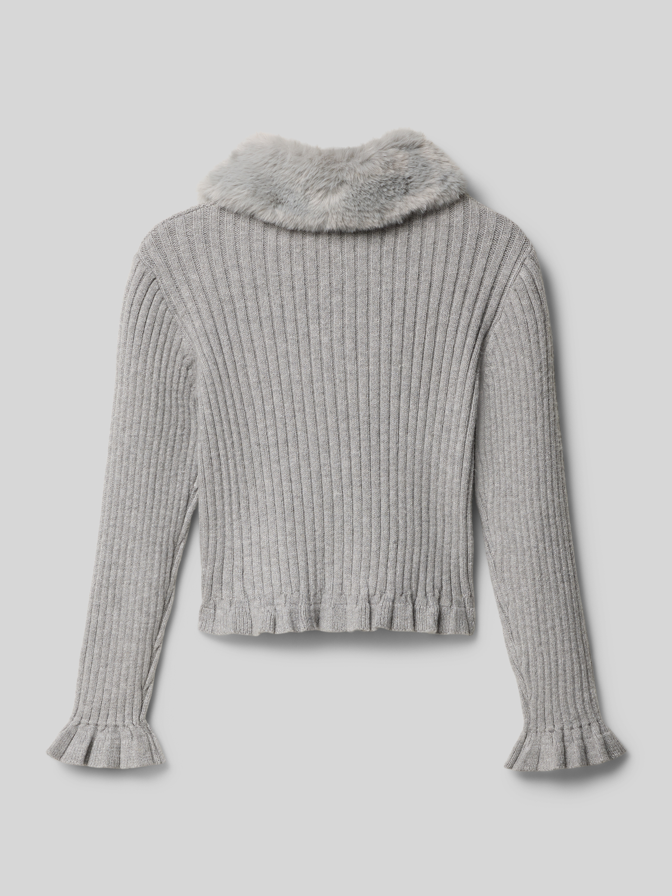 MayoralStrickjacke mit Kunstfellbesatz in mittelgrau melange