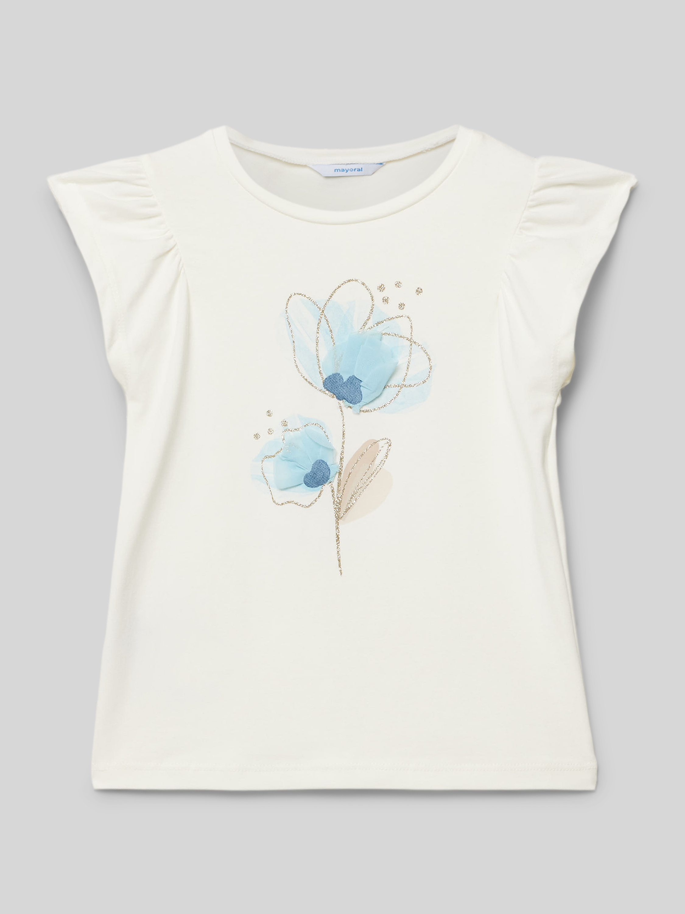 Das Kinder T-Shirt von Mayoral vereint Komfort und Stil durch seinen geraden Schnitt und den angenehmen Baumwoll-Elasthan-Mix. Der Rundhalsausschnitt sorgt für Bequemlichkeit, während der lebendige Motiv-Print ein fröhliches Detail hinzufügt. Es eignet sich ideal für alltägliche Abenteuer.