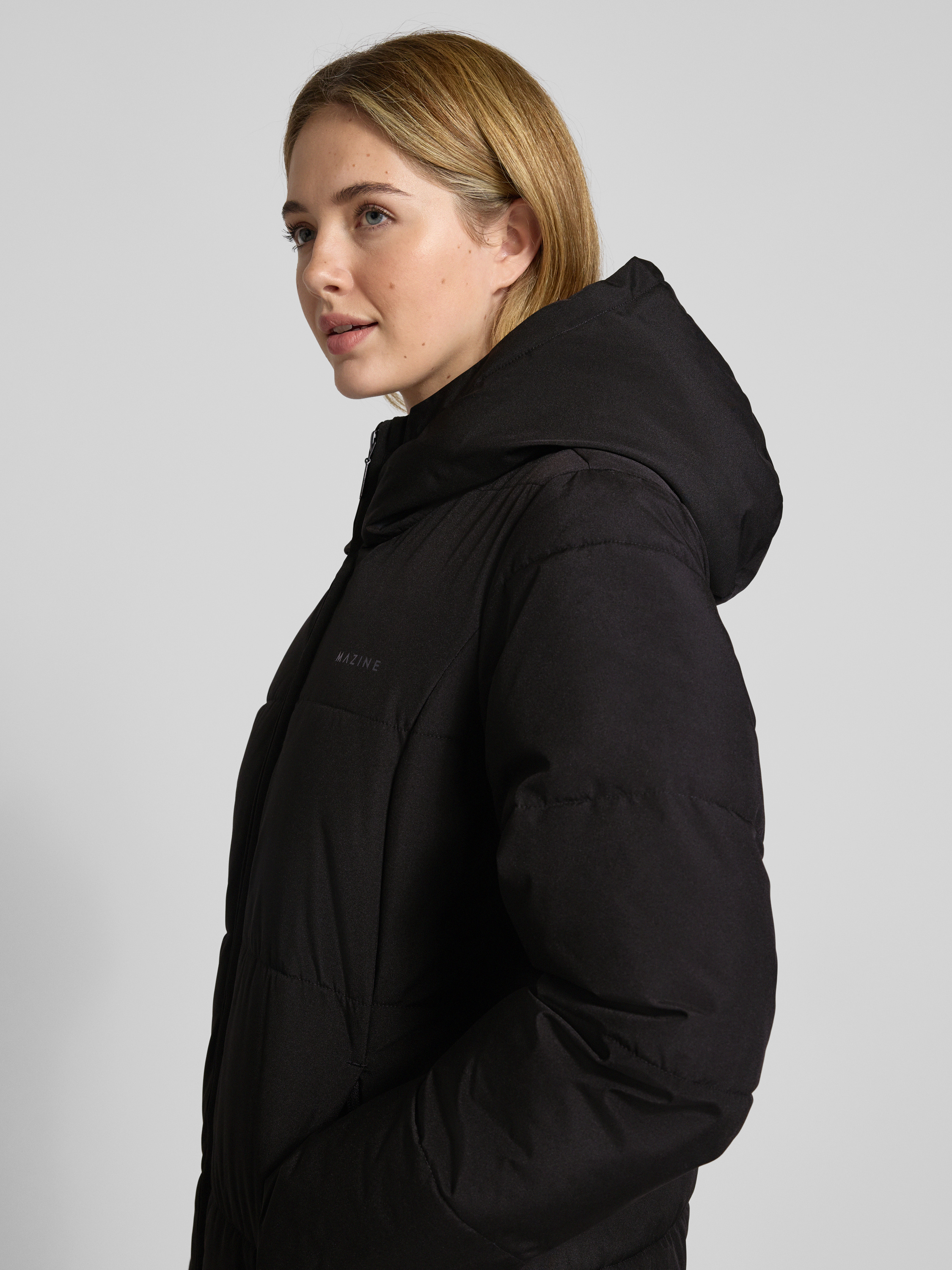 Der Damen Steppmantel von Mazine zeigt sich im Regular Fit und bietet durch die Kapuze Schutz an kühlen Tagen. Das glatte Material sorgt für ein angenehmes Tragegefühl, während die praktischen Eingrifftaschen den Alltag erleichtern. Dezente Details wie der Label-Print runden das Design ab.