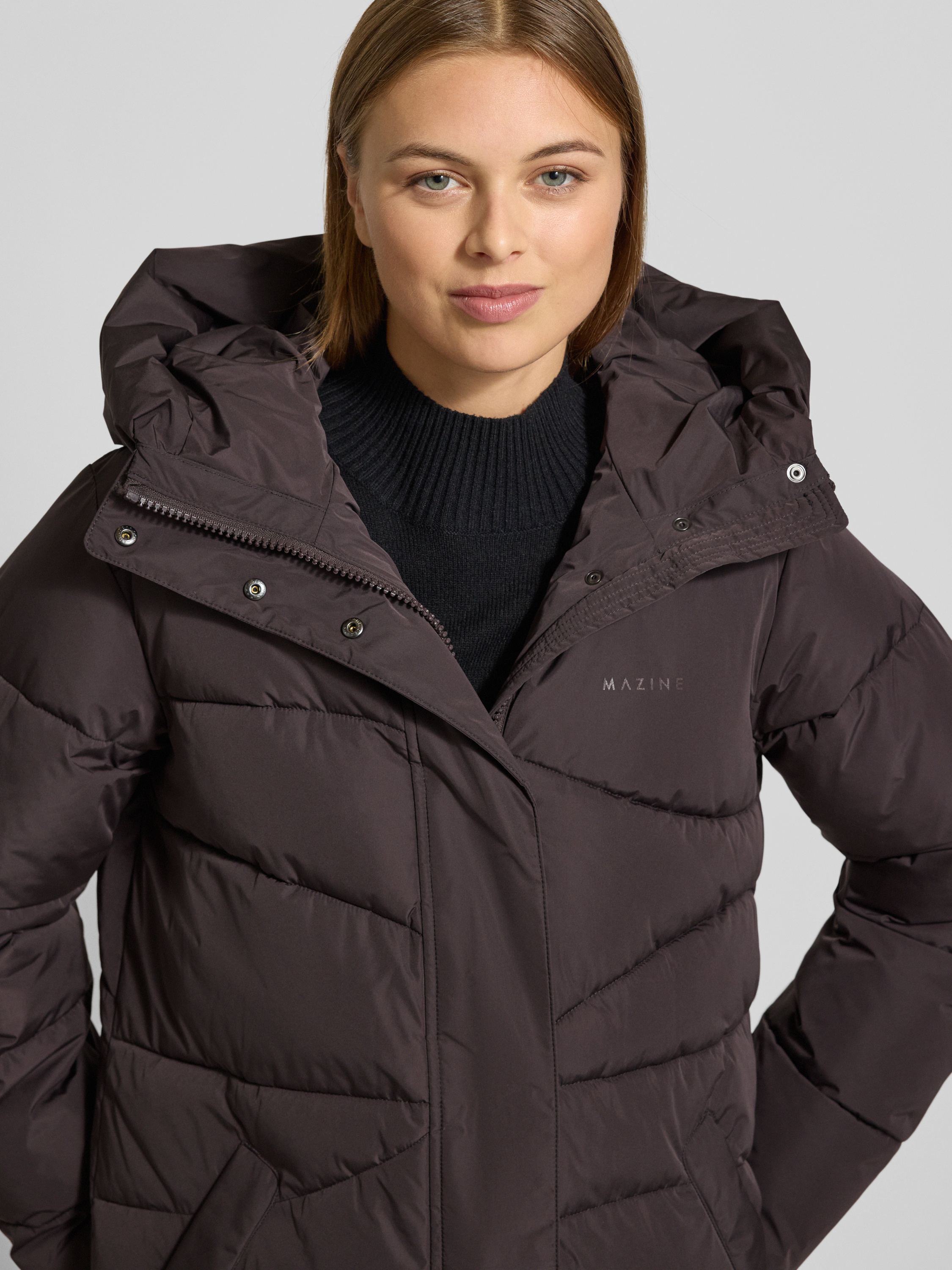 MazineSteppmantel mit Kapuze und Eingrifftaschen in aubergine
