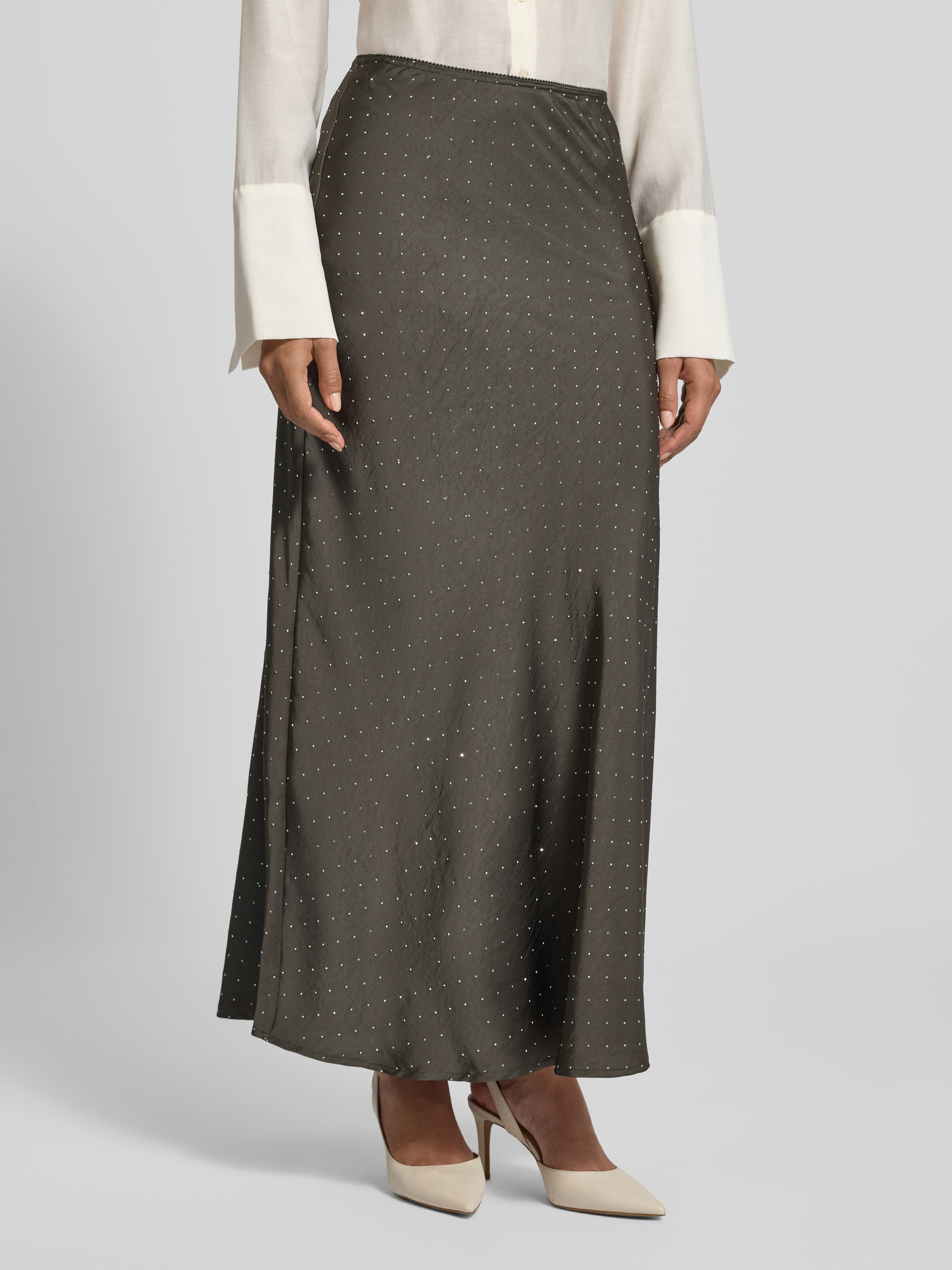 Der Maxirock Maila von mbyM aus Satin fällt in einer fließenden A-Linie und bringt durch den feinen Ziersteinbesatz dezente Akzente ins Spiel. Der Schnitt ermöglicht Bewegungsfreiheit, während der angenehme Bund den Sitz entspannt gestaltet. So eignet sich der Rock für viele Gelegenheiten und schafft Komfort im Alltag.