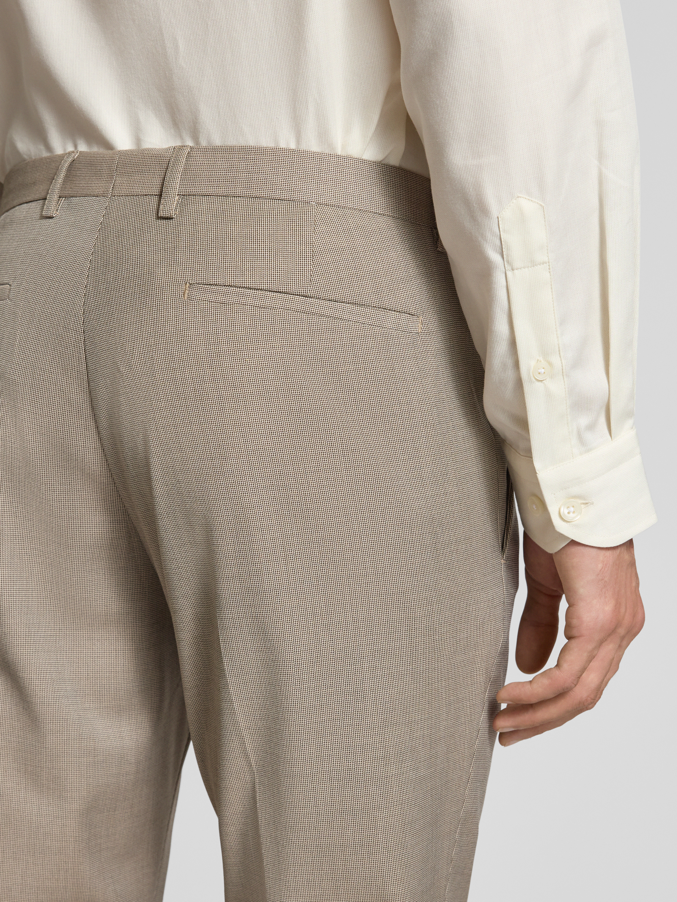 Die Anzughose von MCNEAL kombiniert einen komfortablen Material-Mix mit einem stilvollen Slim Fit, wodurch sie eine schlanke Silhouette schafft. Die eleganten Bügelfalten verleihen dem Modell eine klassische Note, während Paspeltaschen am Gesäß praktische Details hinzufügen. Ideal für formelle Anlässe.