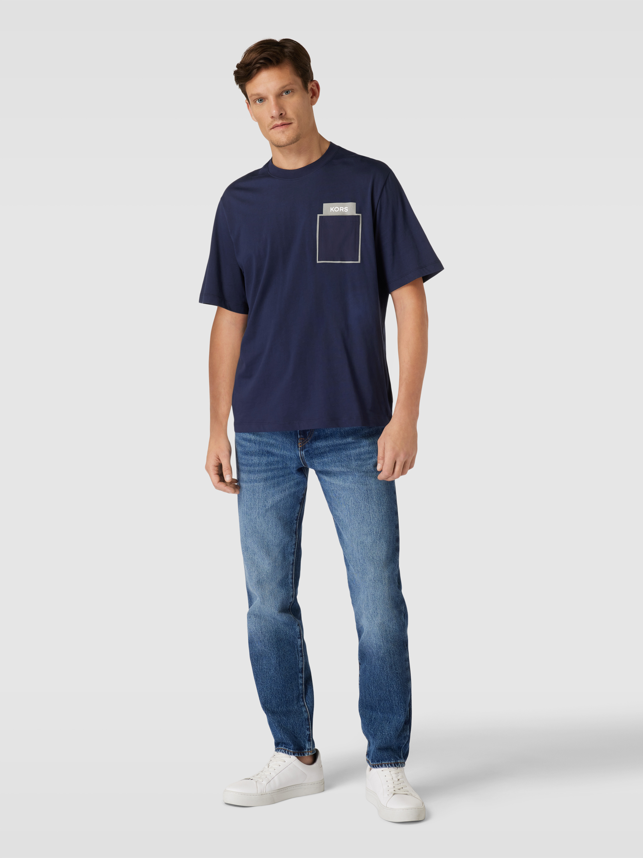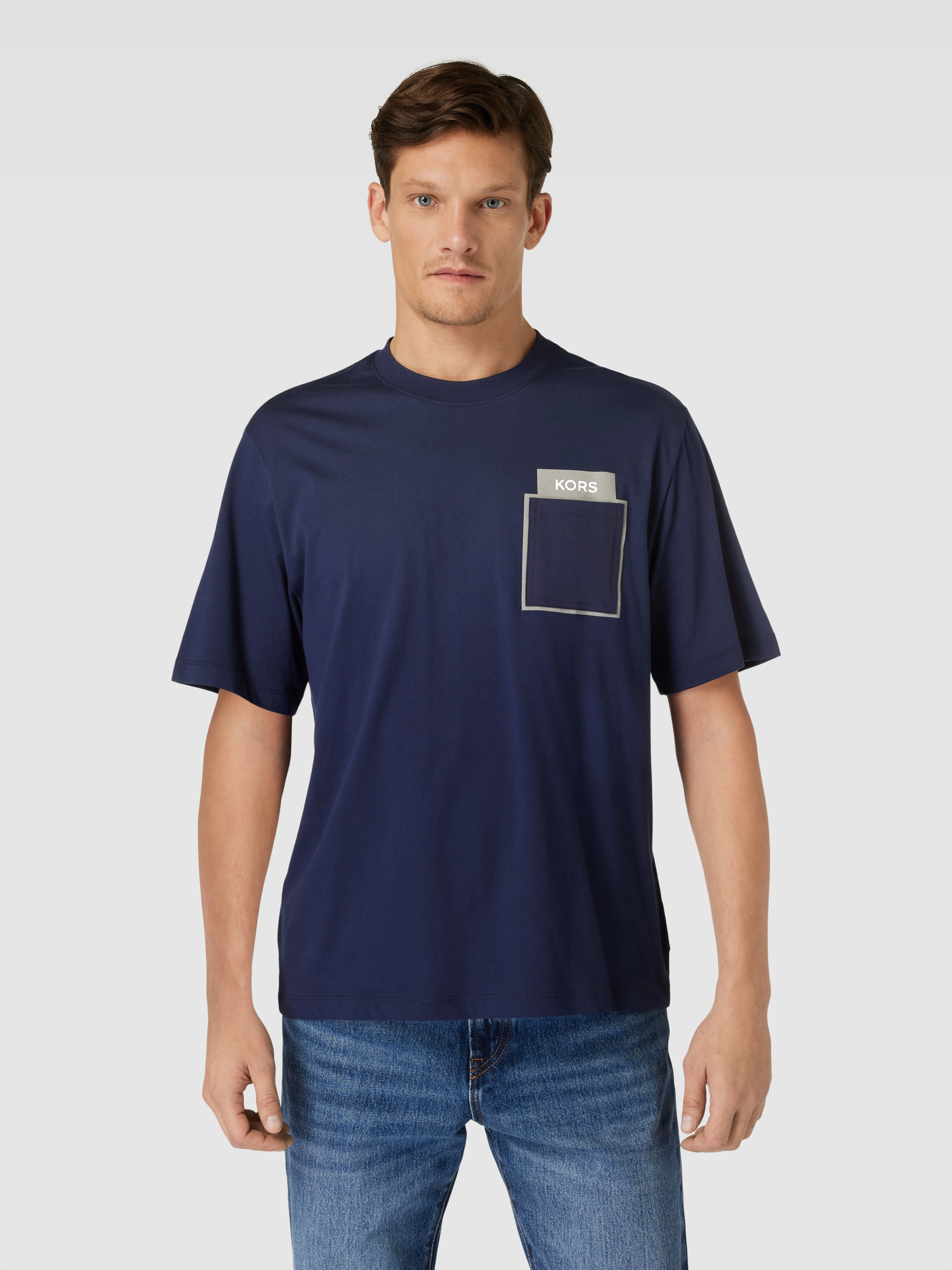 Michael KorsT-Shirt mit Brusttasche Modell 'HEAT TRANSFER' in dunkelblau