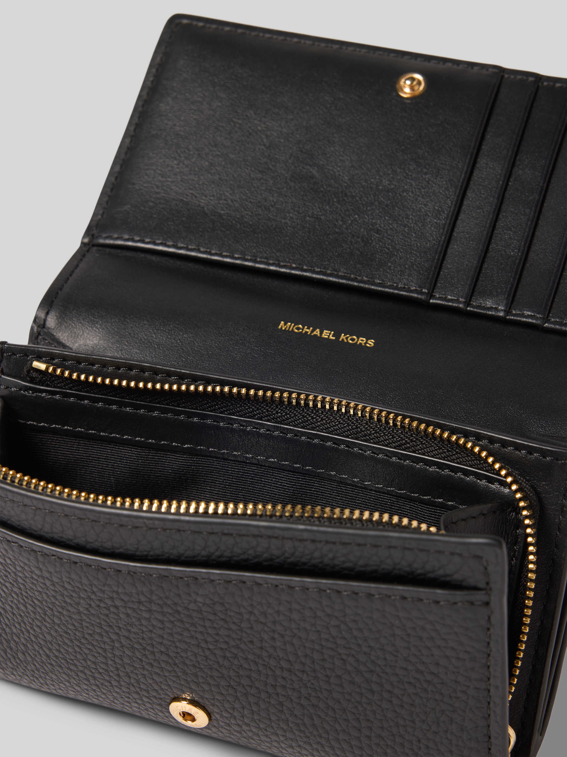 Das Portemonnaie BRYANT von MICHAEL Michael Kors vereint stilvolle Eleganz mit praktischer Funktionalität. Aus hochwertigem Leder gefertigt, bietet es ein geräumiges Hauptfach mit Druckknopfverschluss sowie ein sicheres Nebenfach mit Reißverschluss. Karten- und Scheinfächer ermöglichen eine übersichtliche Organisation.