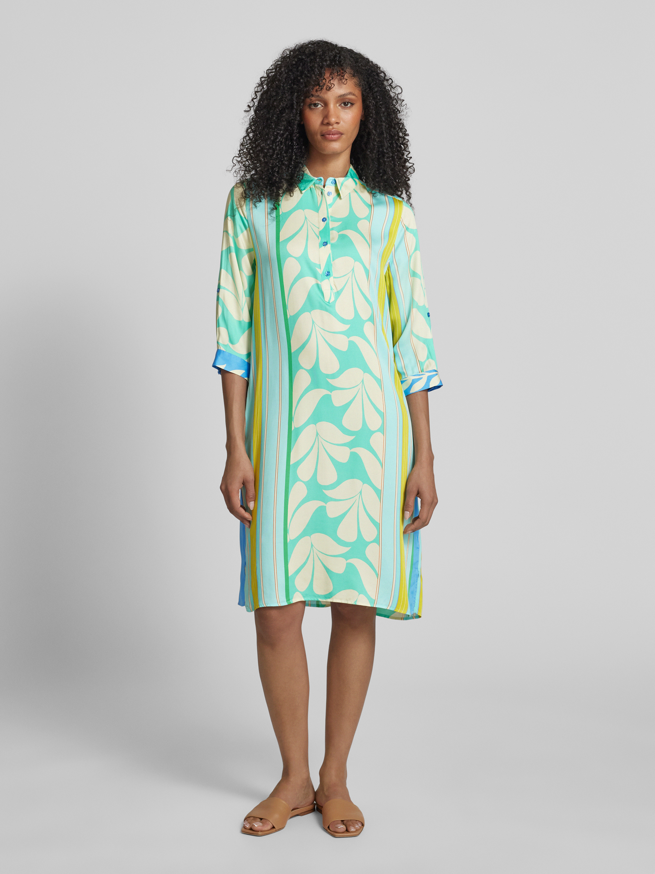 Das Milano Italy Hemdblusenkleid aus Viskose mit Knopfleiste fällt durch seinen geraden Schnitt angenehm locker und sorgt für Bewegungsfreiheit im Alltag. Dank des Umlegekragens und der knielangen Form lässt sich das Modell vielseitig kombinieren, während der 3/4-Arm einen entspannten Akzent setzt. Die reine Viskose trägt sich angenehm leicht und fühlt sich sanft auf der Haut an.