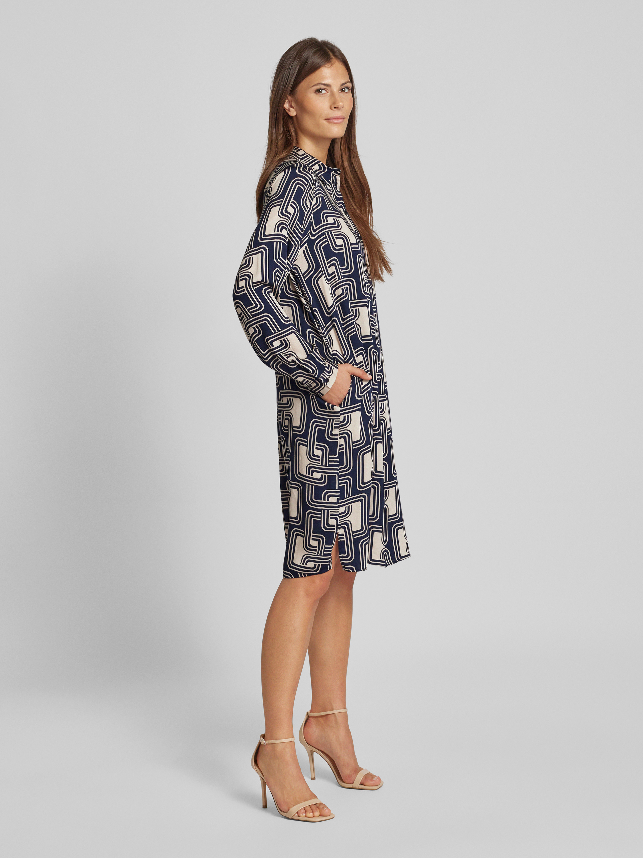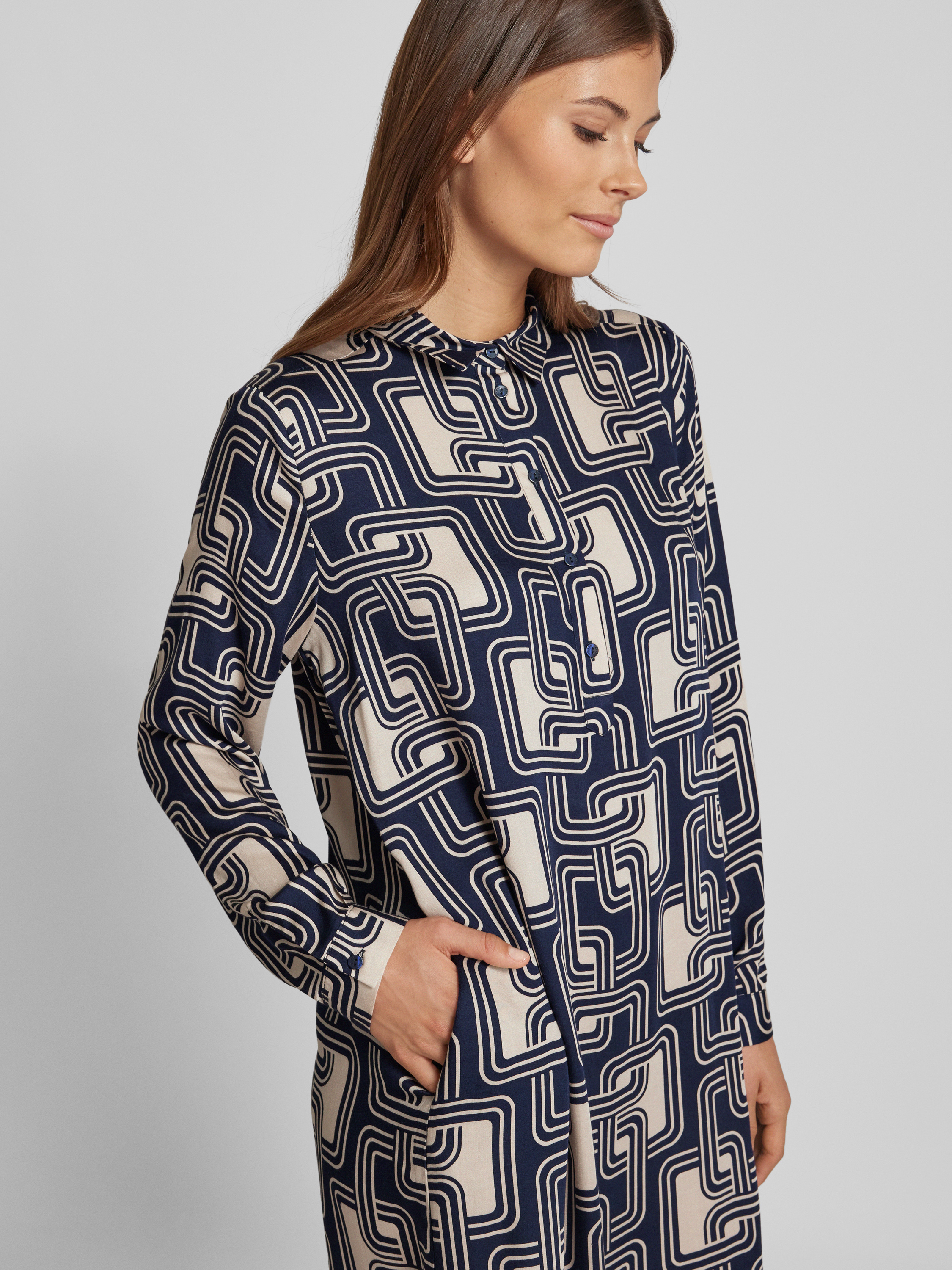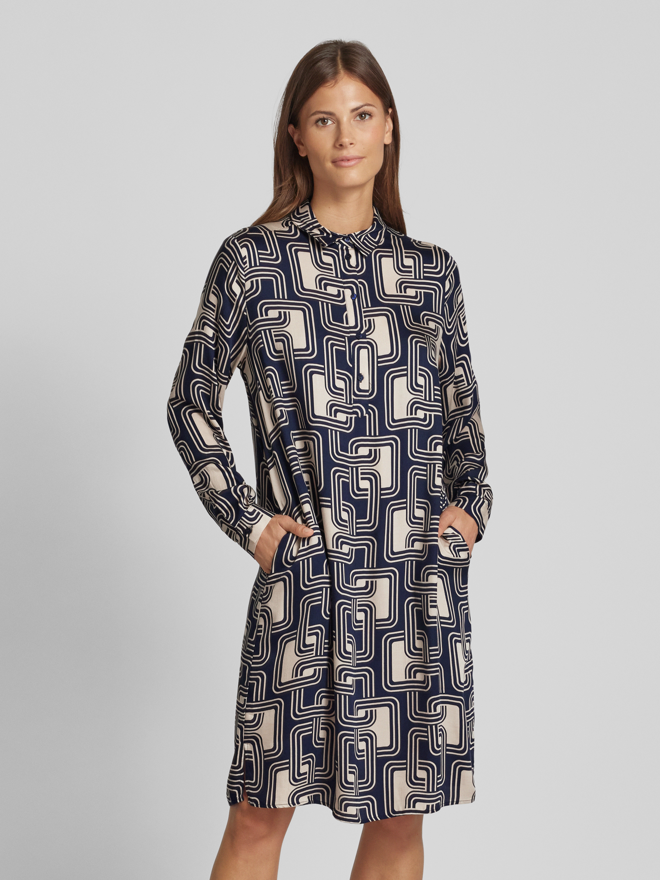 Das knielange Kleid von MILANO ITALY aus reiner Viskose besticht durch seinen lockeren Schnitt und das langärmelige Design. Mit seinem Umlegekragen und der kurzen Knopfleiste wirkt es gleichzeitig elegant und lässig. Es eignet sich ideal für verschiedenste Anlässe.