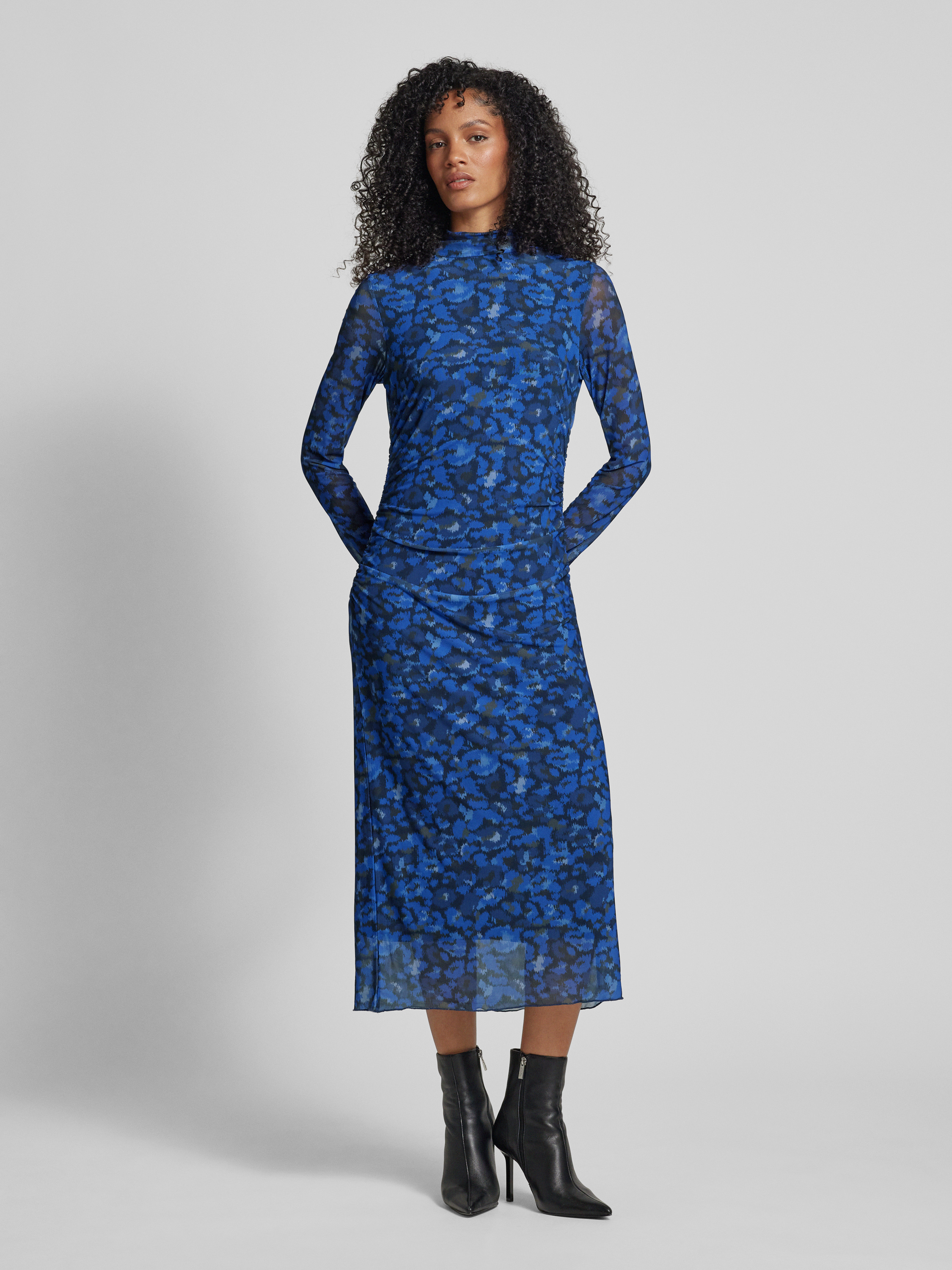 Das Maxikleid von MILANO ITALY kombiniert einen eleganten Stehkragen mit einem semitransparenten Design, das durch ein blickdichtes Unterkleid ergänzt wird. Der taillierte Schnitt schmeichelt der Figur, während der Material-Mix mit Stretch-Anteil angenehme Bewegungsfreiheit ermöglicht. Raffungen sorgen für eine stilvolle Optik.