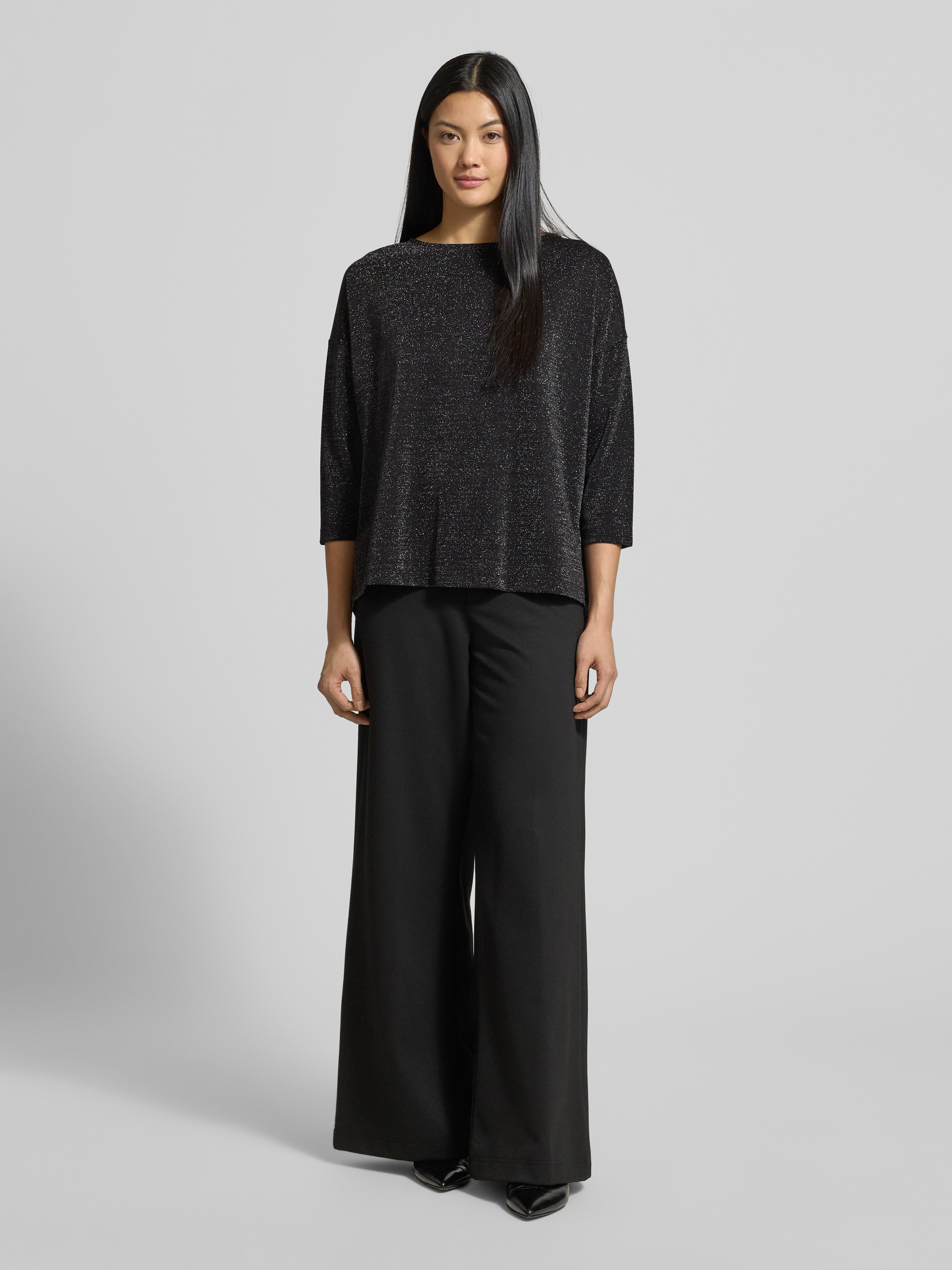 Das Milano Italy T-Shirt zeigt sich mit regulärer Passform und sorgt durch den lockeren Schnitt für angenehme Bewegungsfreiheit. Ein dezenter Glanz verleiht dem schimmernden 3/4-Arm einen besonderen Akzent, während der Rundhalsausschnitt alltagstauglich wirkt. So lässt sich das Oberteil vielseitig kombinieren.