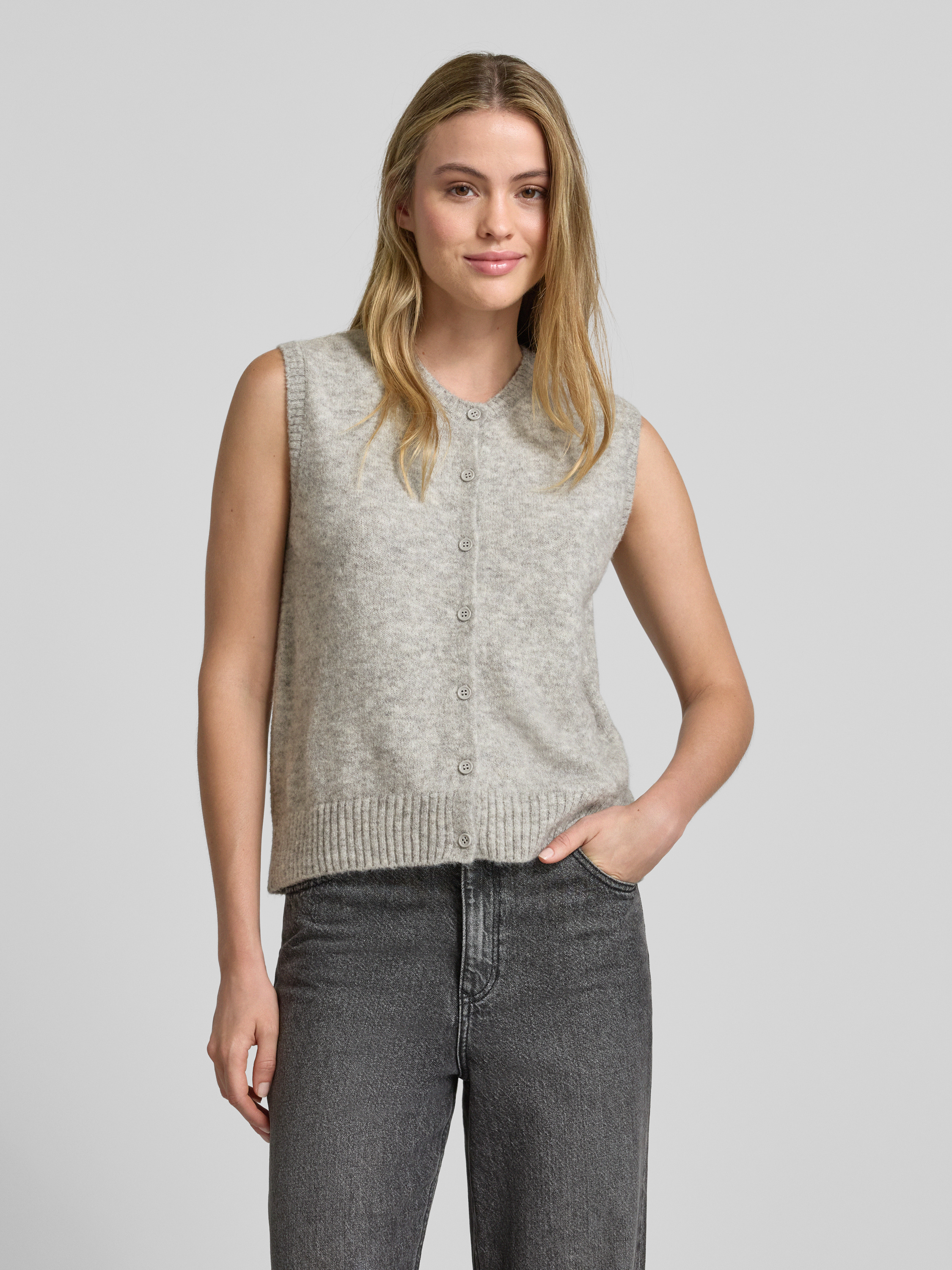 Milano ItalyStrickweste mit Rundhalsausschnitt und Knopfleiste in hellgrau