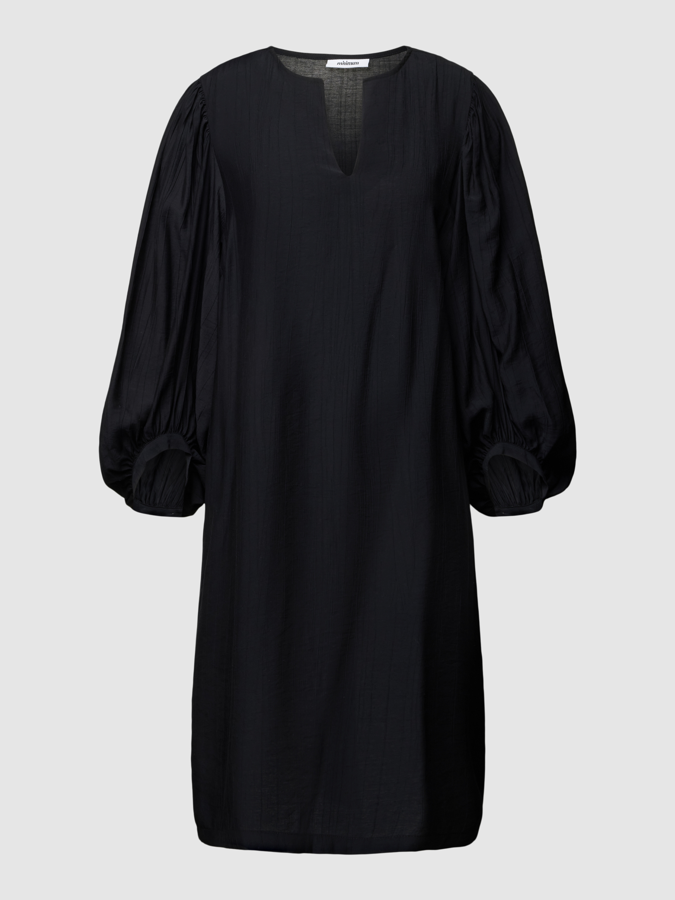 Das knielange Kleid mit Ballonärmeln von Minimum, Modell STRUCTURIA, fällt durch seinen lockeren Schnitt angenehm und sorgt für Bewegungsfreiheit. Der Viskose-Mix fühlt sich leicht an, während das unifarbene Design mit Tunikakragen vielseitige Kombinationsmöglichkeiten im Alltag eröffnet. Ballonärmel verleihen dem Look eine besondere Note.