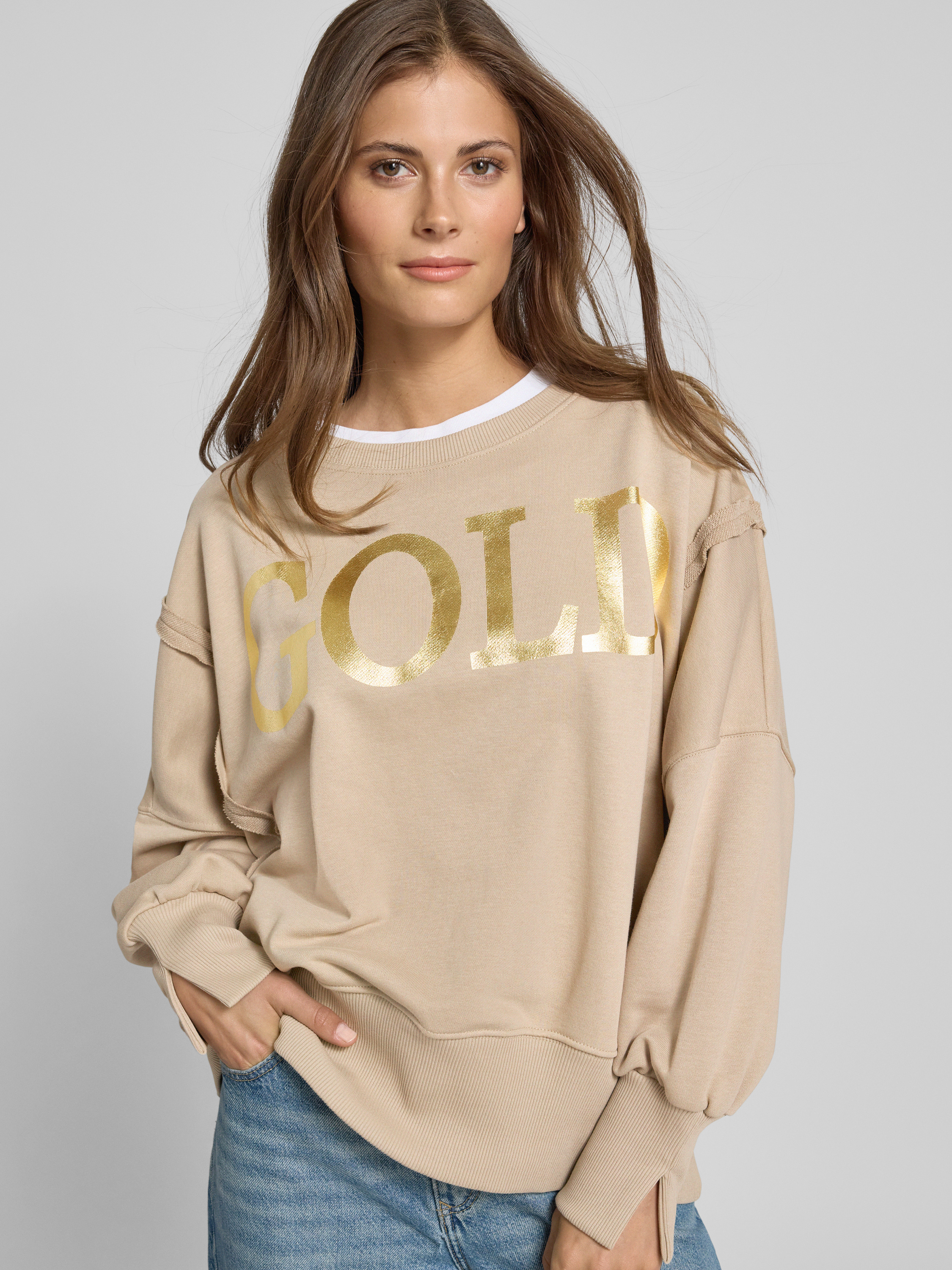 miss goodlifeOversized Sweatshirt aus reiner Baumwolle mit Statement-Print in sand