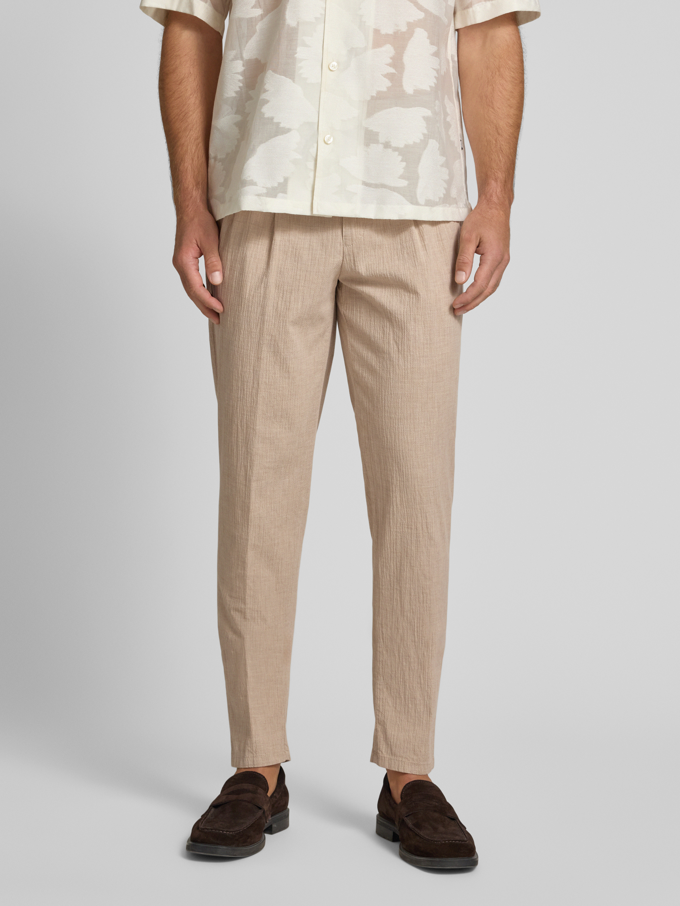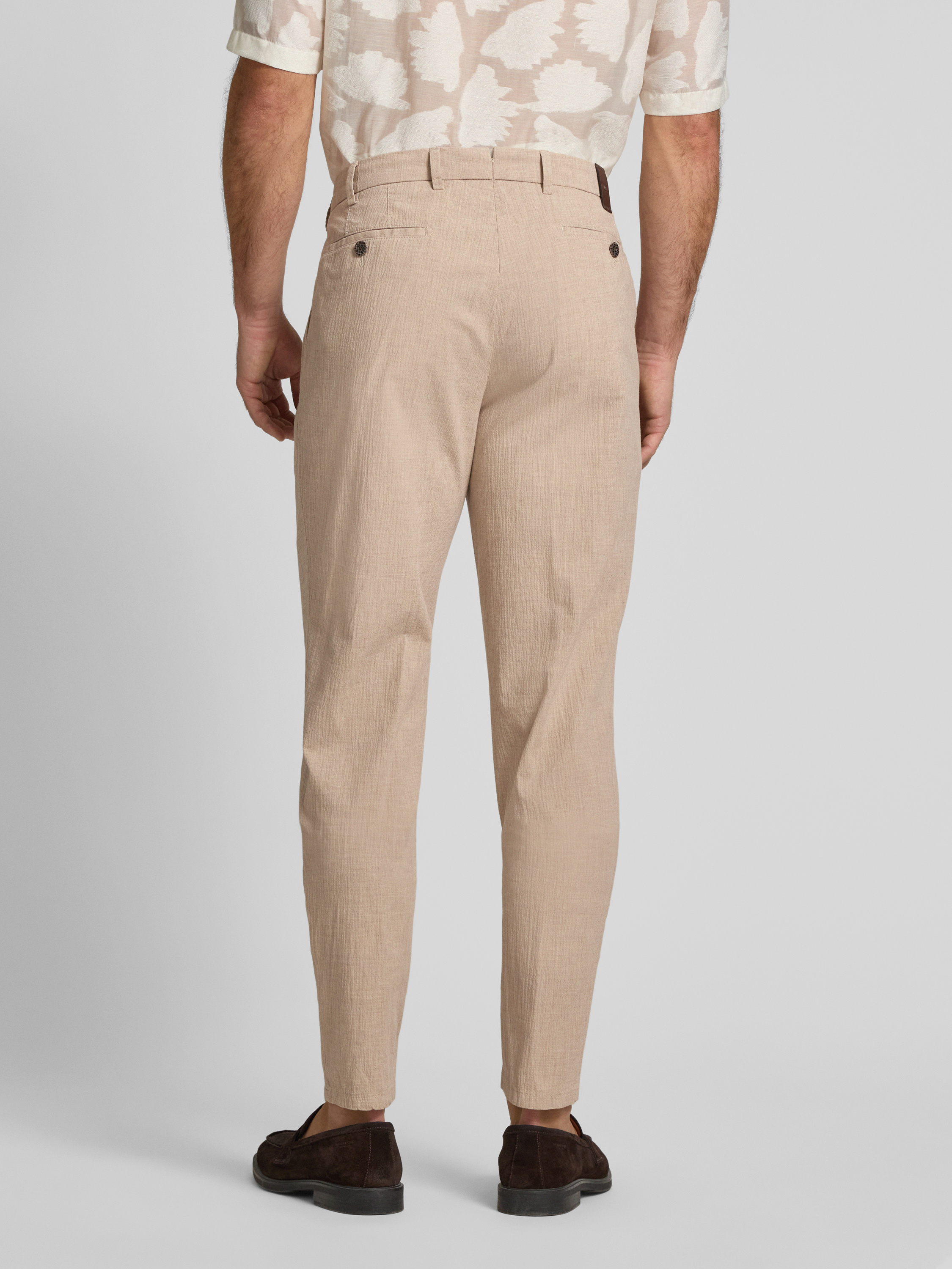 Die Herren Stoffhose von MMX, Modell 'Pardus', besticht durch ihren geraden Schnitt und das elegante Strukturmuster. Der Baumwoll-Elasthan-Mix sorgt für angenehmen Tragekomfort und Flexibilität. Französische Eingrifftaschen verleihen der Hose eine klassische Note, ideal für einen stilvollen Auftritt.