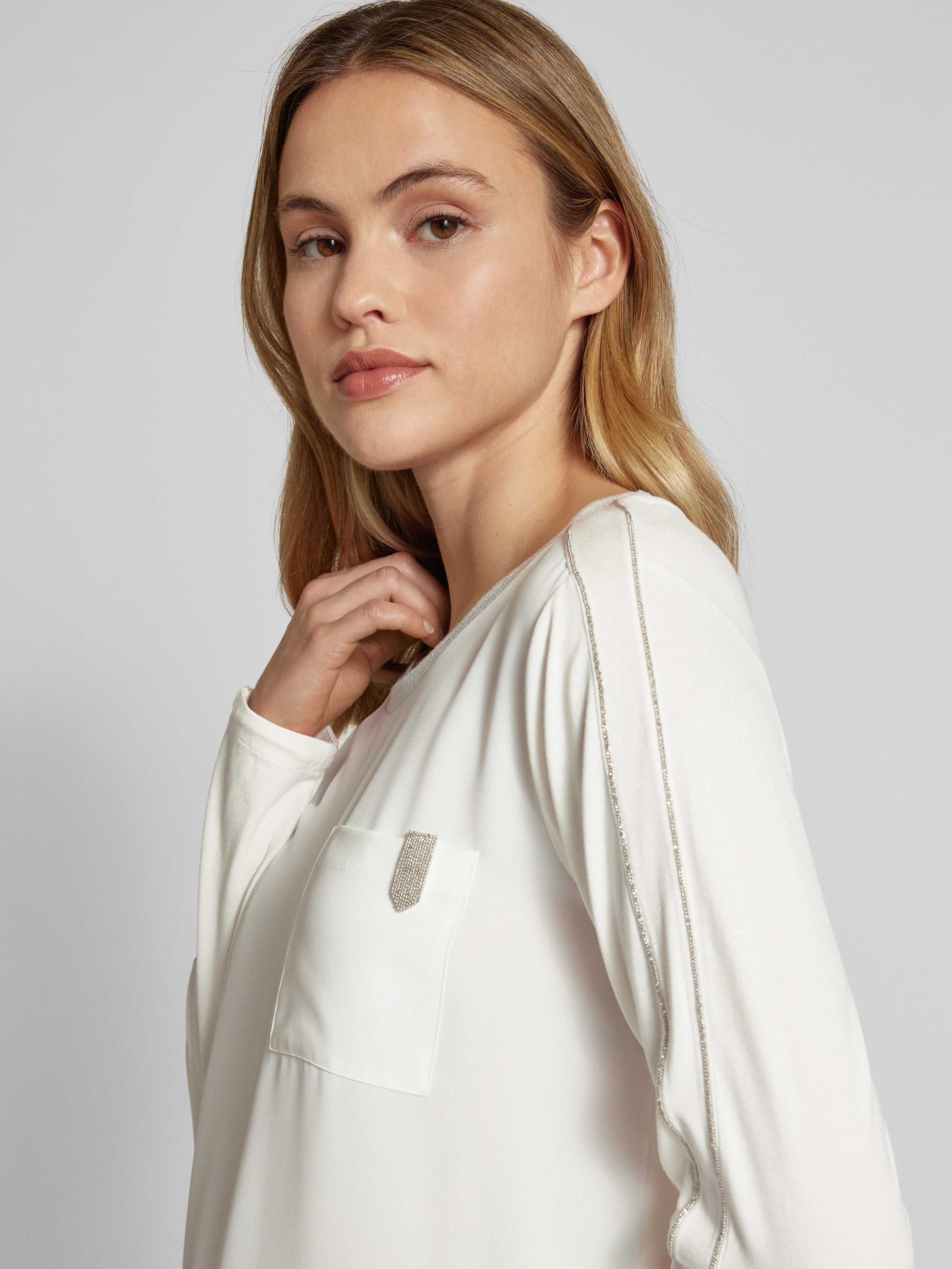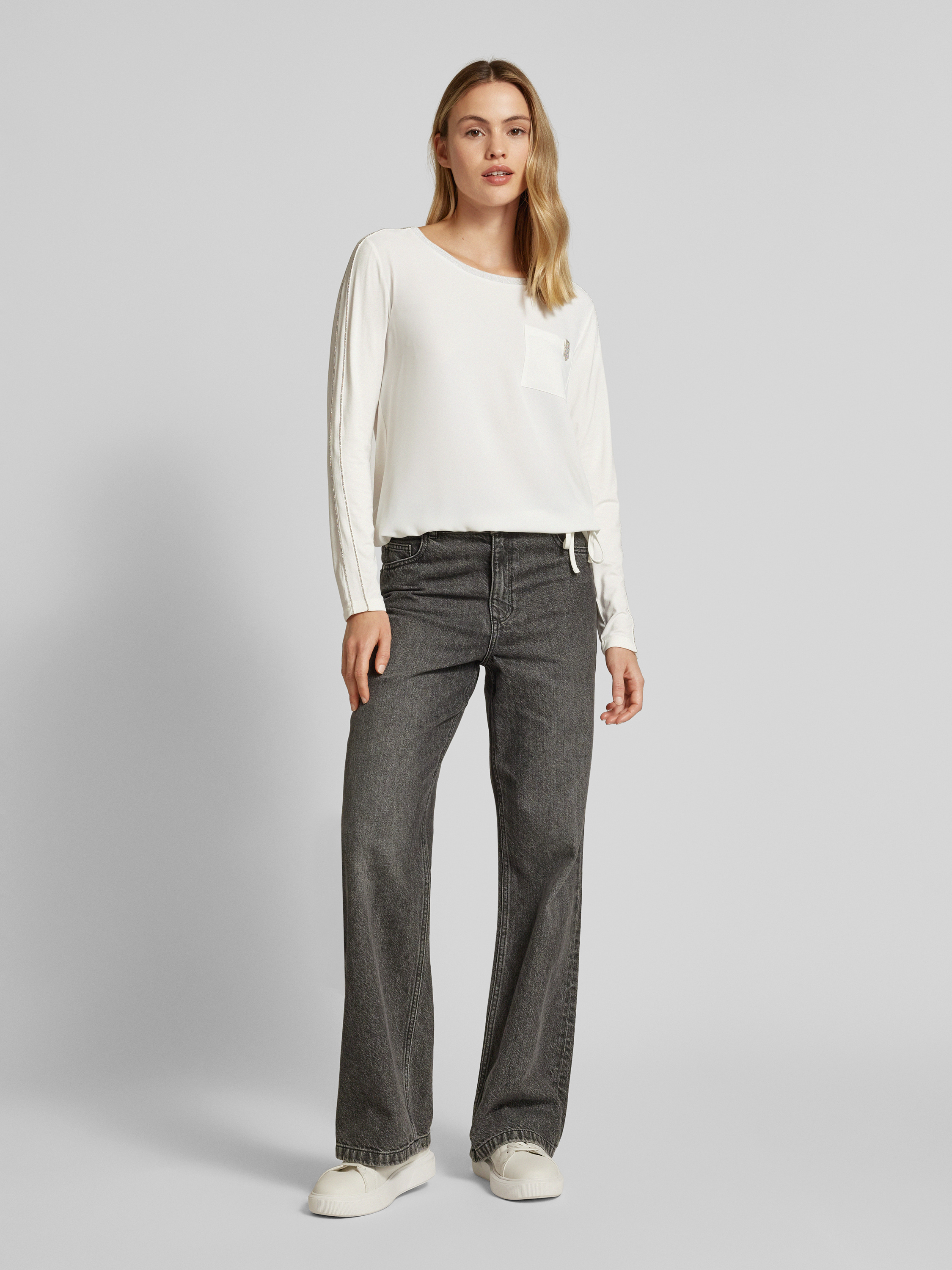 Das Blusenshirt von monari präsentiert sich in einem lockeren Schnitt und sorgt für ein komfortables Tragegefühl. Der Stehkragen verleiht dem Design eine moderne Note, während die Brusttasche praktische Akzente setzt. Ein dezentes Label-Detail rundet das stilvolle Gesamtbild ab.