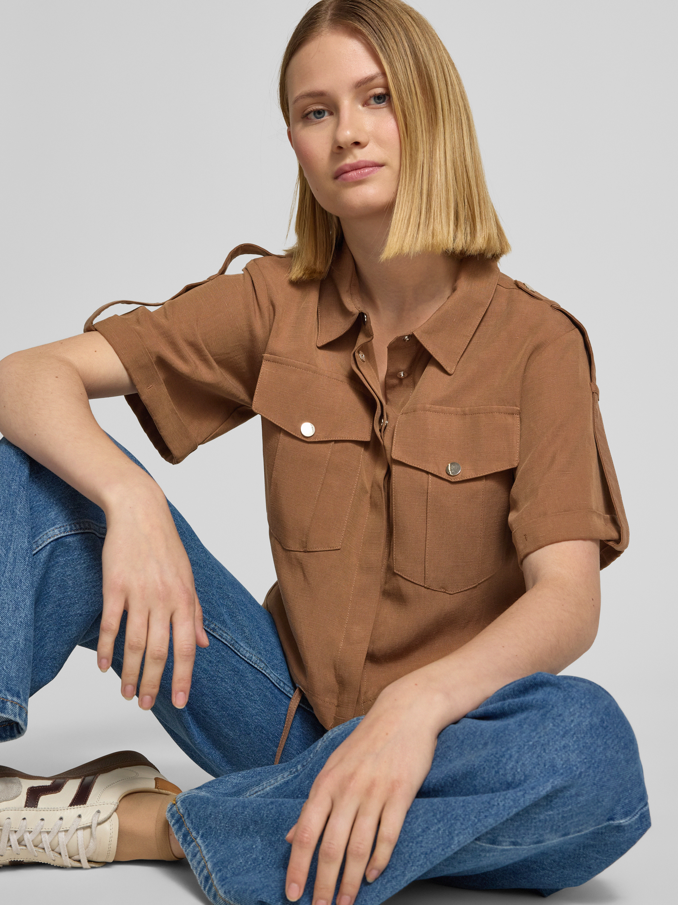 monariHemdbluse aus Lyocell-Leinen-Mix in cognac