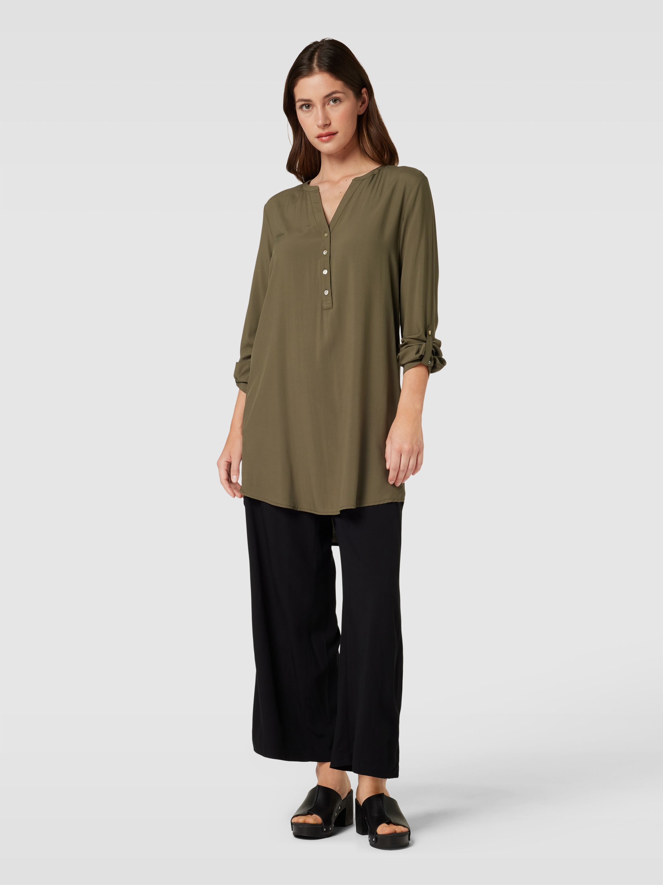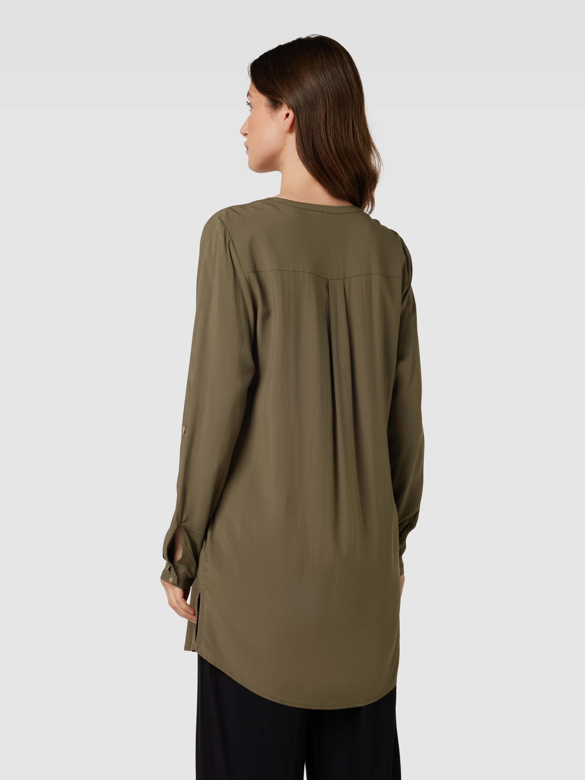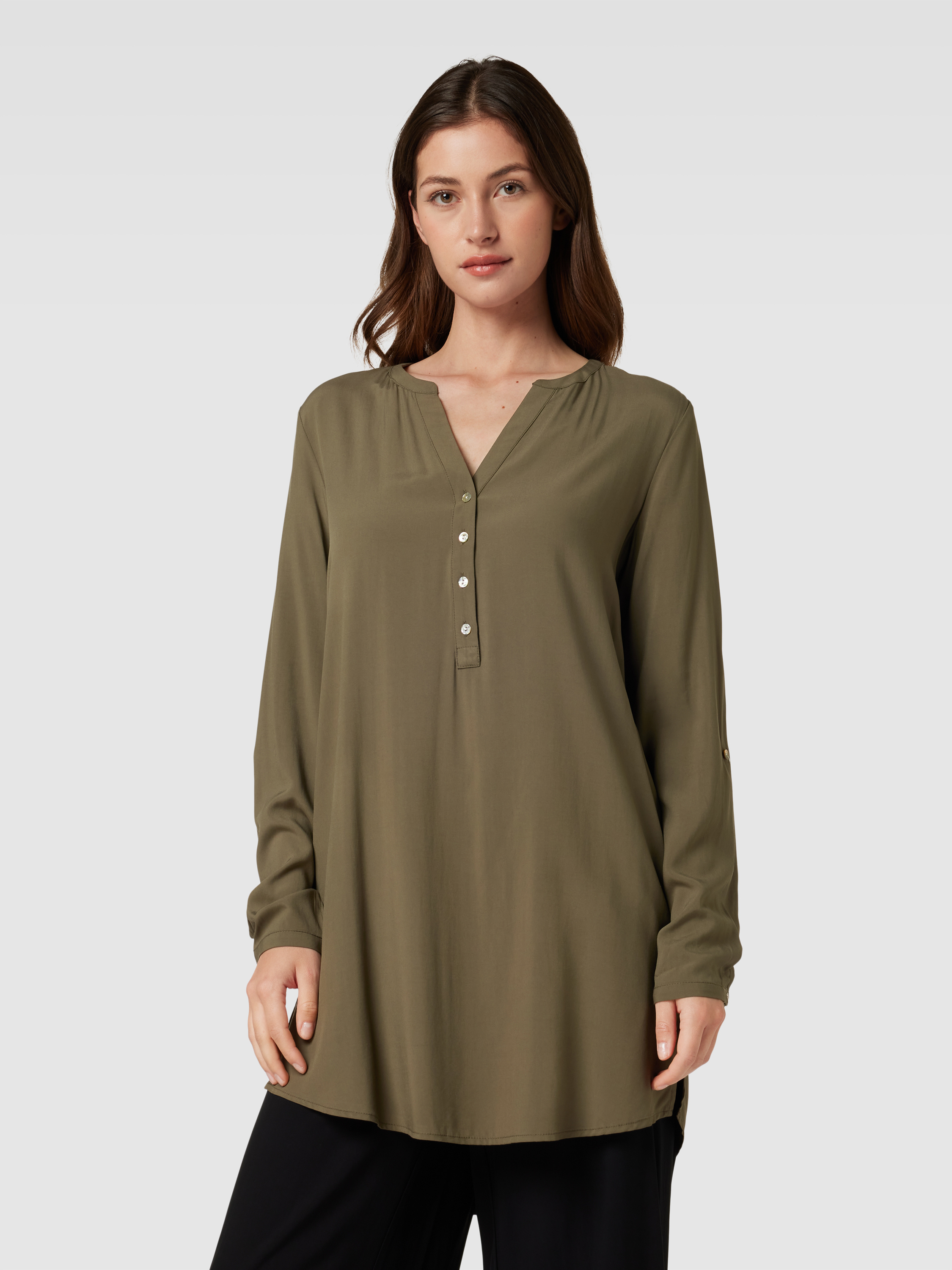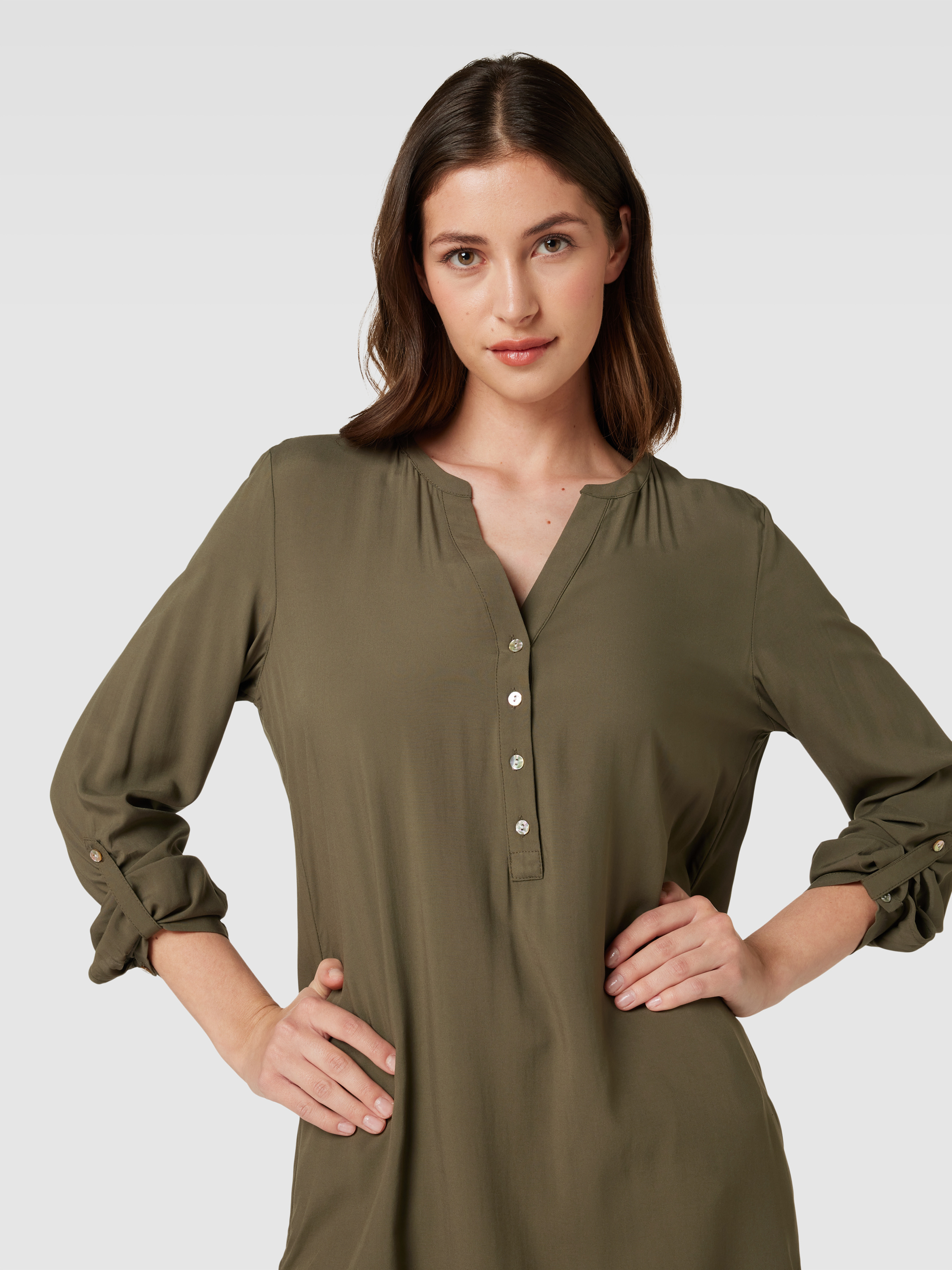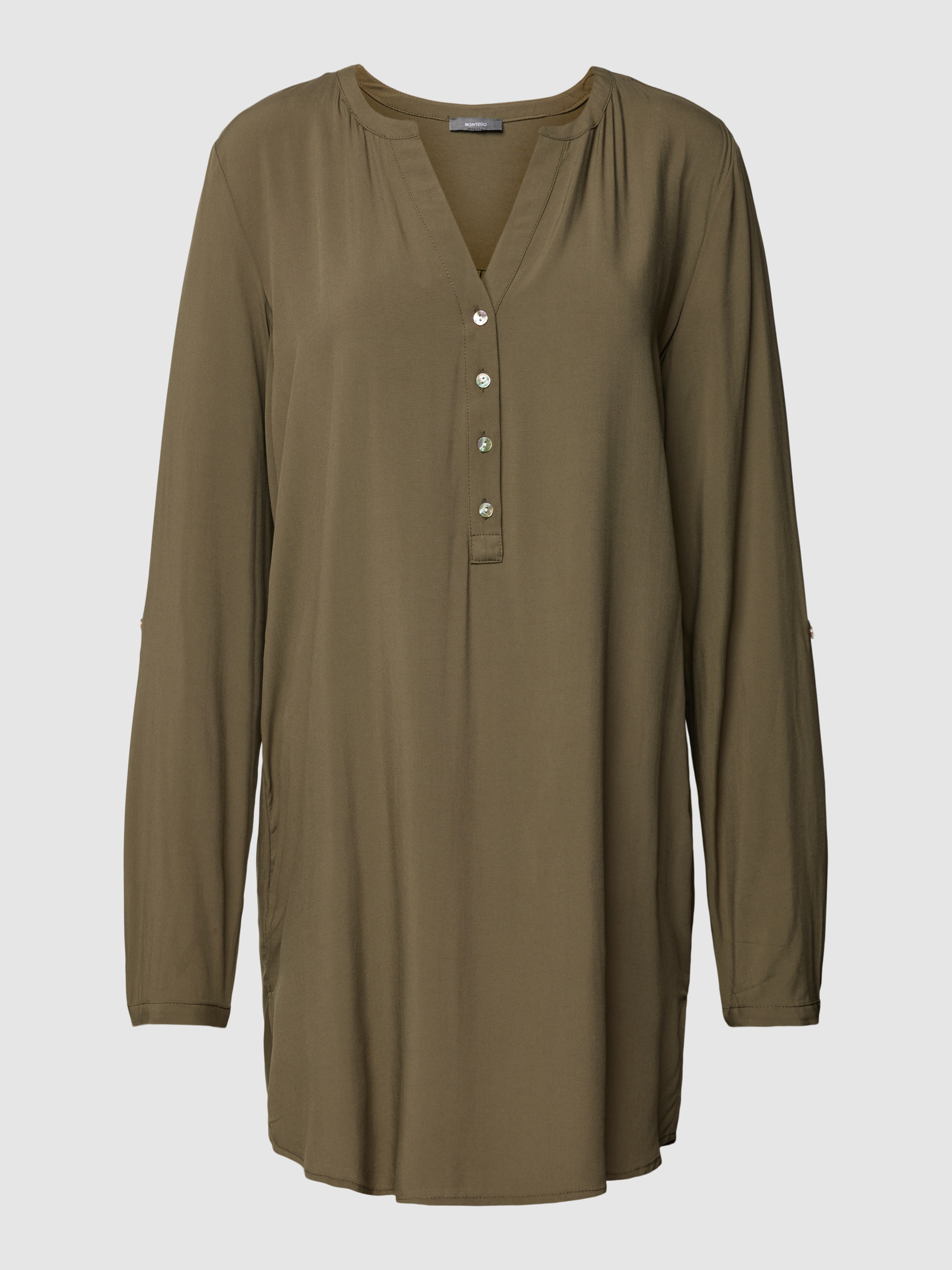 MontegoLongbluse aus reiner Viskose mit kurzer Knopfleiste in schilf