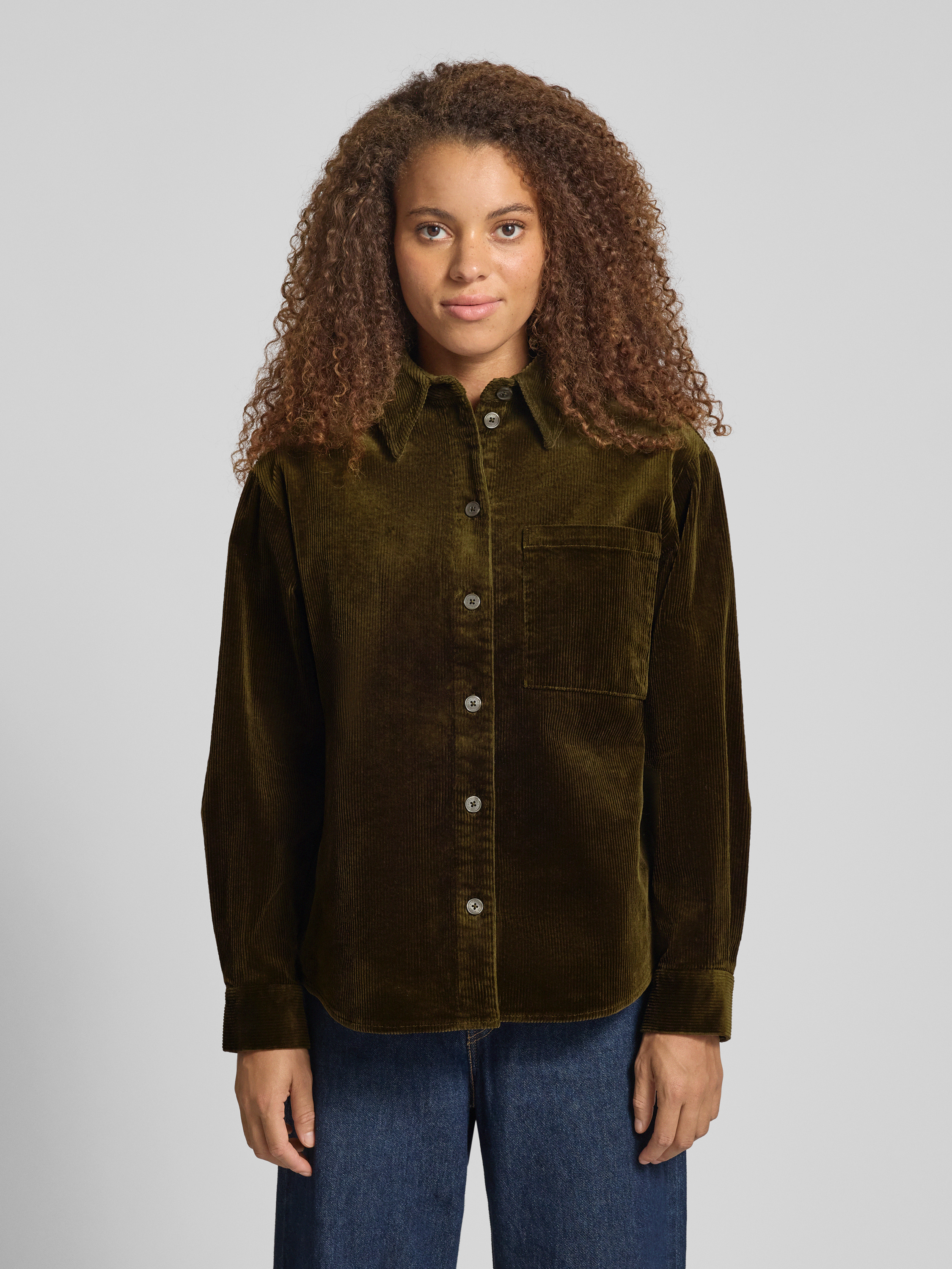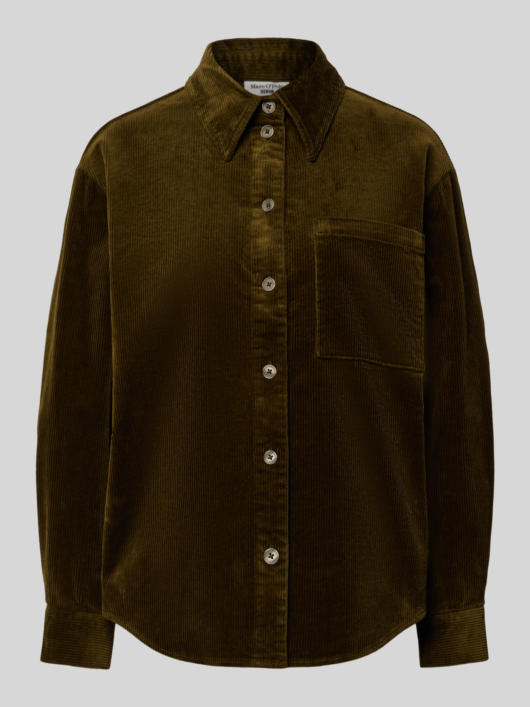 Die Langarmbluse von Marc O'Polo Denim fällt durch ihren lockeren Schnitt angenehm lässig aus und schafft damit viel Bewegungsfreiheit im Alltag. Ihr unifarbenes Cordmaterial verleiht Struktur, während der klassische Kentkragen und eine dezente Brusttasche den Look abrunden. Dank abgerundetem Saum ergibt sich ein vielseitig kombinierbares Kleidungsstück, das sich unkompliziert in verschiedene Outfits integrieren lässt.