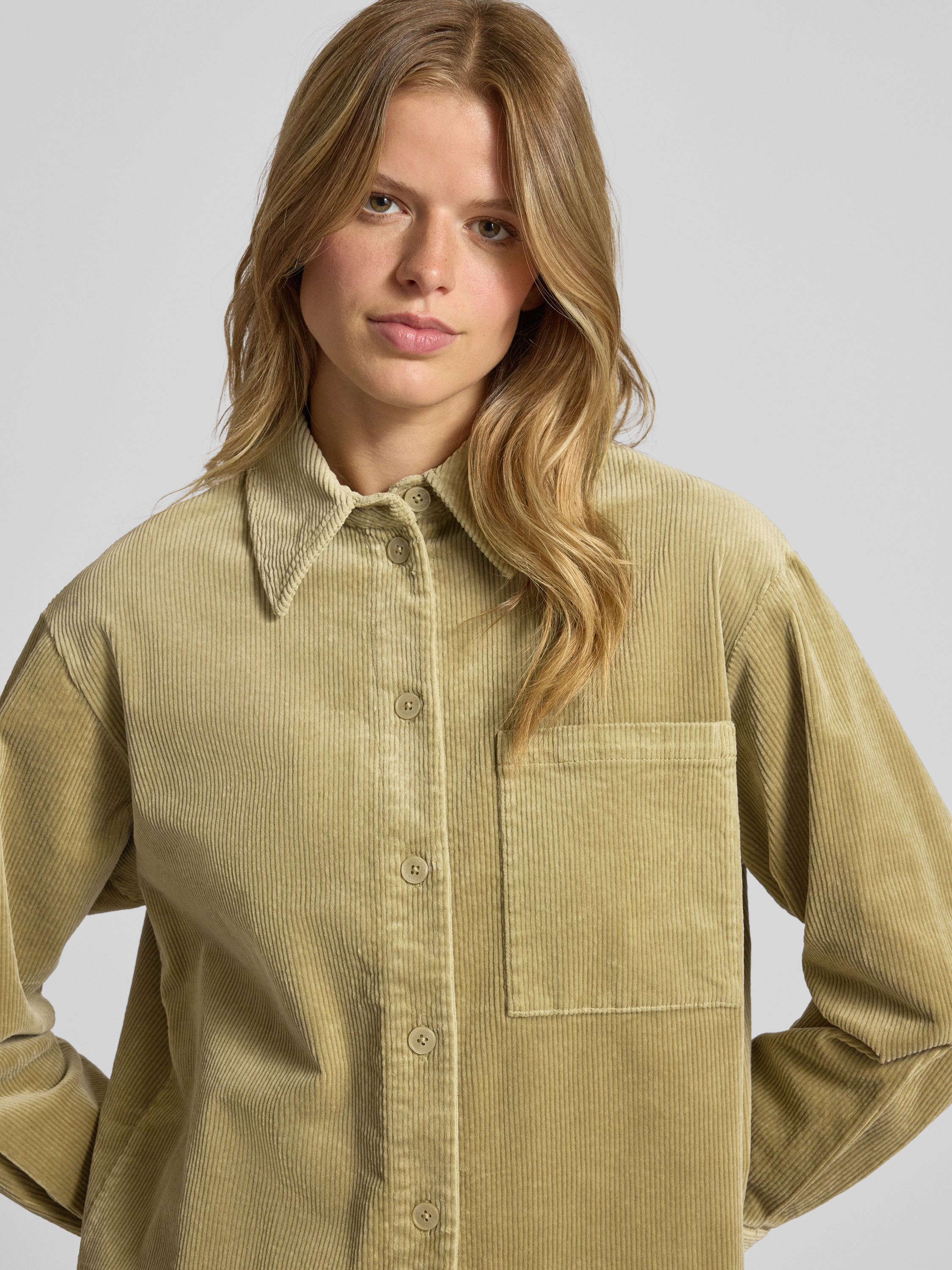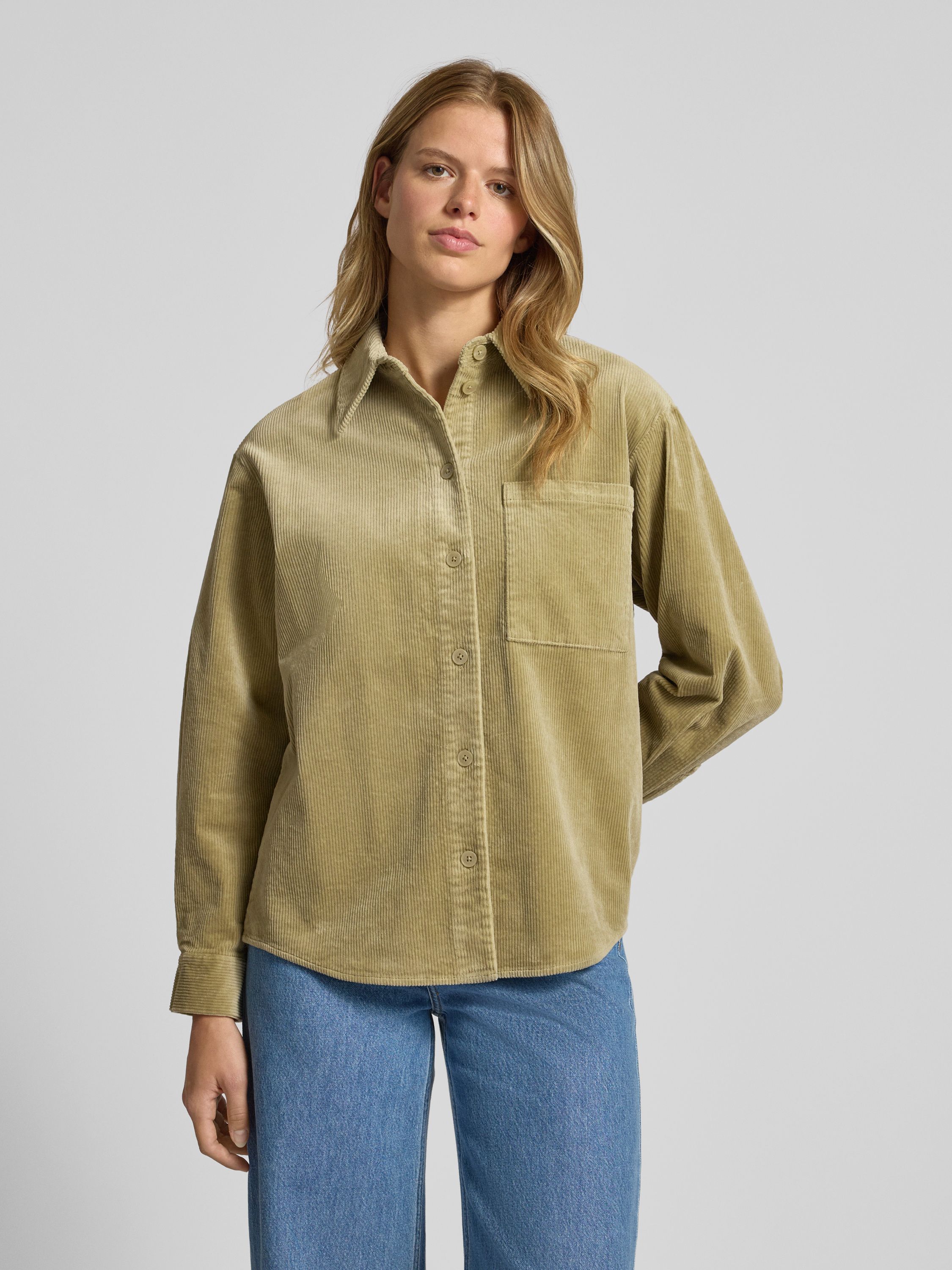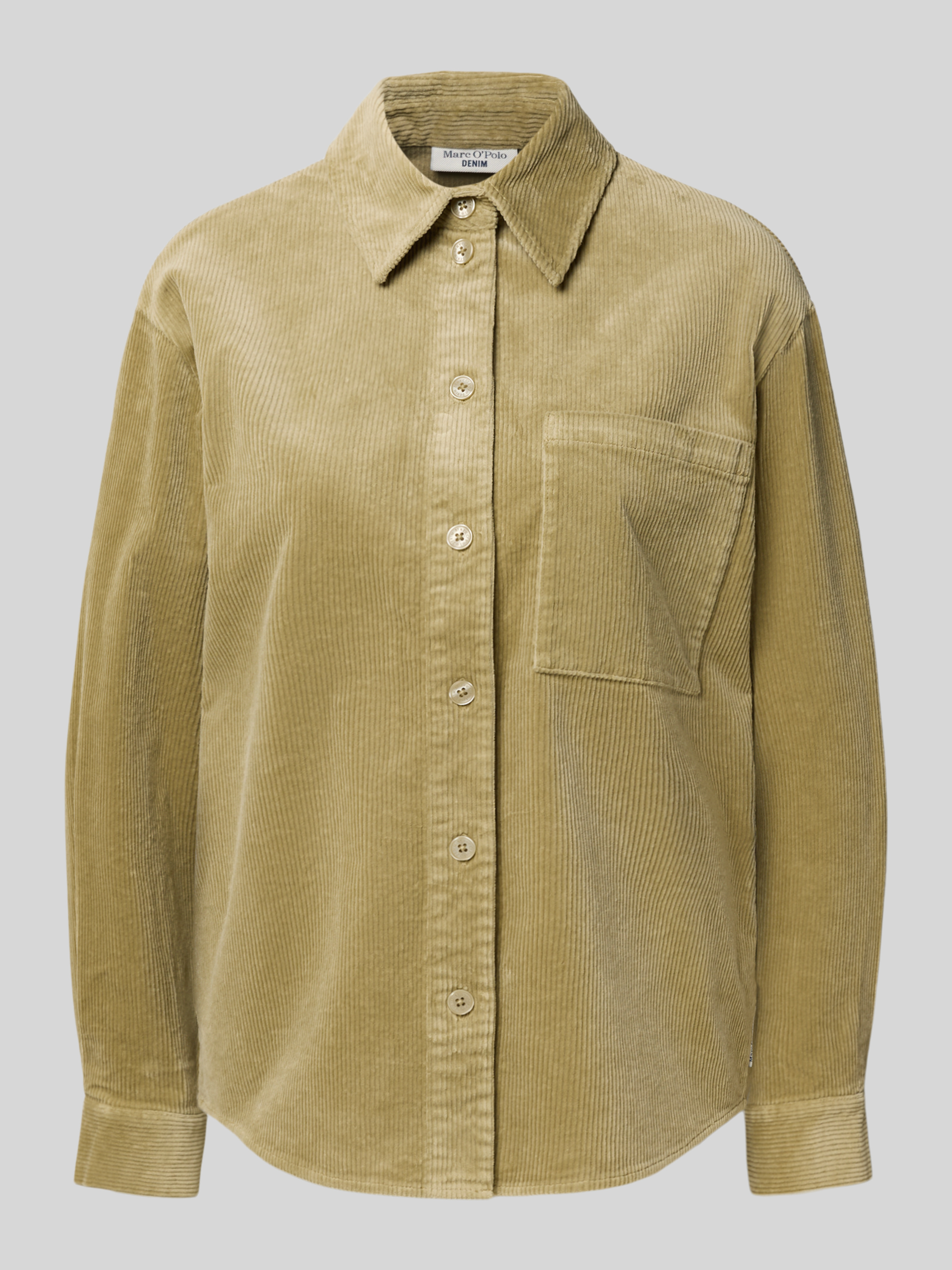 Die Langarmbluse von Marc O'Polo Denim fällt durch ihren lockeren Schnitt angenehm lässig aus und schafft damit viel Bewegungsfreiheit im Alltag. Ihr unifarbenes Cordmaterial verleiht Struktur, während der klassische Kentkragen und eine dezente Brusttasche den Look abrunden. Dank abgerundetem Saum ergibt sich ein vielseitig kombinierbares Kleidungsstück, das sich unkompliziert in verschiedene Outfits integrieren lässt.