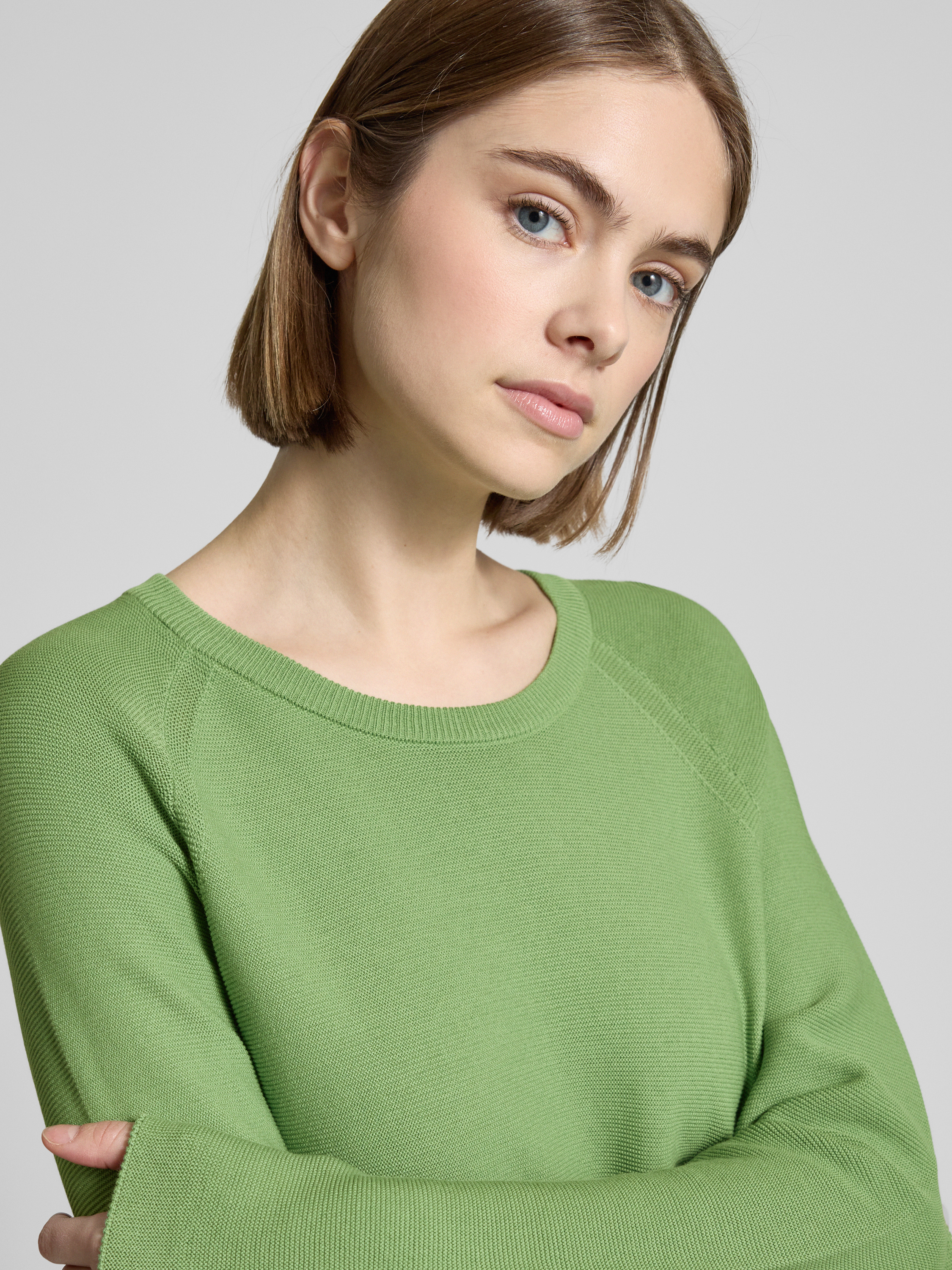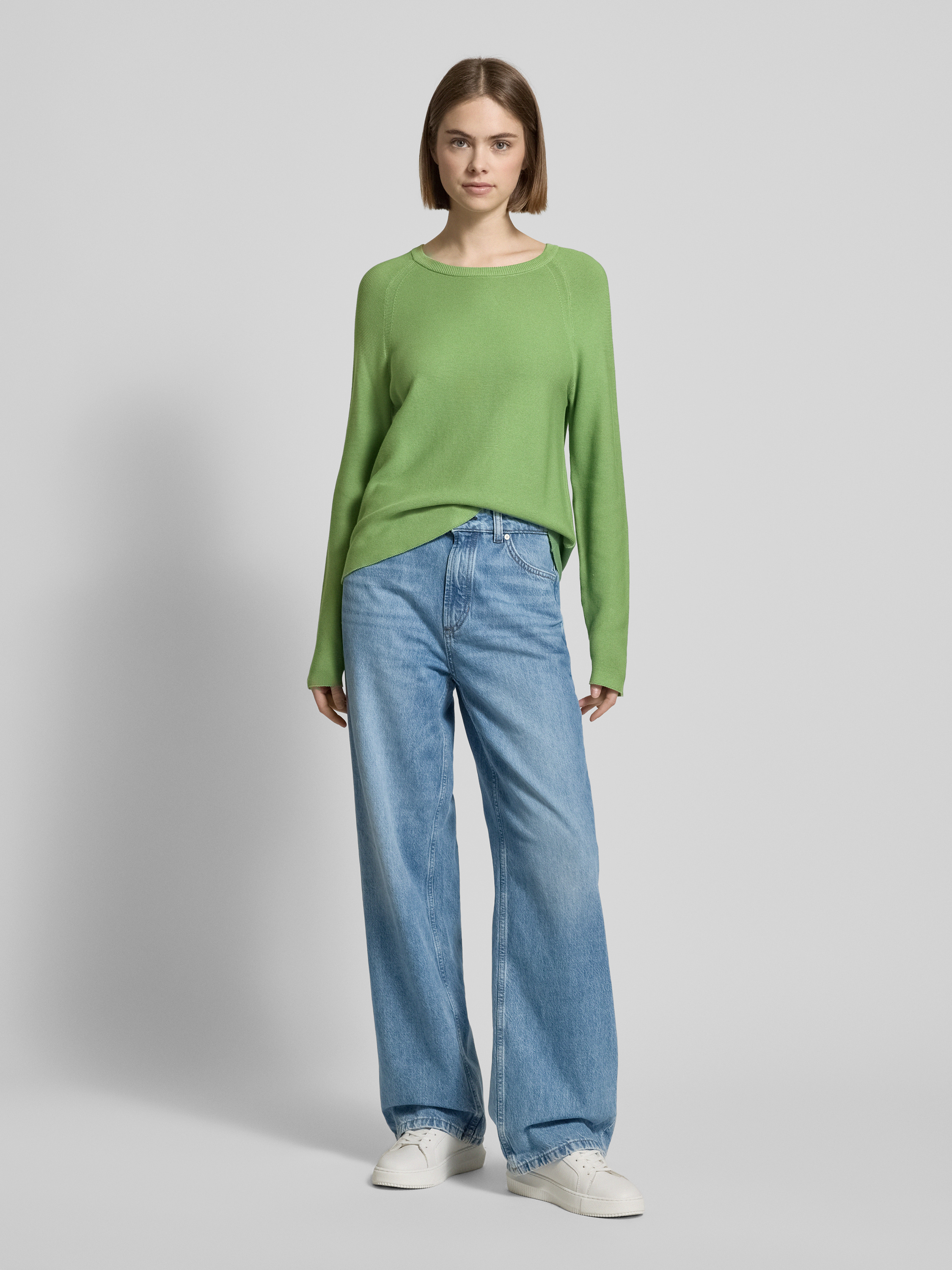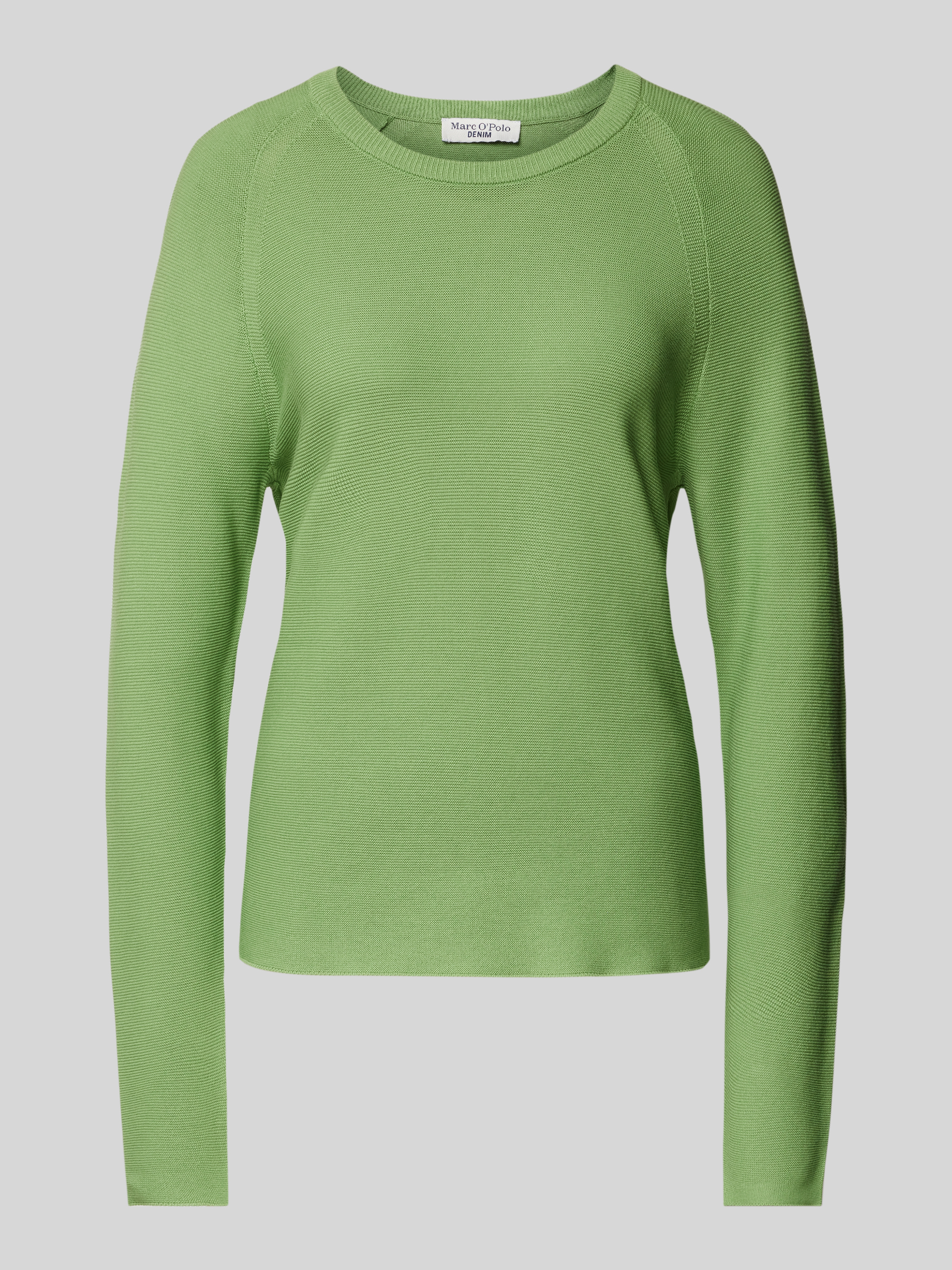 Marc O'Polo DenimStrickpullover mit geripptem Rundhalsausschnitt in hellgruen