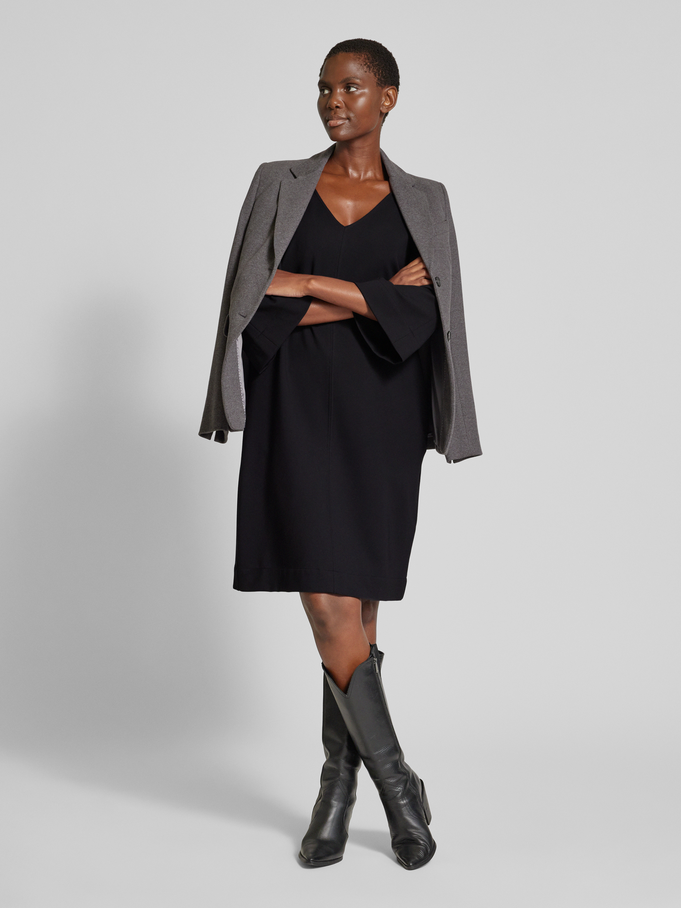 MOREKnielanges Kleid mit abgerundetem V-Ausschnitt in black