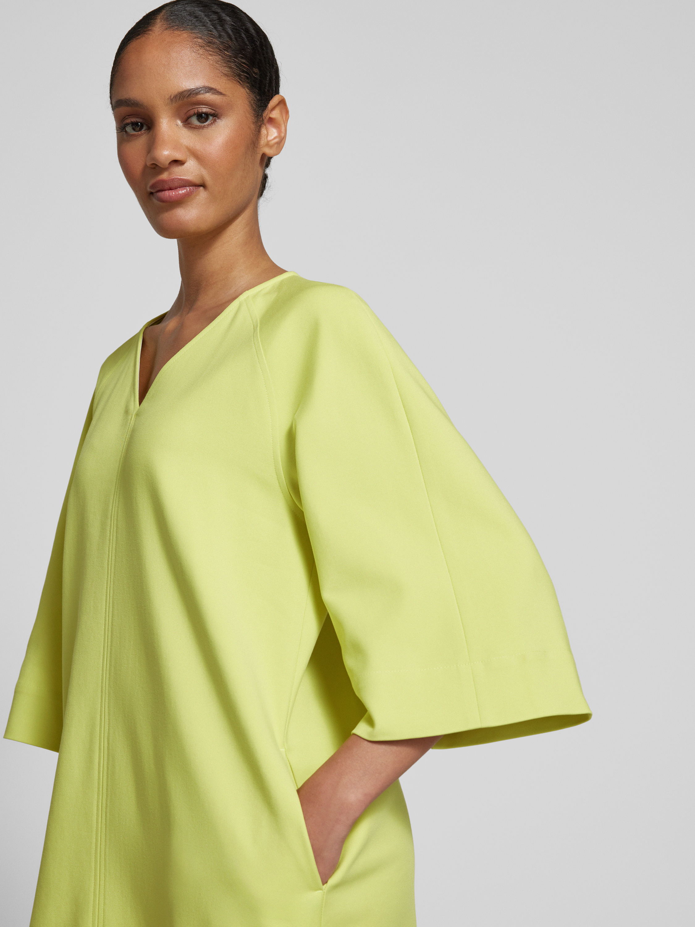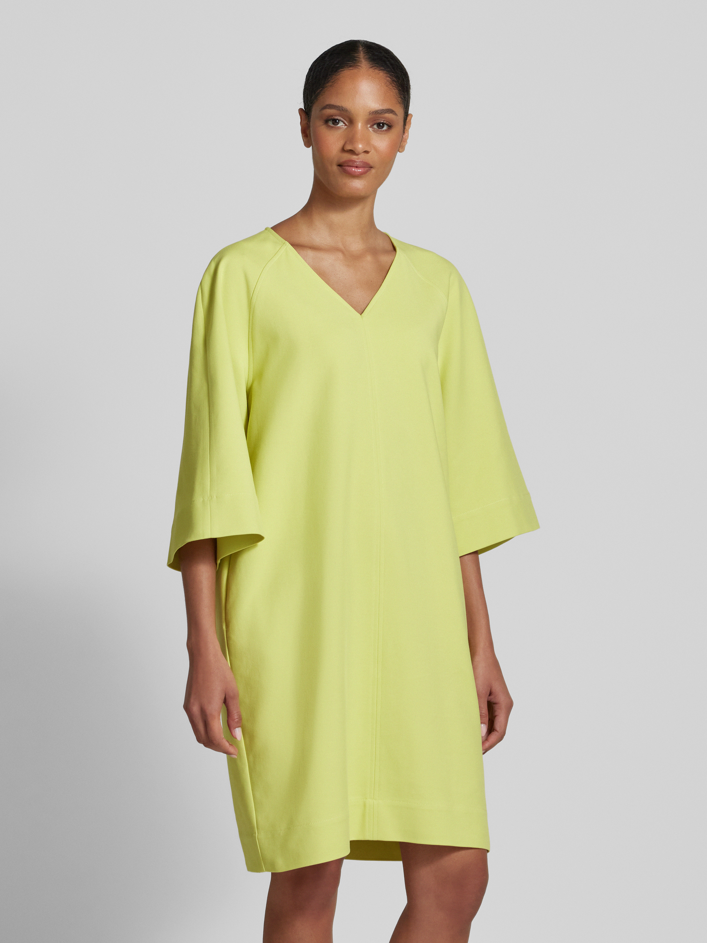 Das knielange Kleid mit V-Ausschnitt von MORE vereint Komfort und Stil durch seinen lockeren Schnitt und den Baumwoll-Mix mit Stretch-Anteil. Die knielange Silhouette und die halblangen Ärmel ermöglichen vielseitige Kombinationen, während der V-Ausschnitt eine dezente Eleganz verleiht. Ideal für lässige Anlässe.