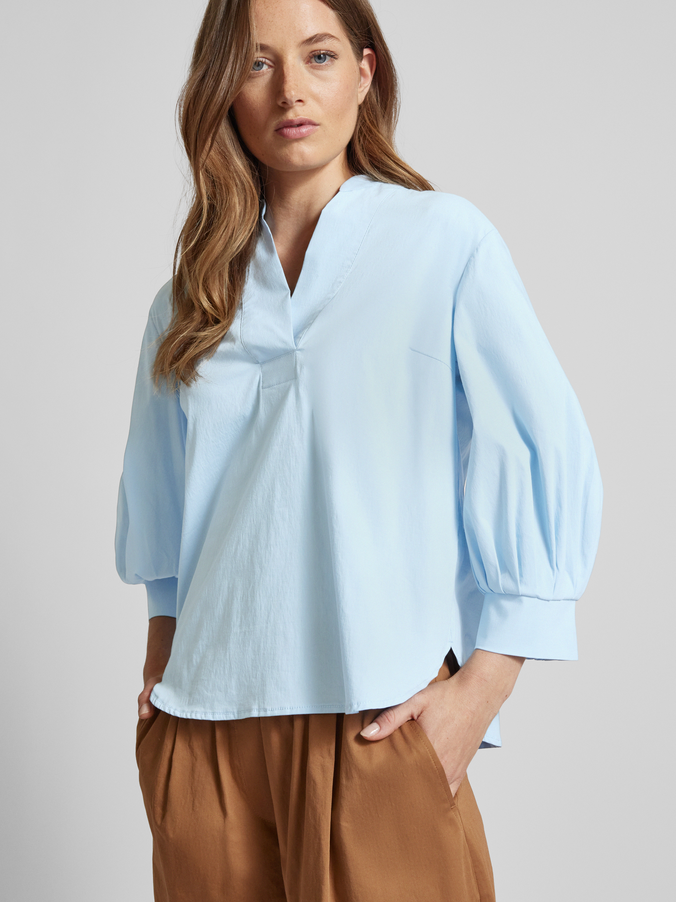 Die Damen Bluse von MORE & MORE vereint eine lockere Passform mit einem stilvollen Stehkragen und einem eleganten V-Ausschnitt. Der Baumwoll-Mix mit Stretch-Anteil sorgt für angenehmen Tragekomfort und Bewegungsfreiheit. Ideal für vielseitige Kombinationen und einen lässigen, dennoch gepflegten Look.