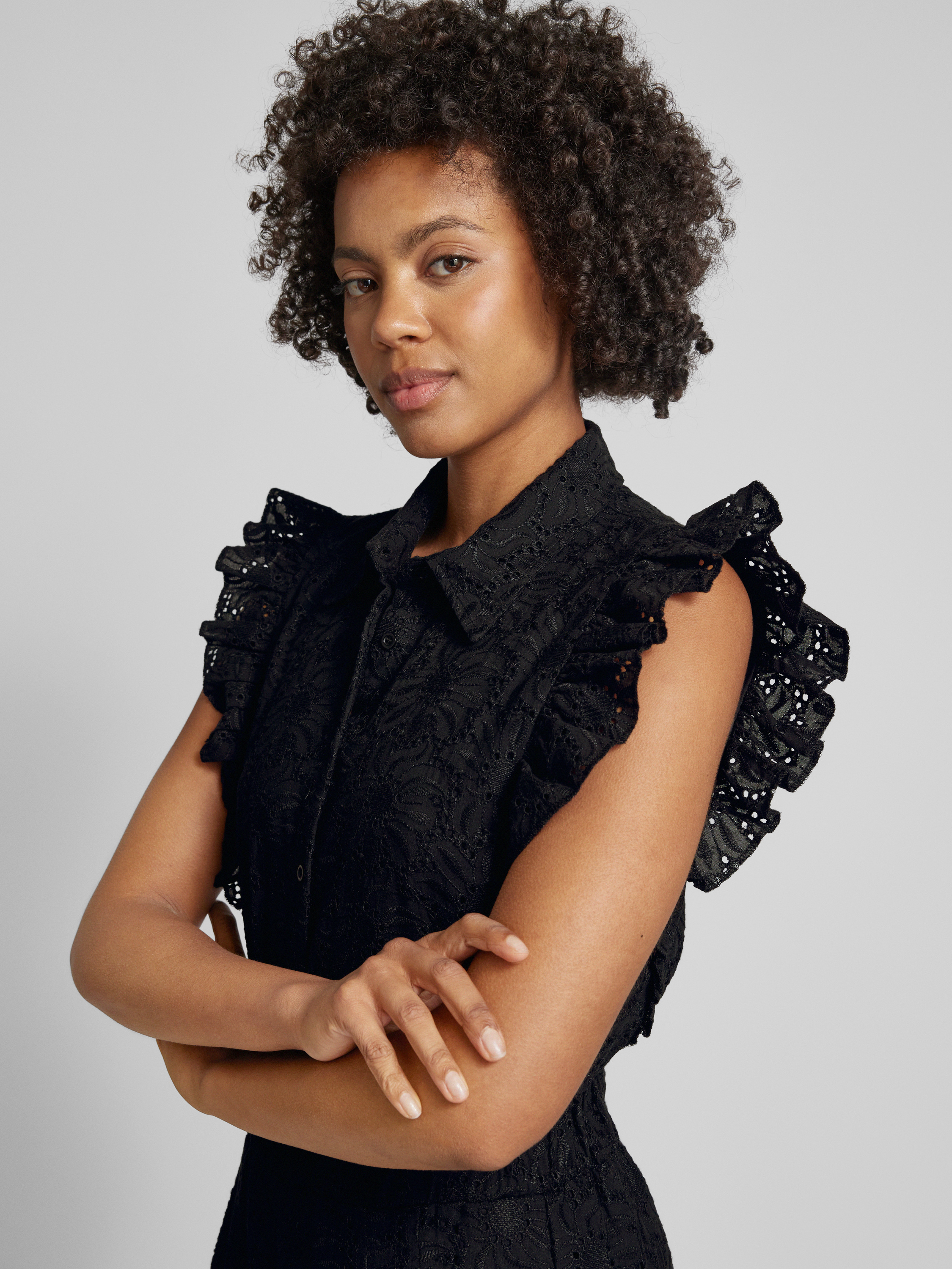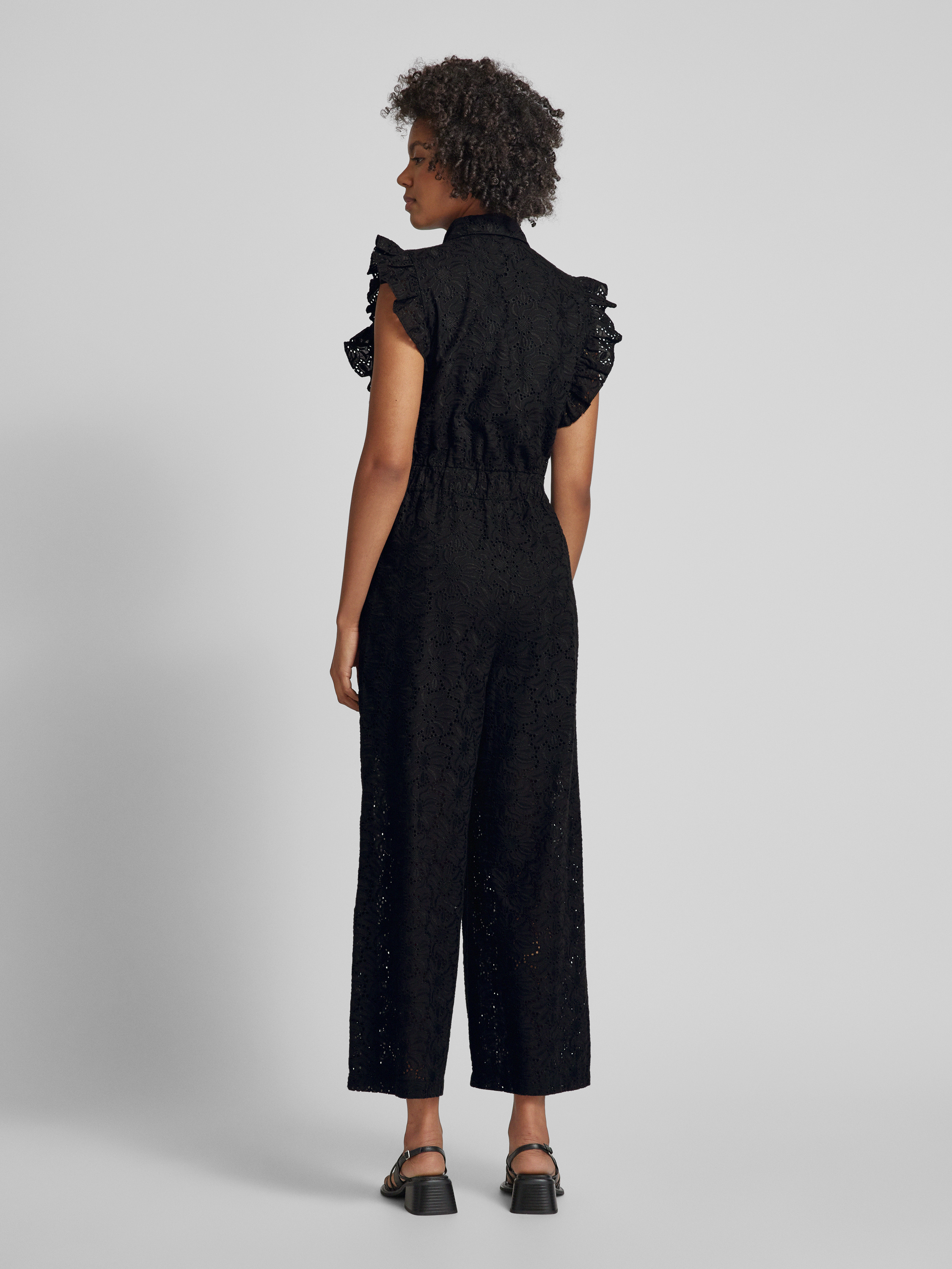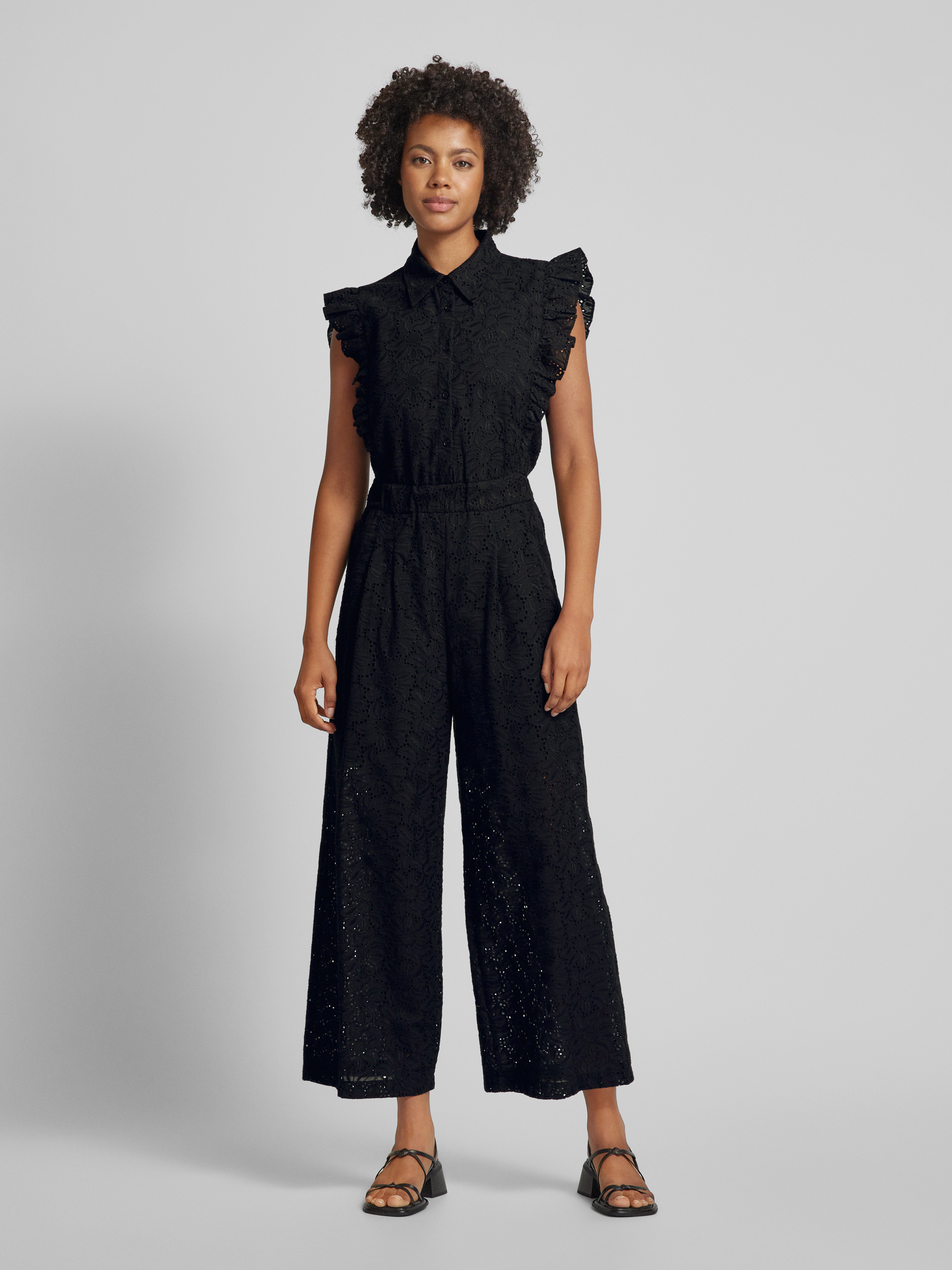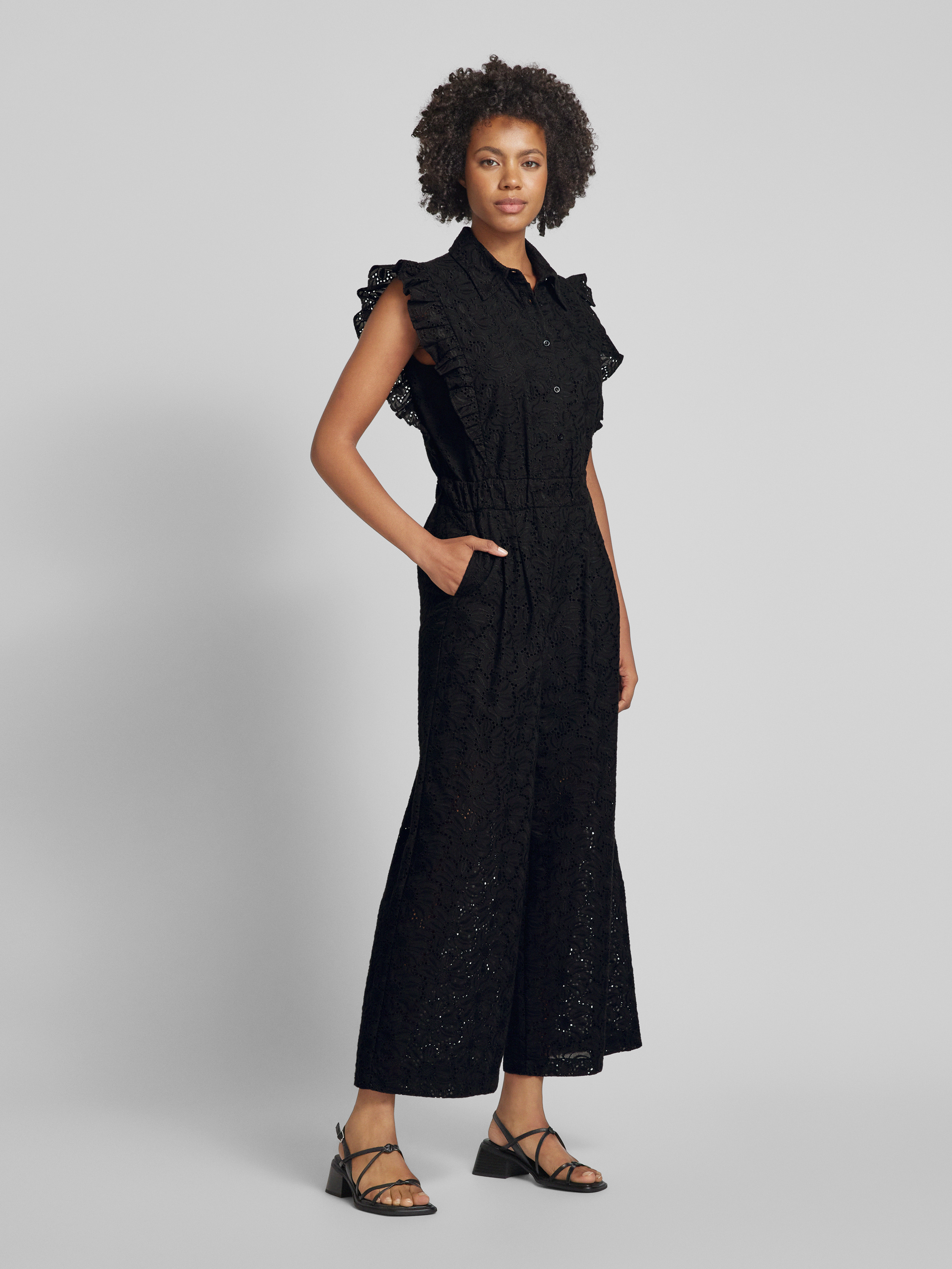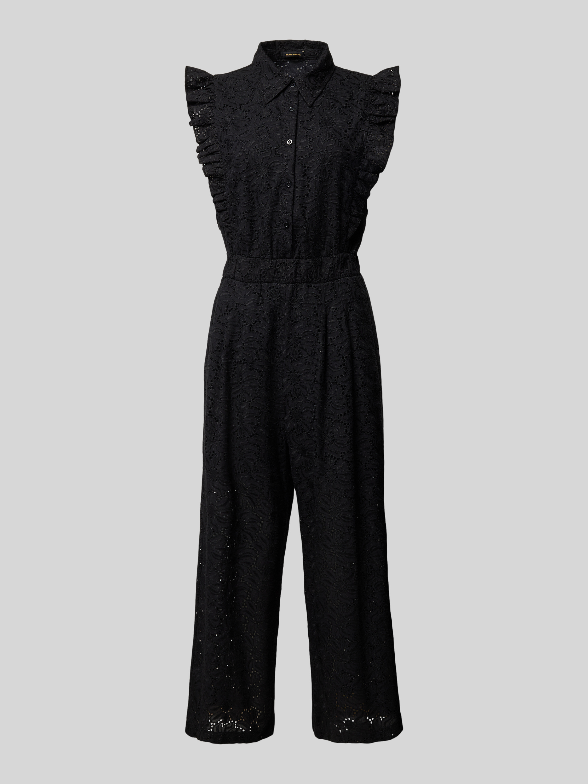Der Jumpsuit von MORE & MORE zeichnet sich durch seine reine Baumwolle und den taillierten Schnitt aus, der für eine feminine Silhouette sorgt. Der Umlegekragen und die Lochstickerei verleihen dem Outfit eine dezente Eleganz. Ideal für warme Tage, bietet er angenehmen Tragekomfort.