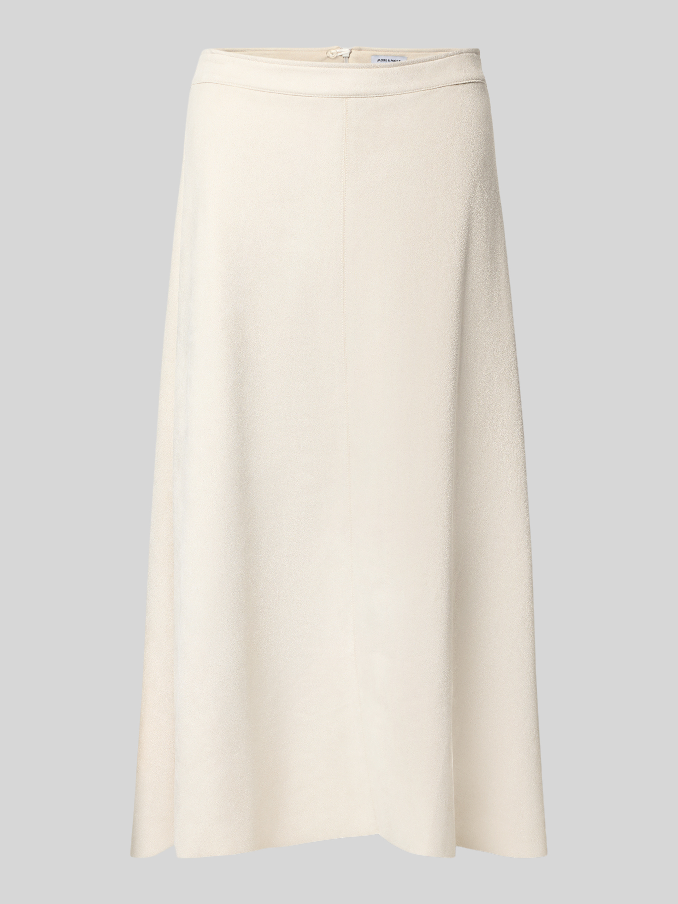 Der Midirock von More & More zeigt sich in einer leichten A-Linie und liegt angenehm durch den elastischen Material-Mix am Körper an. Dezente Ziernähte unterstreichen den modernen Charakter, während die mittlere Länge unkomplizierte Kombinationsmöglichkeiten für verschiedene Gelegenheiten eröffnet.