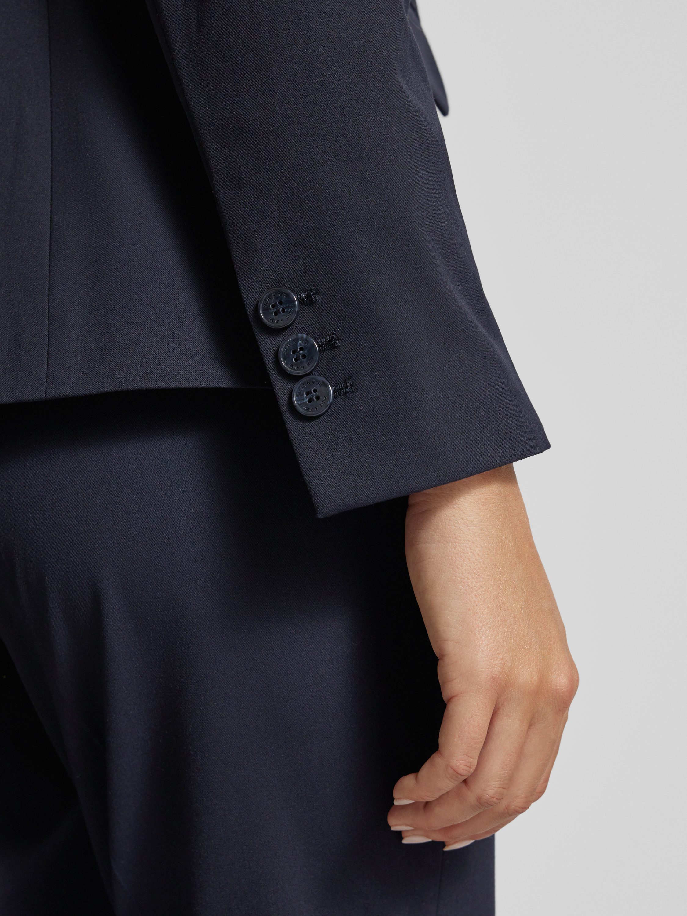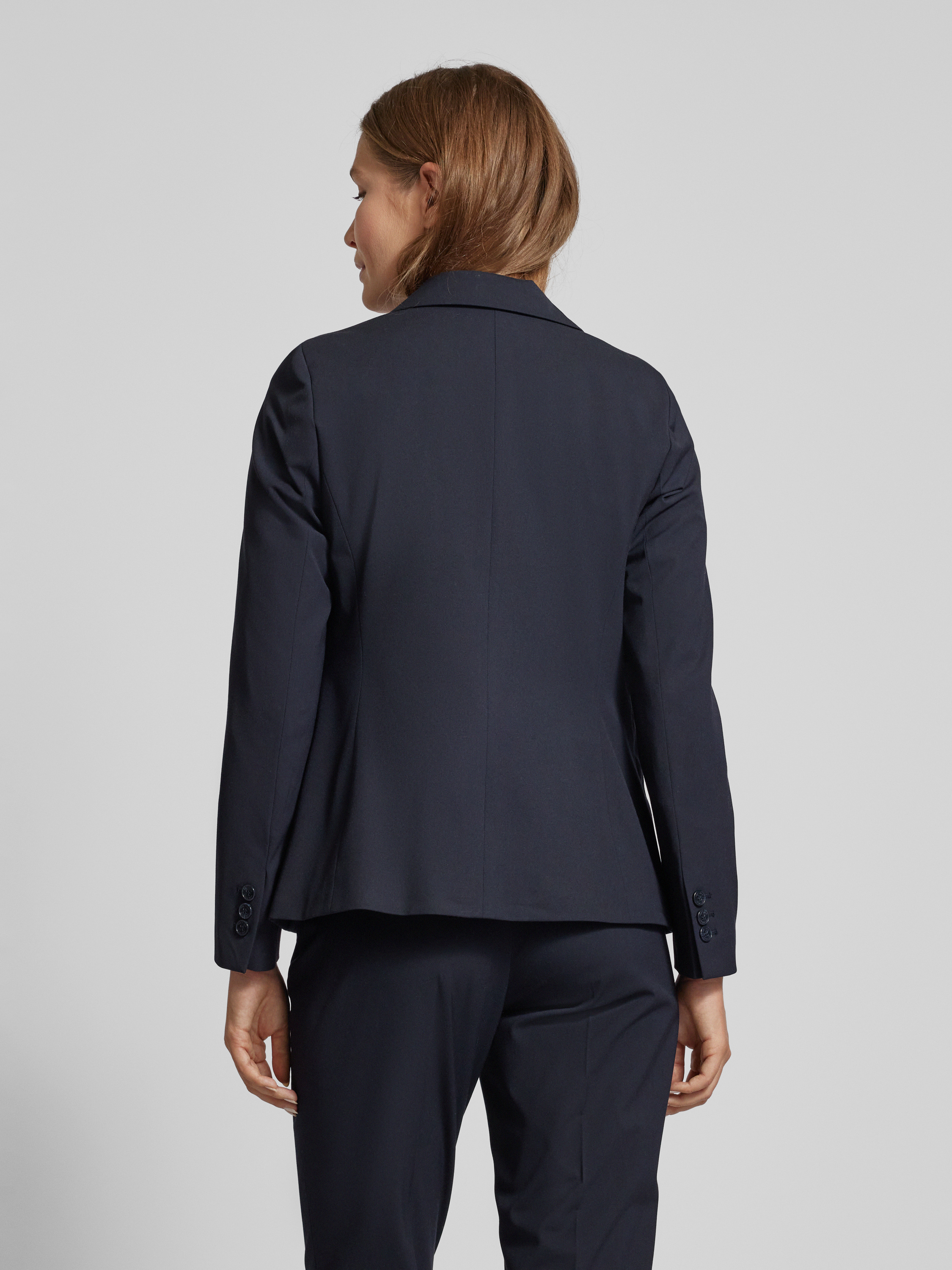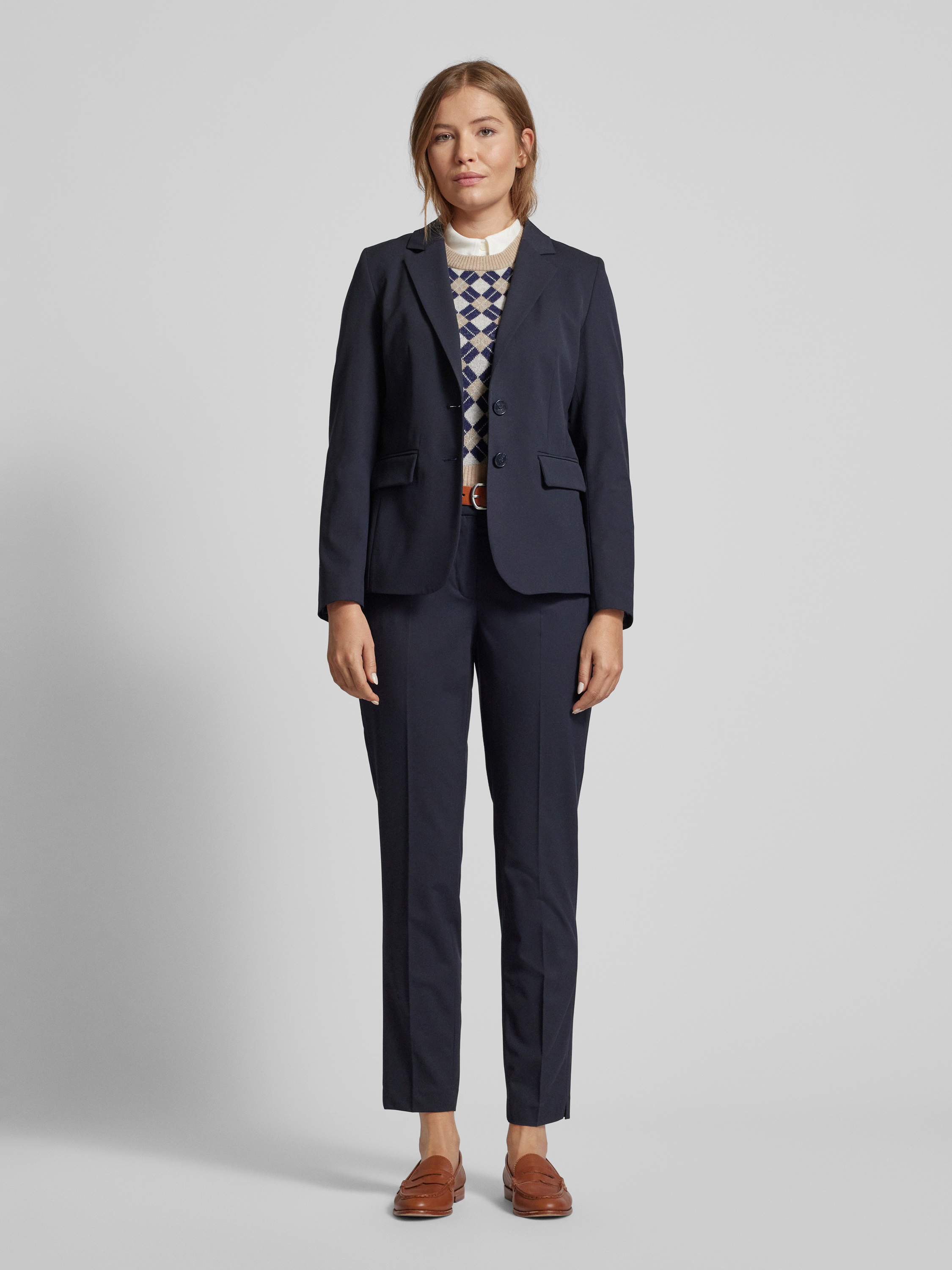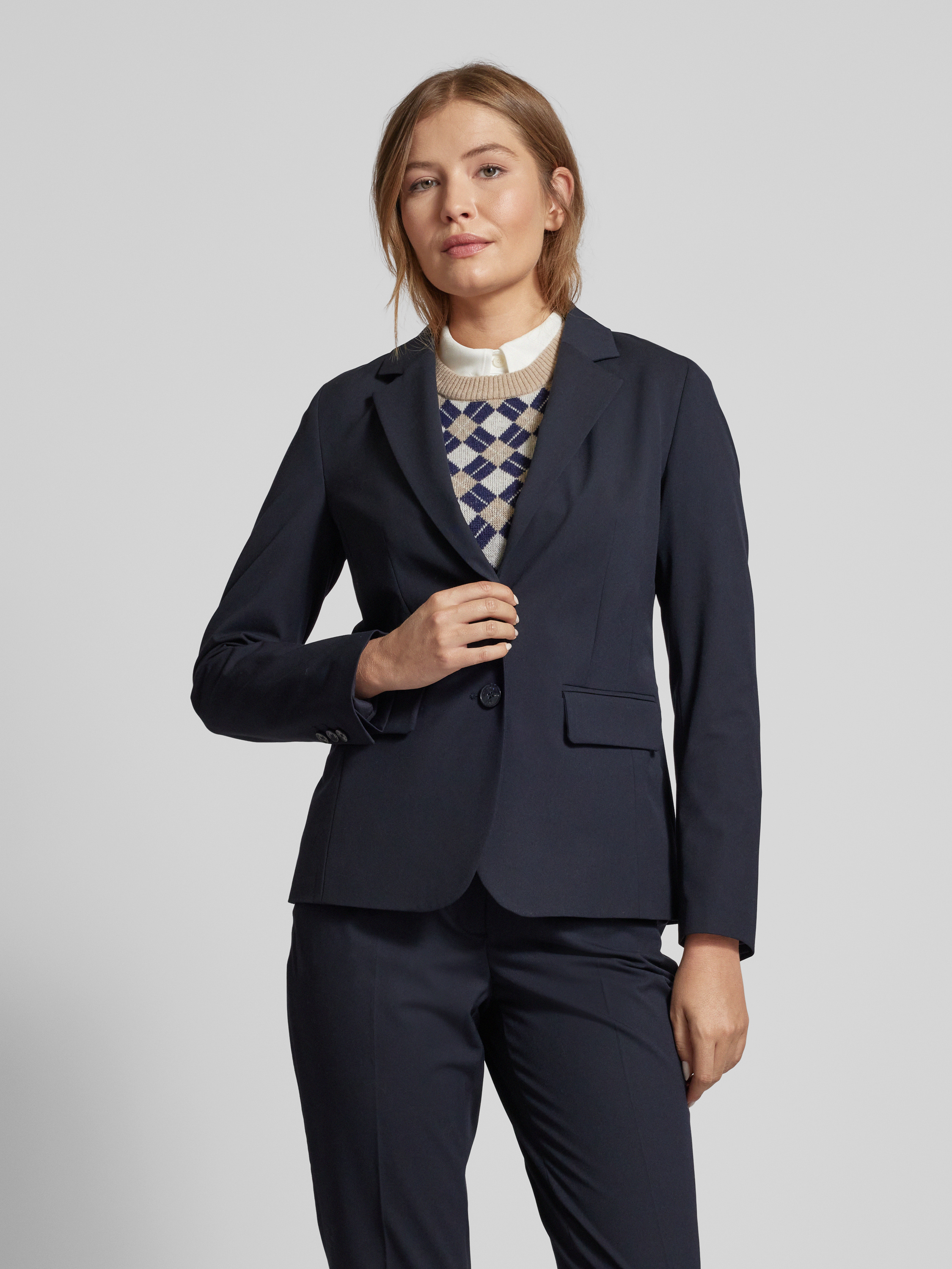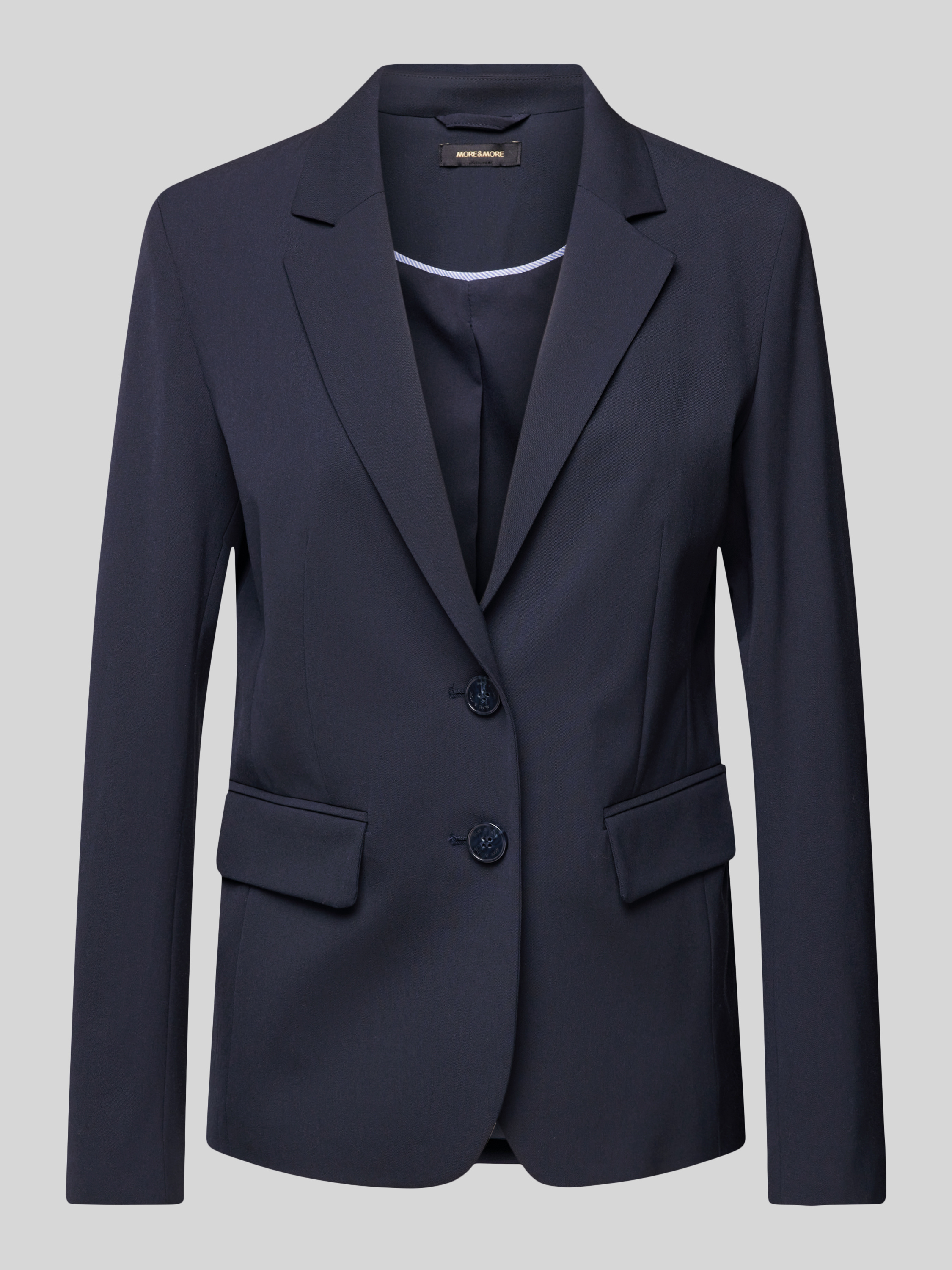 Der Regular Fit Blazer von MORE & MORE kombiniert einen eleganten Reverskragen mit einem bequemen Viskose-Mix, der durch einen Stretch-Anteil eine optimale Bewegungsfreiheit ermöglicht. Teilungsnähte sorgen für einen schmeichelhaften Sitz, während Pattentaschen praktische Funktionalität bieten. Ideal für vielseitige Anlässe.