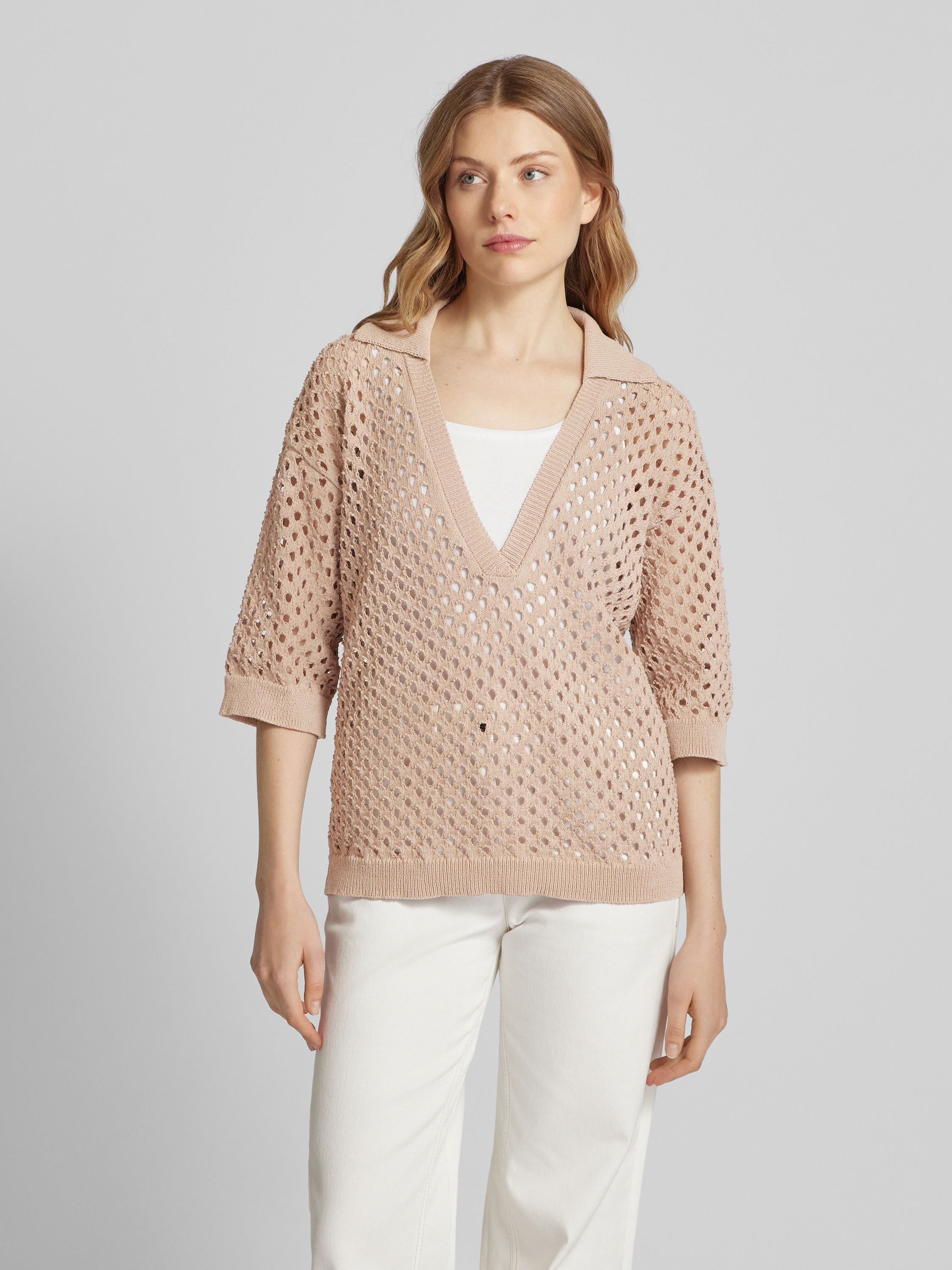 MOREStrickshirt mit Lochmuster in cognac