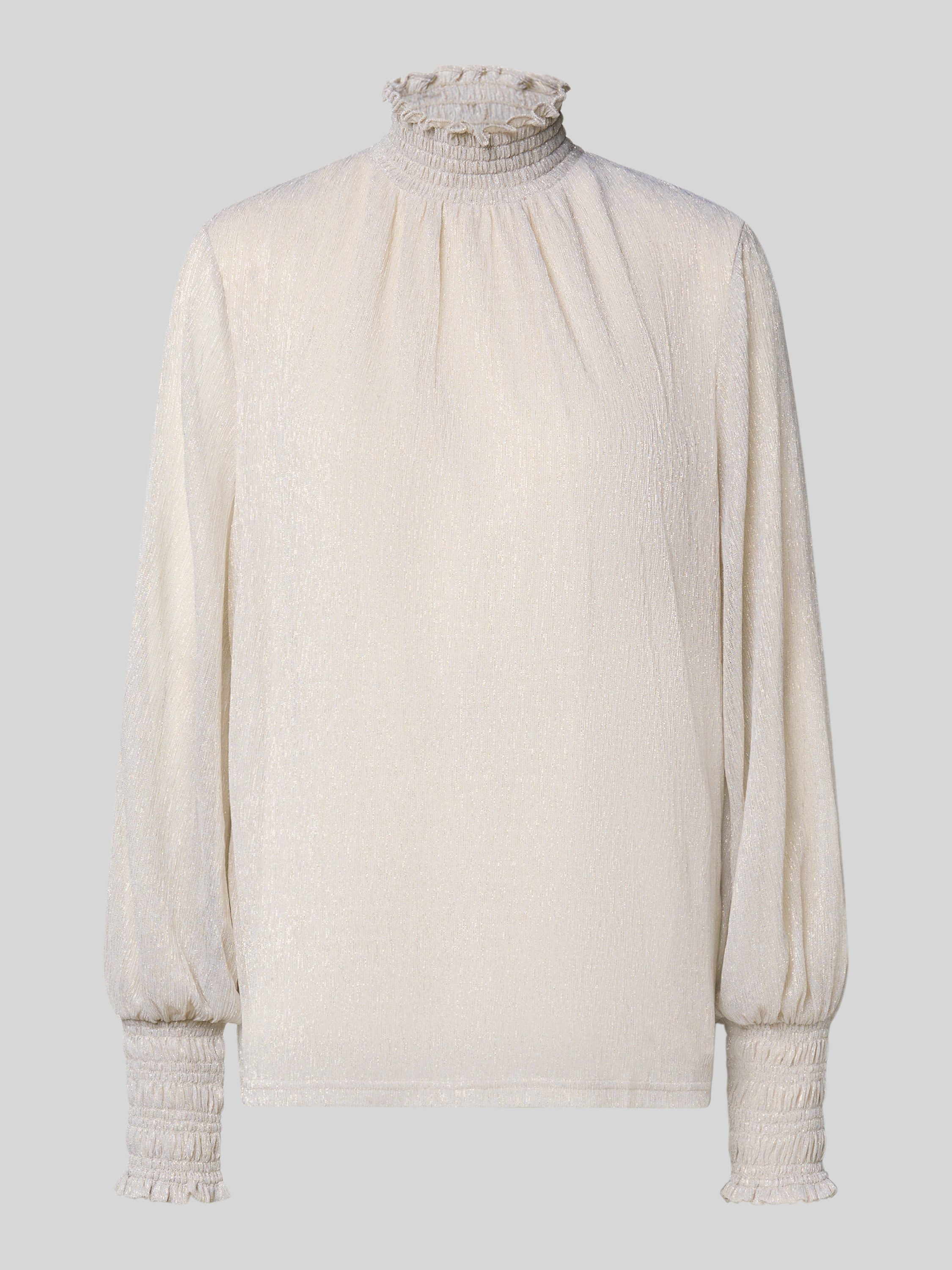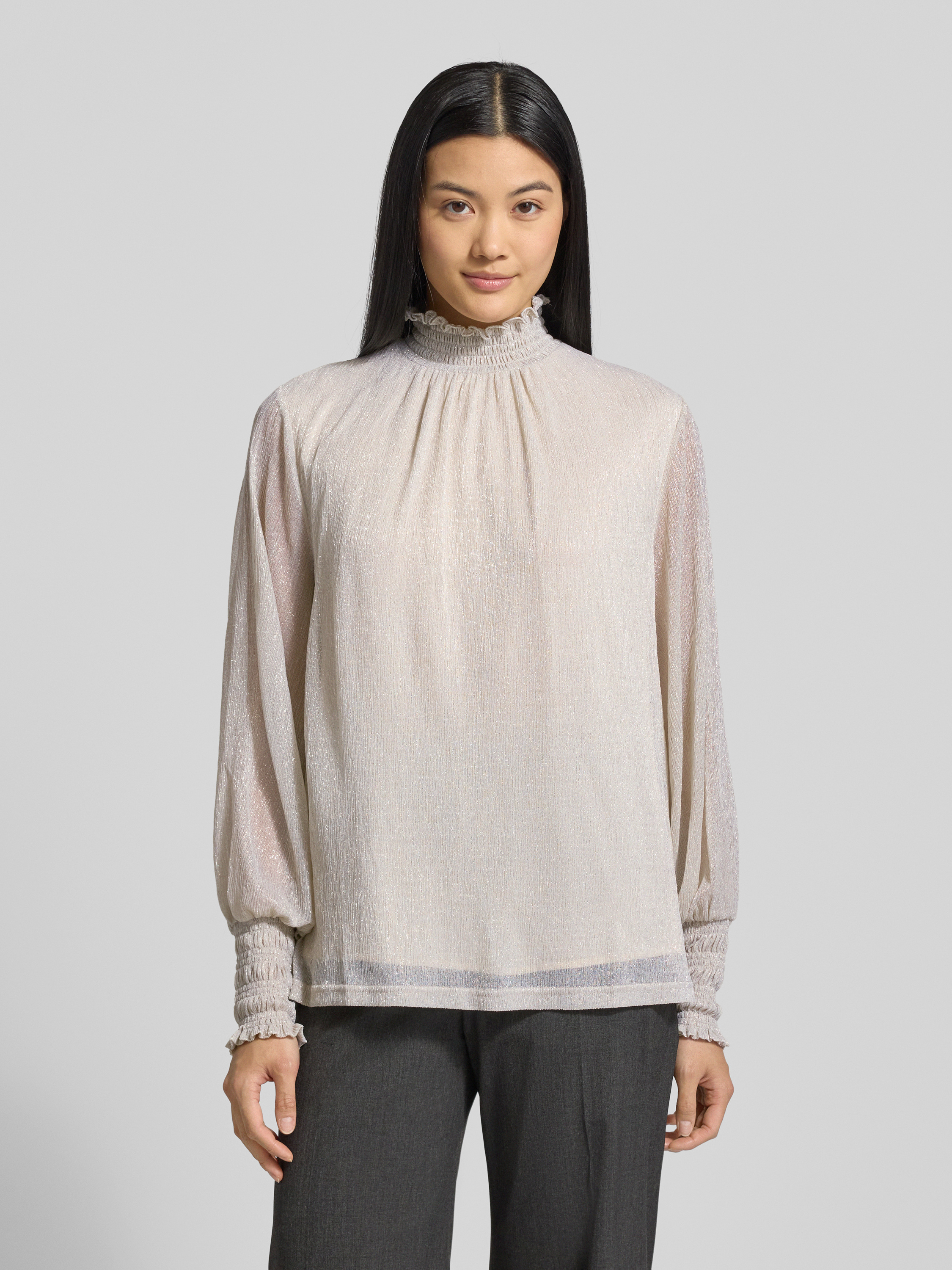 Das Damen Blusenshirt von MOS MOSH Modell 'Ximena' bringt durch den lockeren Schnitt angenehme Bewegungsfreiheit in den Alltag. Der Stehkragen und zarte Raffungen verleihen dem Design eine dezente, moderne Note, während der Material-Mix mit Metall-Anteil für einen leicht strukturierten Griff sorgt. So eignet sich das Blusenshirt besonders für Tage, an denen Komfort und stilvolle Zurückhaltung gefragt sind.