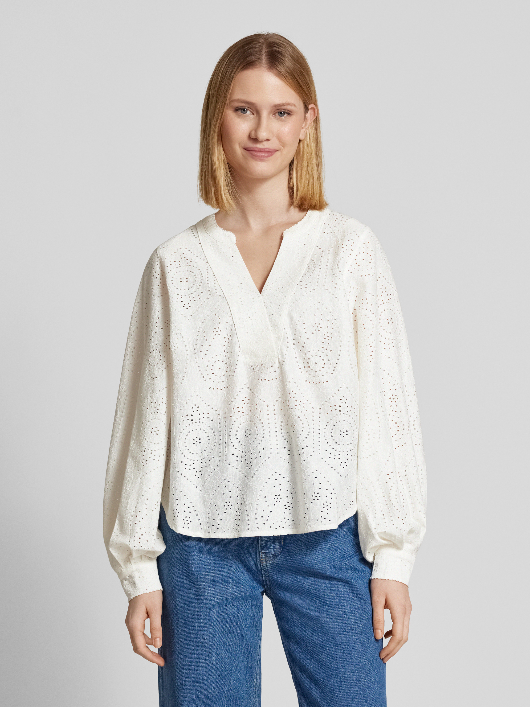 MOS MOSHRegular Fit Bluse mit Lochstickerei Modell 'YEN SINA' in ecru