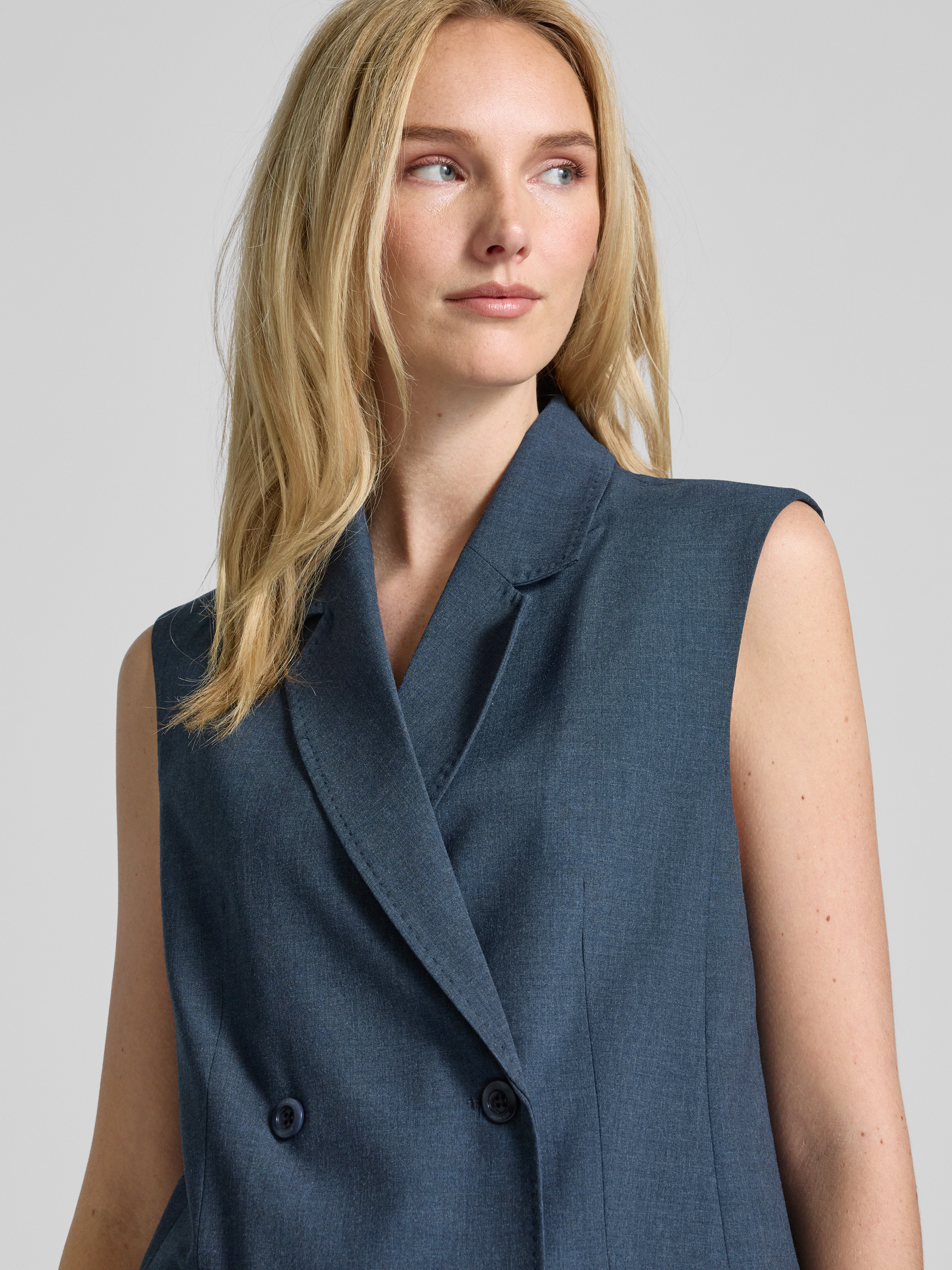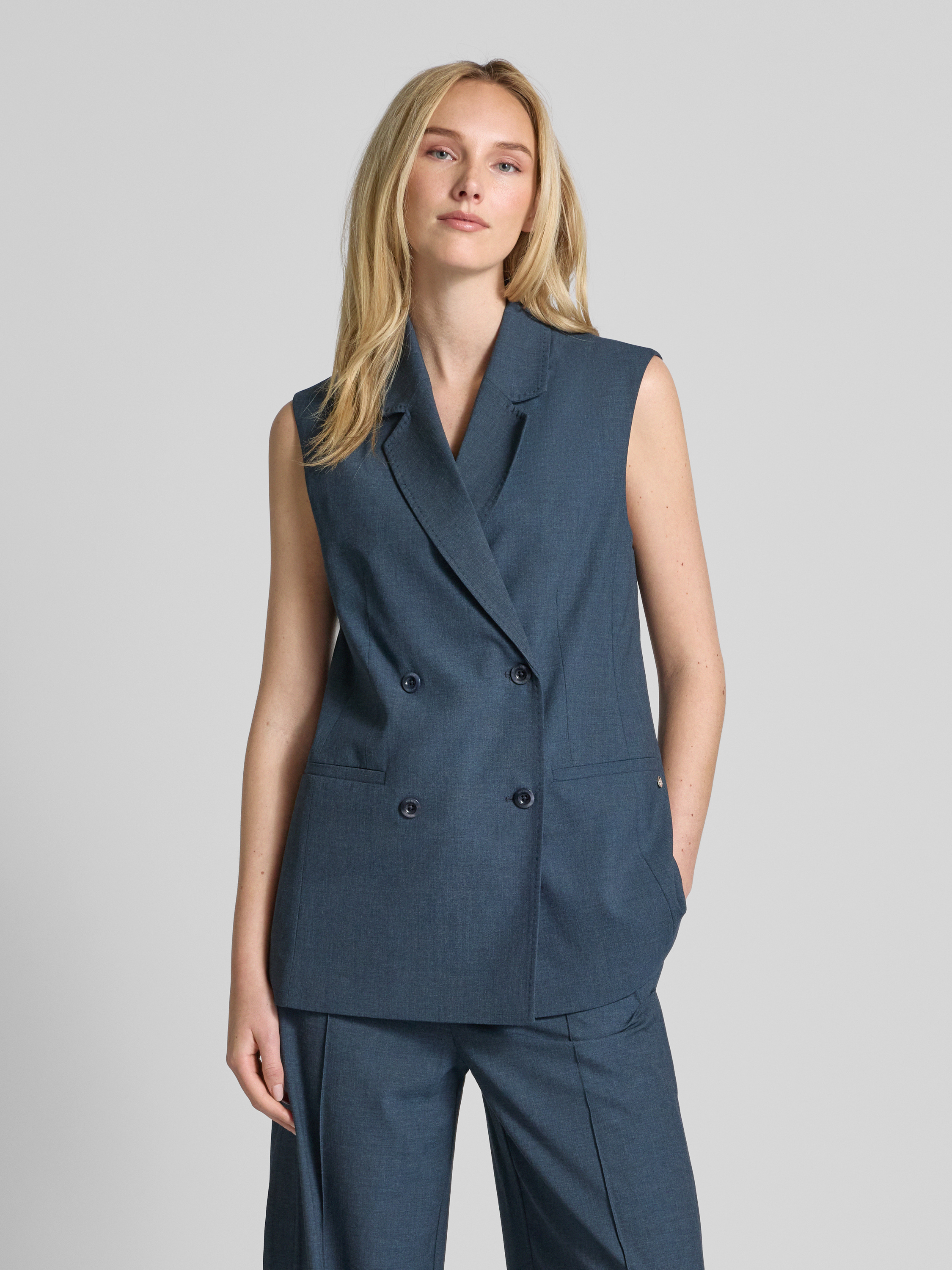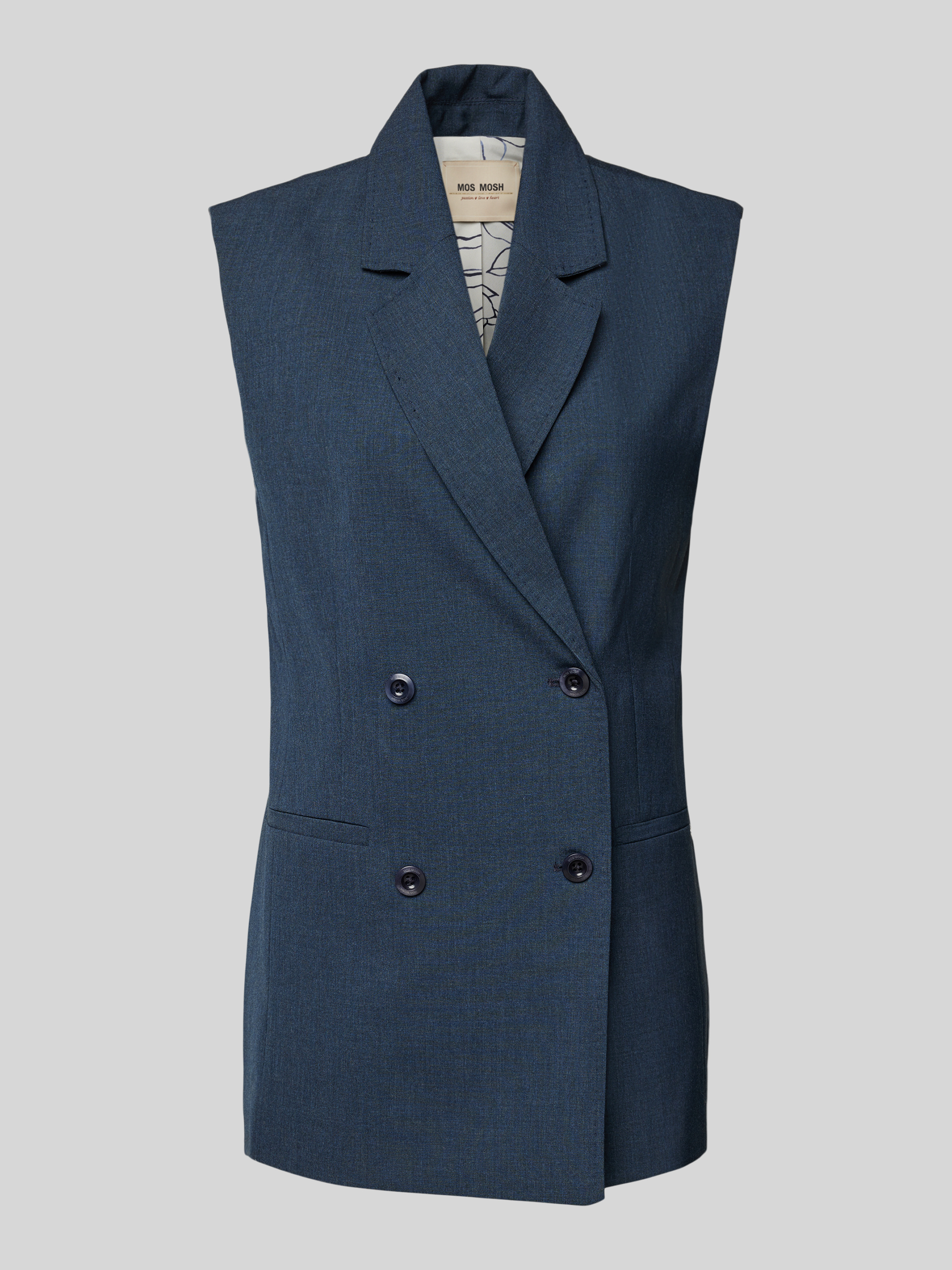 Die Damenweste von MOS MOSH, Modell 'PHILINE ROYAL', vereint Eleganz und Komfort durch ihren geraden Schnitt und den hochwertigen Viskose-Mix mit Stretch-Anteil. Der klassische Reverskragen und die Leistentaschen sorgen für einen stilvollen Auftritt. Sie eignet sich ideal für vielseitige Kombinationen.