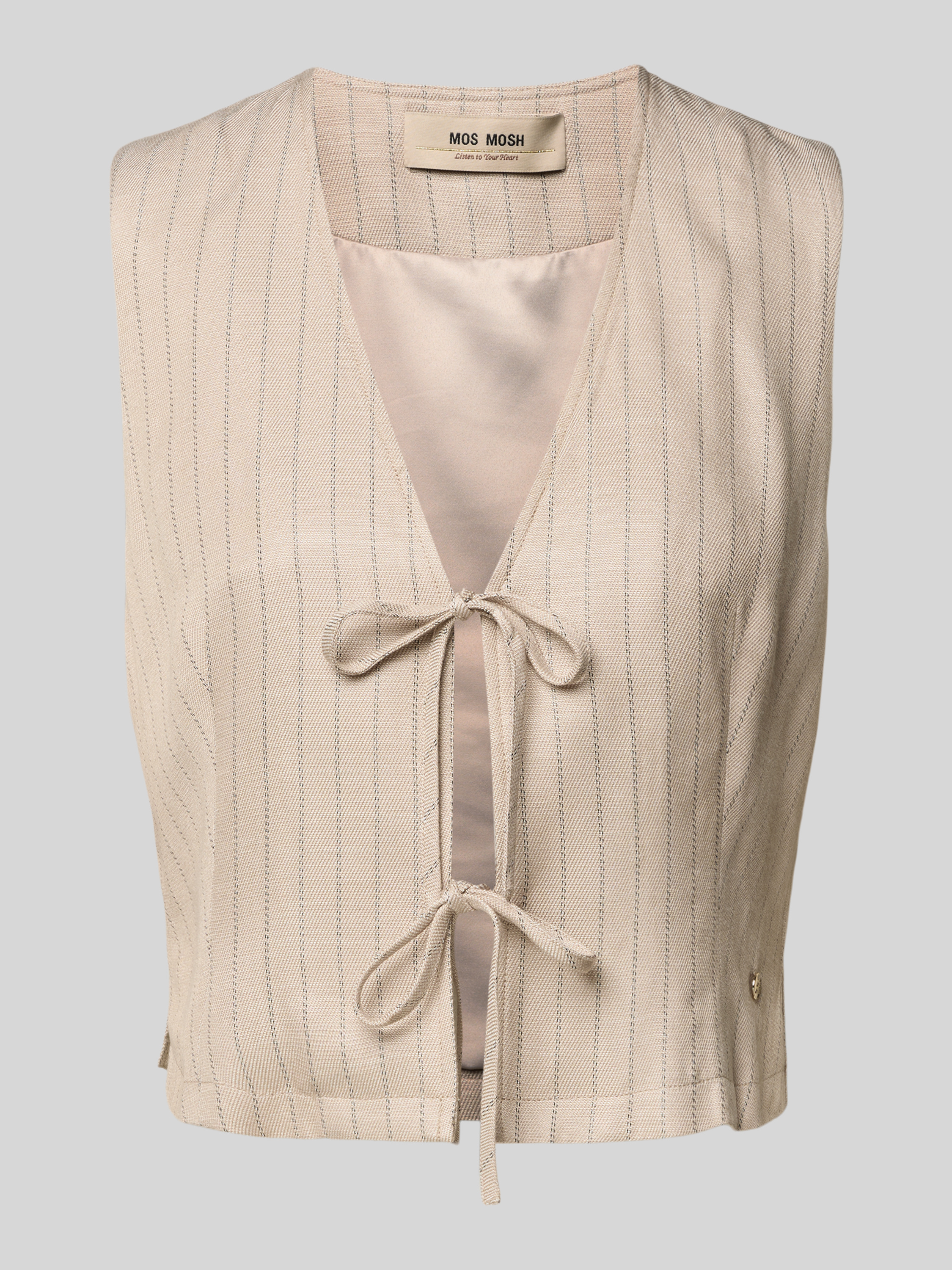 Die Damenweste von MOS MOSH, Modell 'ELVA INAH', kombiniert einen geraden Schnitt mit einem eleganten Schnürverschluss und eignet sich hervorragend für lässige und formelle Anlässe. Der Viskose-Mix sorgt für ein angenehmes Tragegefühl und verleiht dem Look eine subtile Raffinesse. Eine dezente Label-Applikation rundet das Design stilvoll ab.